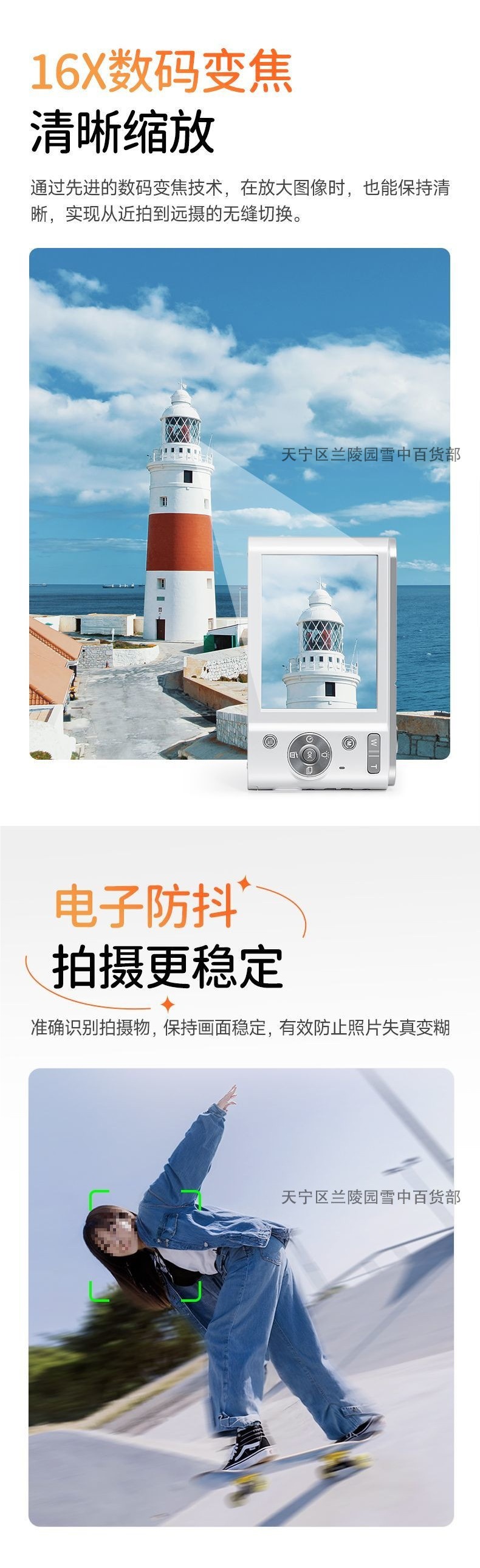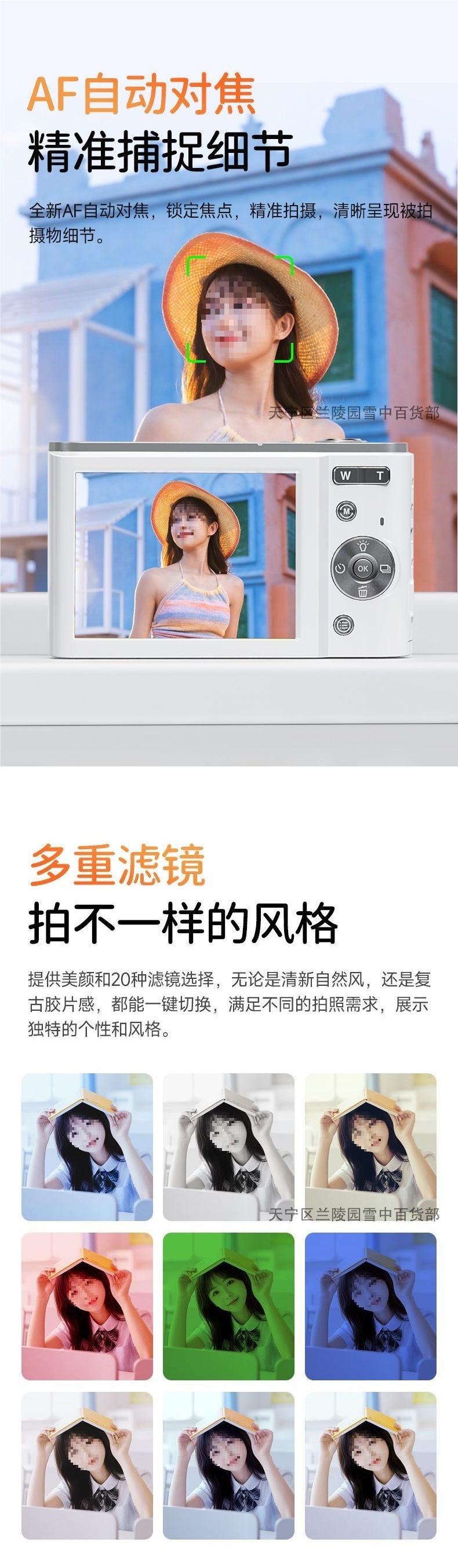 • Yunmeng White + 뷰티 필터 + 2.7K 초점 및 흔들림 방지 - 16G는 1시간 동안 1,000개 이상의 사진과 비디오를 저장합니다.