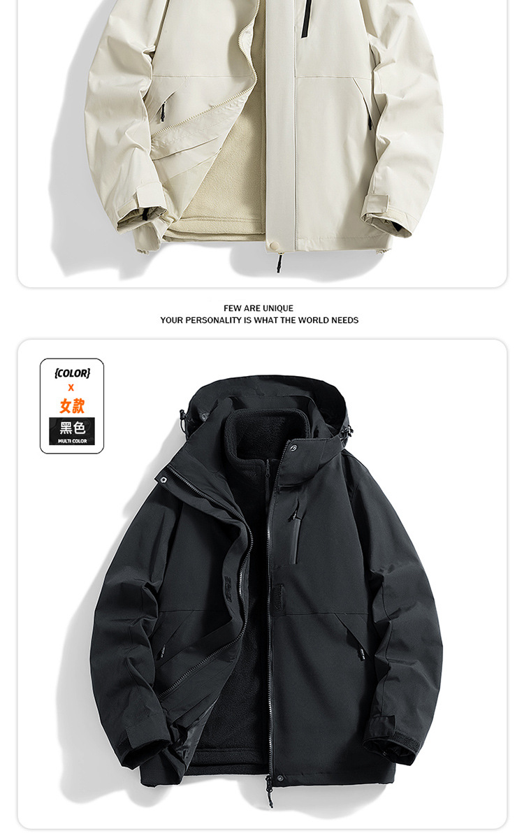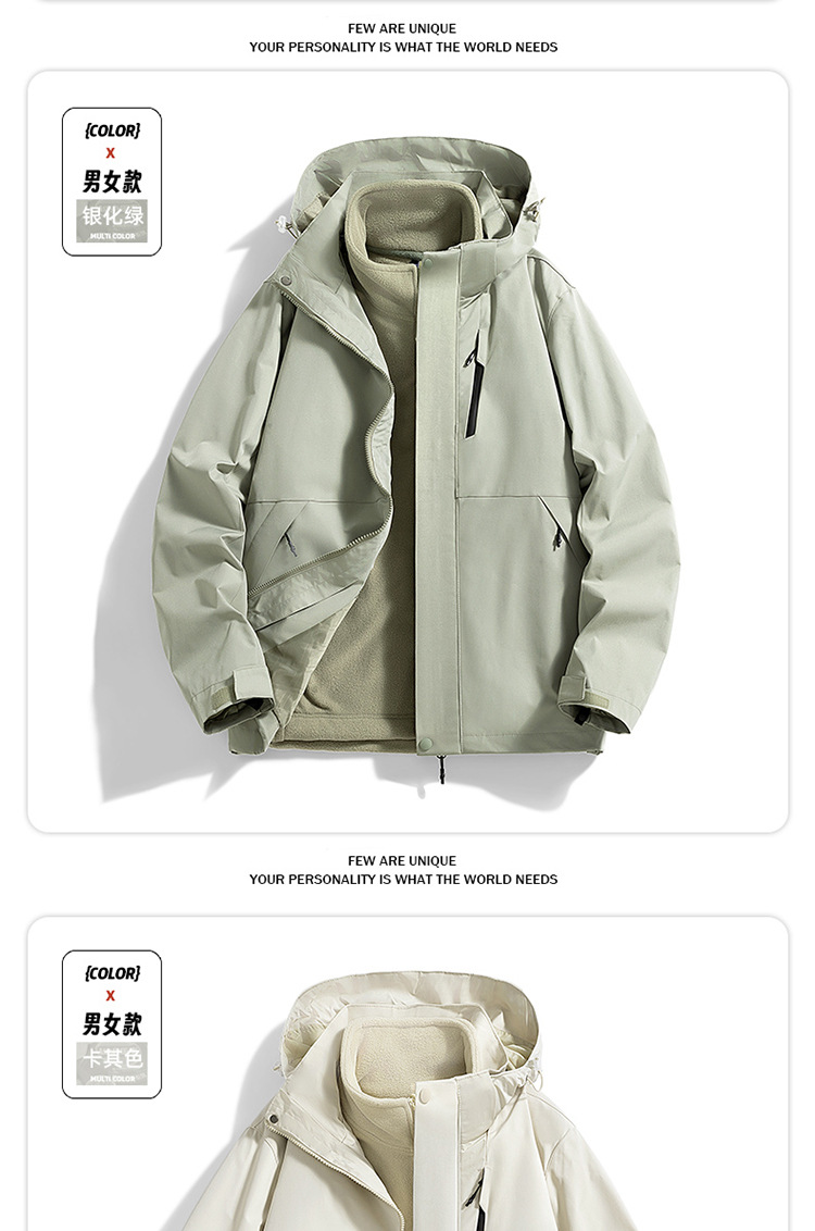 잭 추양 산 스타일 러시 의류 트렌디 브랜드 야외 느슨한 커플 재킷 남녀 3 대 1 탈착식 방풍