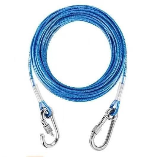 고무 코팅 두꺼운 강철 와이어 로프 애완 동물 견인 로프 너트 잠금 개 버클 야외 애완 동물 로프 물린 저항