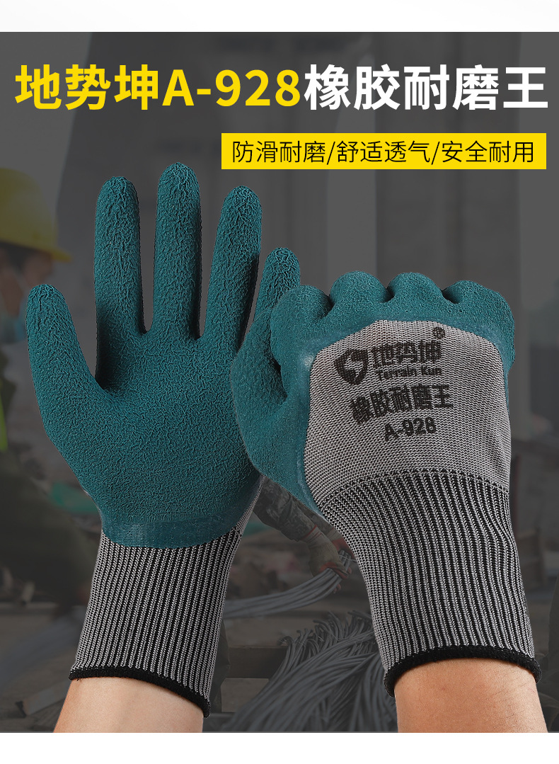 Geo Kun A- 928 노동 보호 장갑 타이어 고무 내마모성 킹 미끄럼 방지 고무 환기 작업 건설 현장에 남성