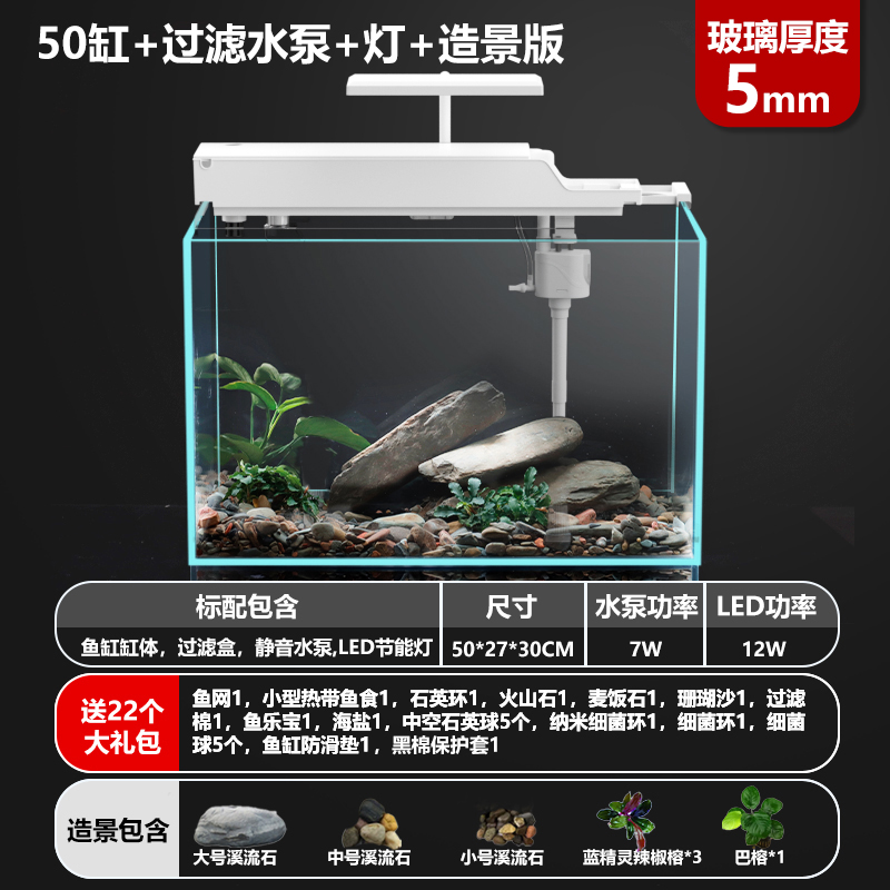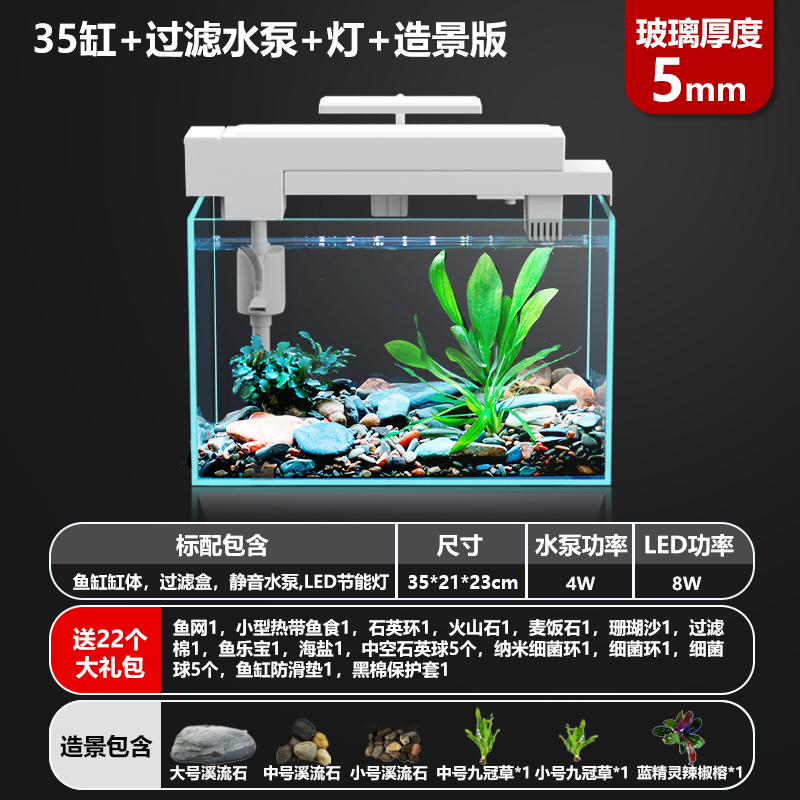 슈퍼 화이트 유리 물고기 탱크 가정용 거실 작은 데스크탑 생태 스트림 풍경 유리 게으른 금붕어 거북이 탱크
