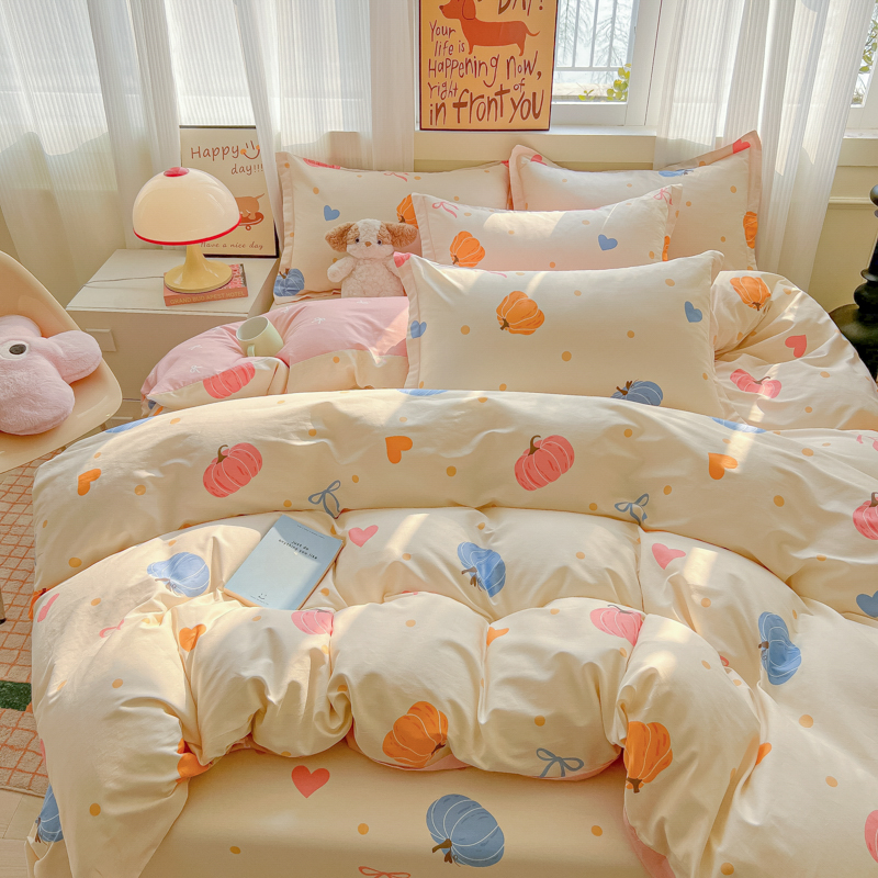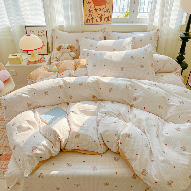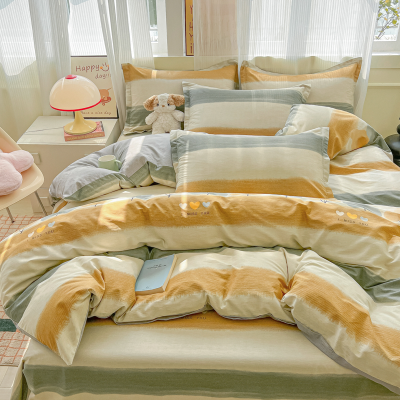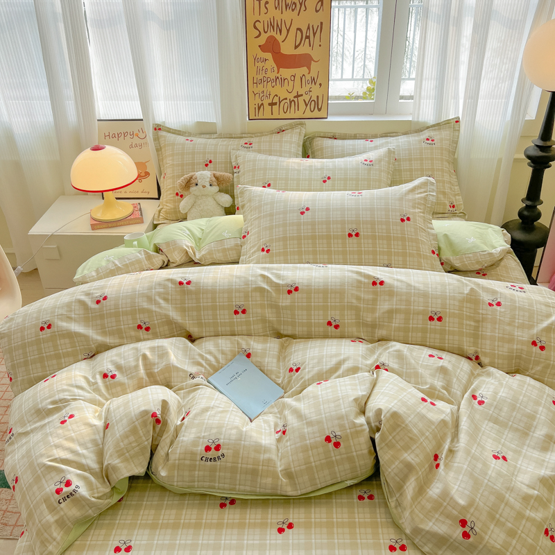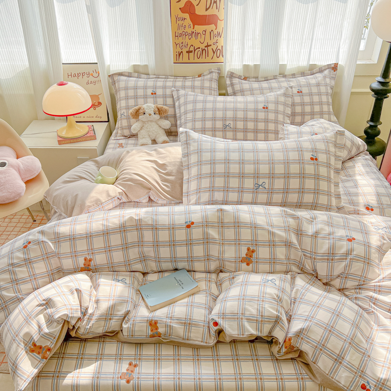 2025 새로운 침구 4 피스 세트 코튼 베드 시트 퀼트 커버 3 피스 세트 사계절 학생 기숙사 Naked