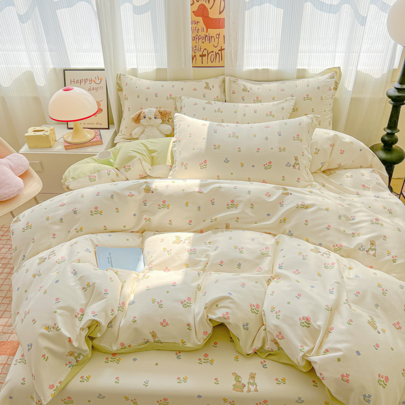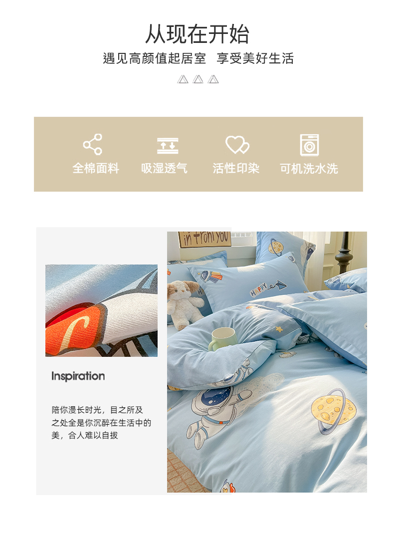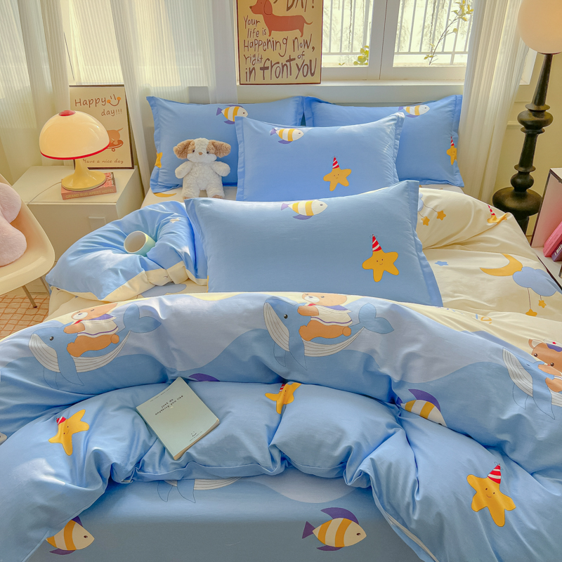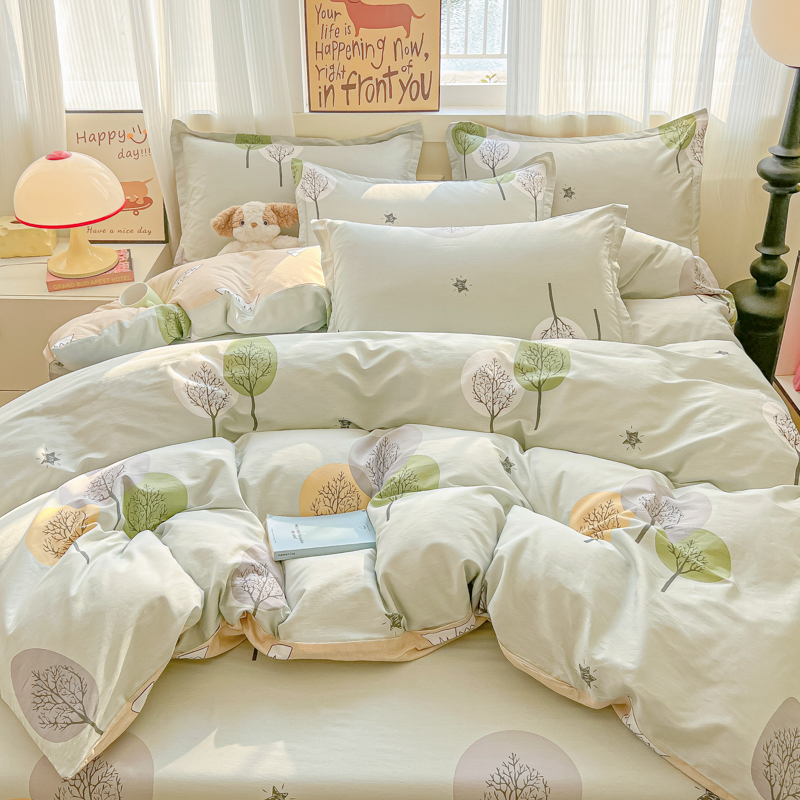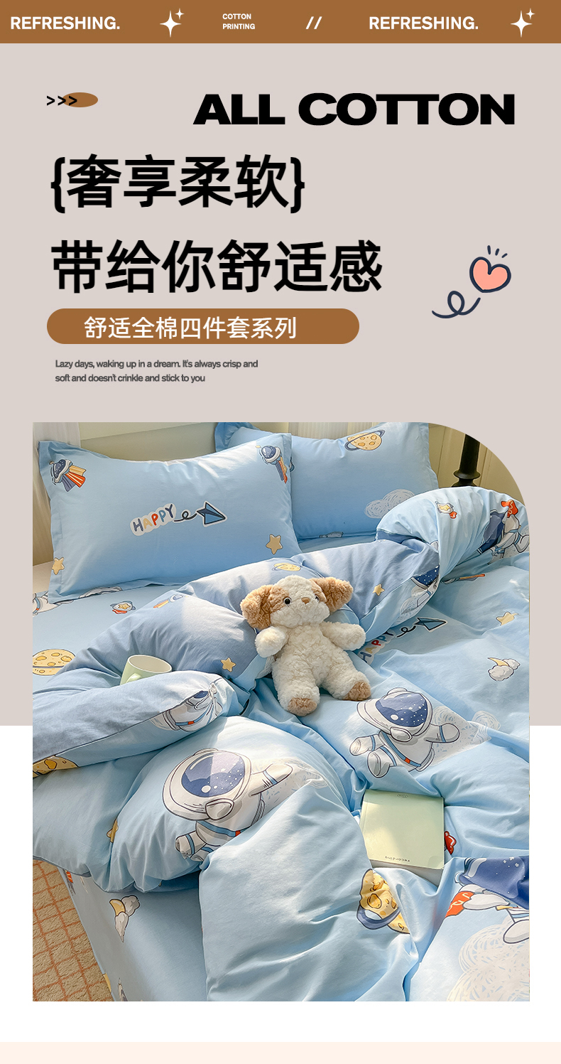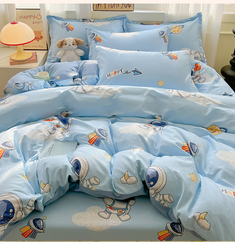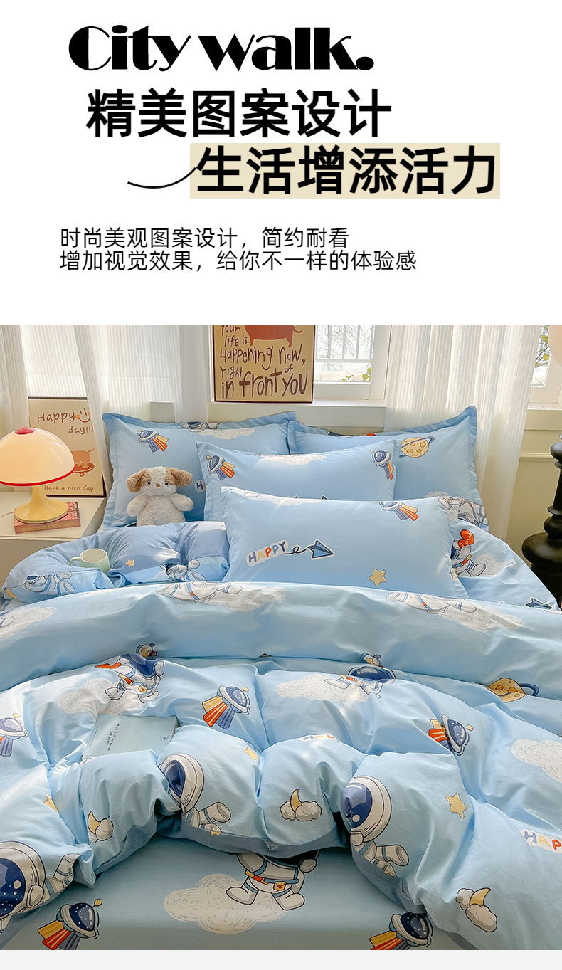 2025 새로운 침구 4 피스 세트 코튼 베드 시트 퀼트 커버 3 피스 세트 사계절 학생 기숙사 Naked스토어 가기