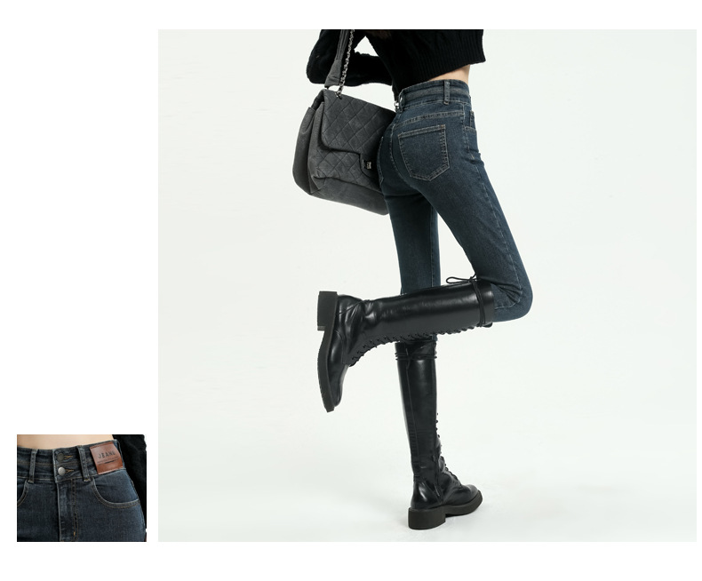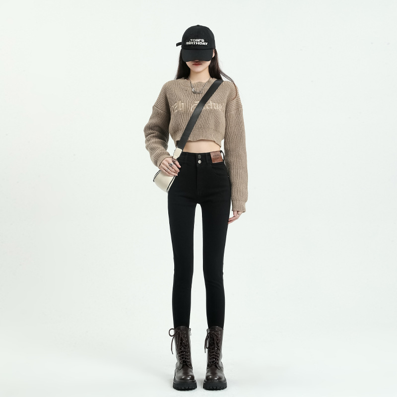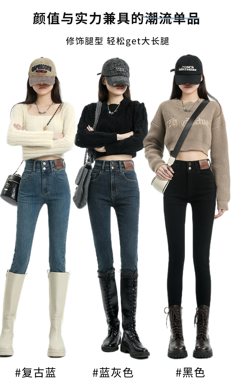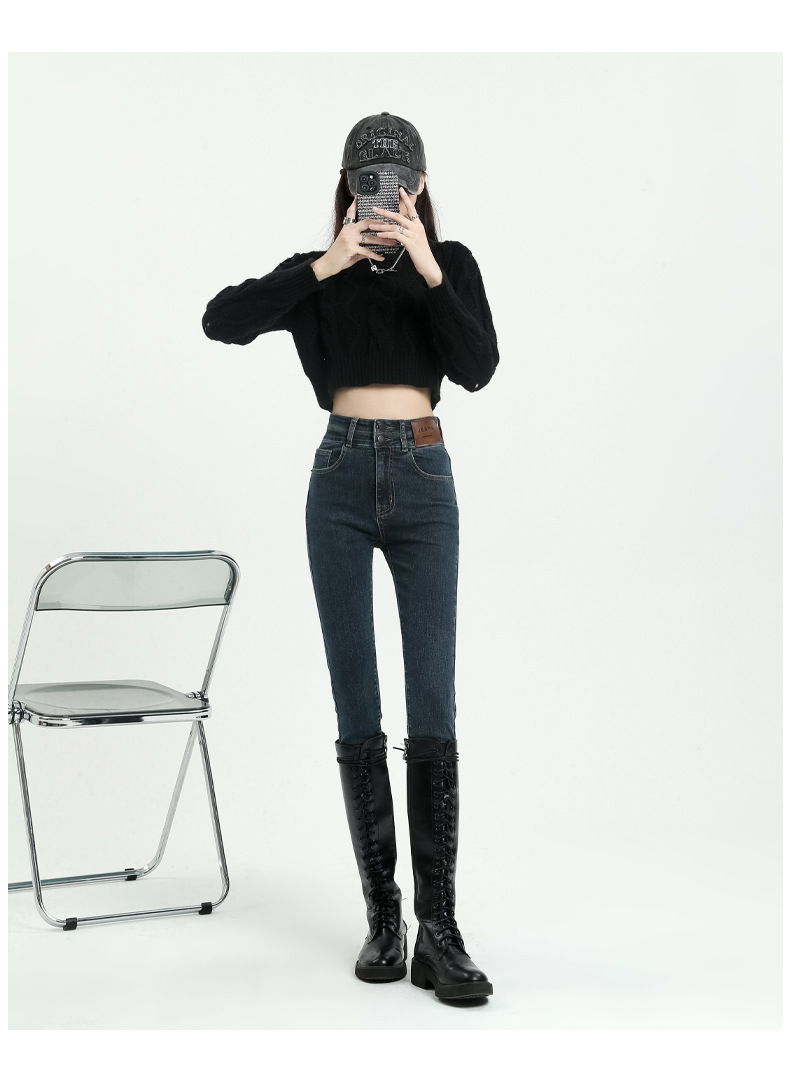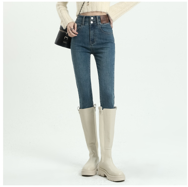 높은 허리 청바지 여성의 2025 새로운 도착 바지 슬림 핏 스트레치 슬림 핏 꽉 다리 바지 봄과 가을