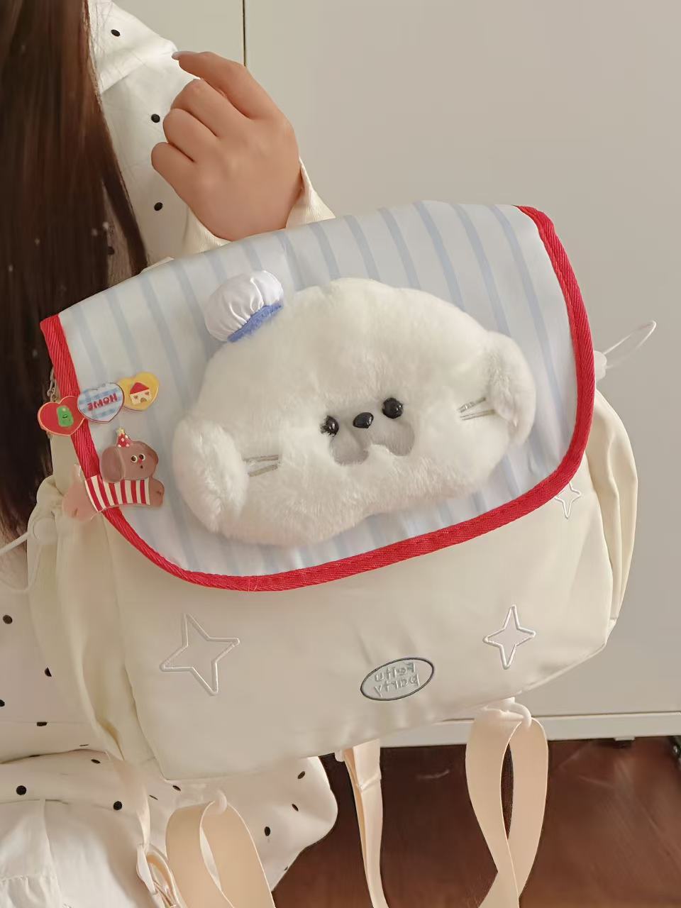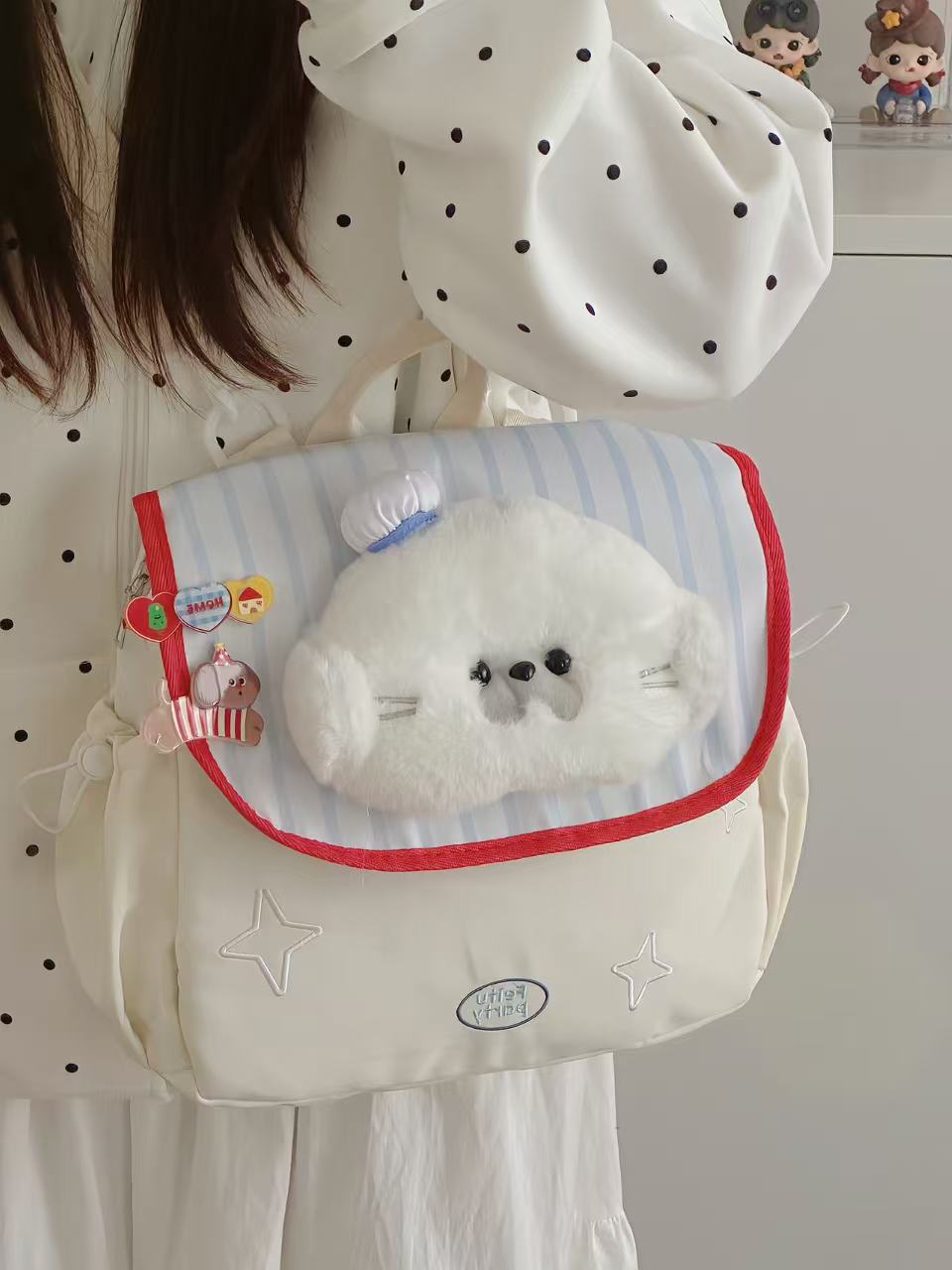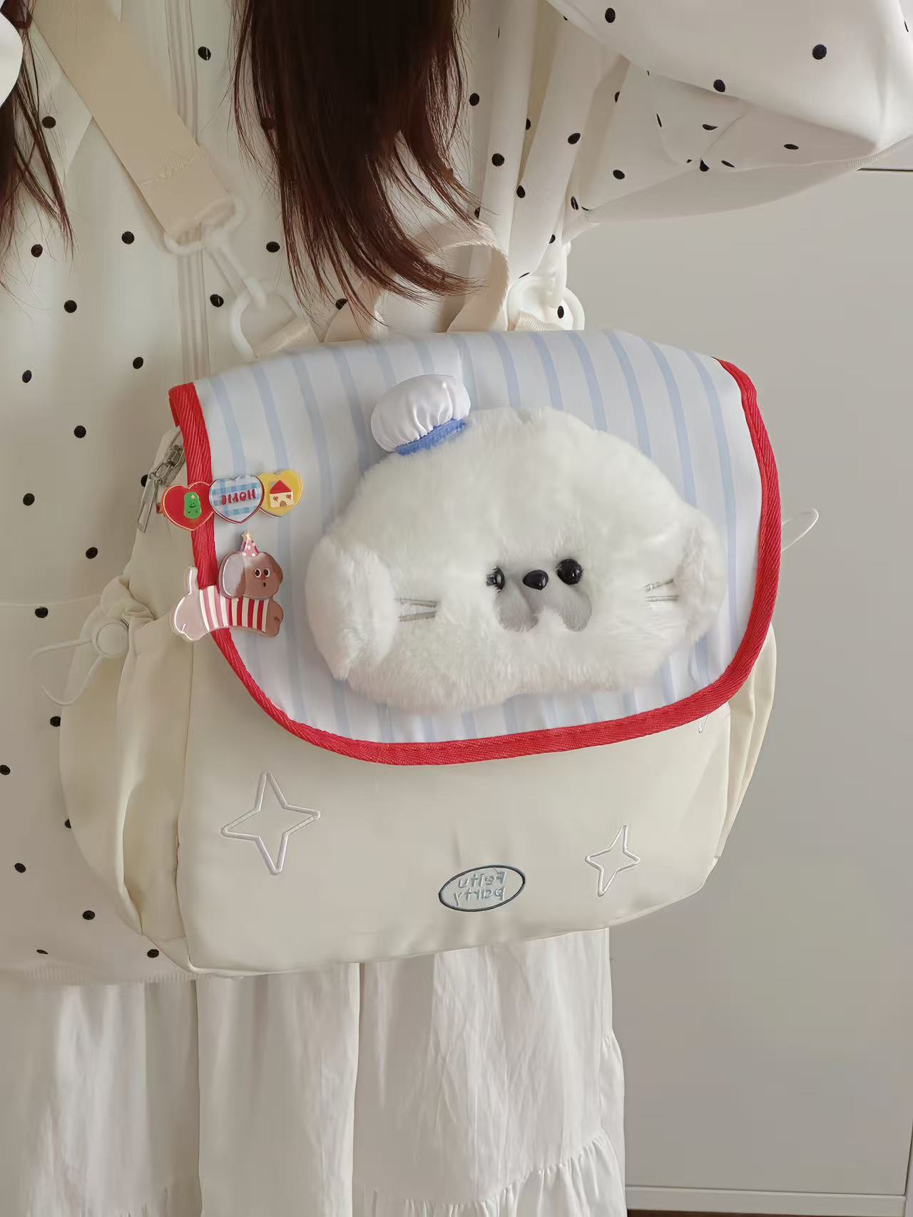 일본식 학생 학교 가방 귀여운 수달 인형 헤드 대용량 배낭 경량 캐주얼 통근 배낭