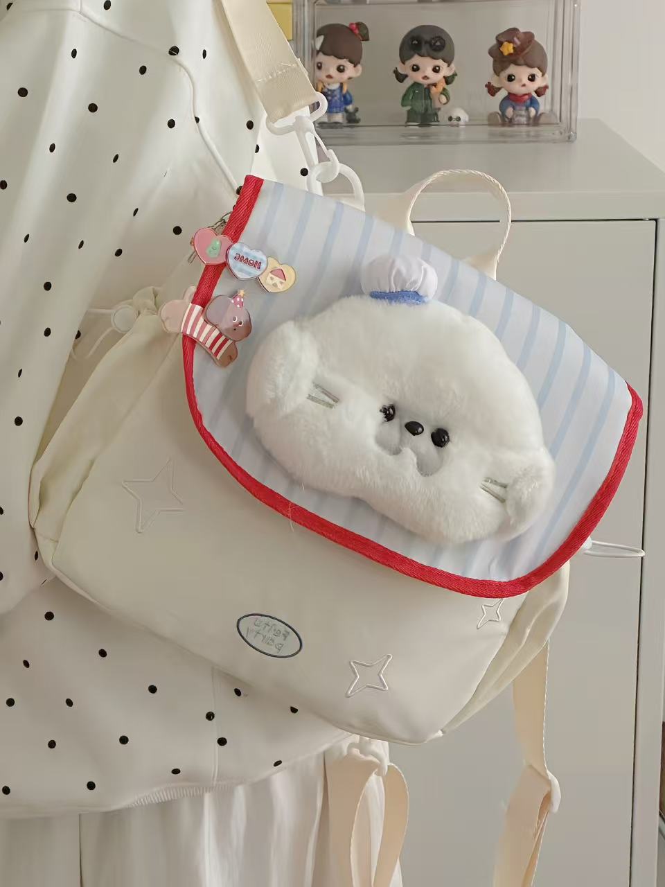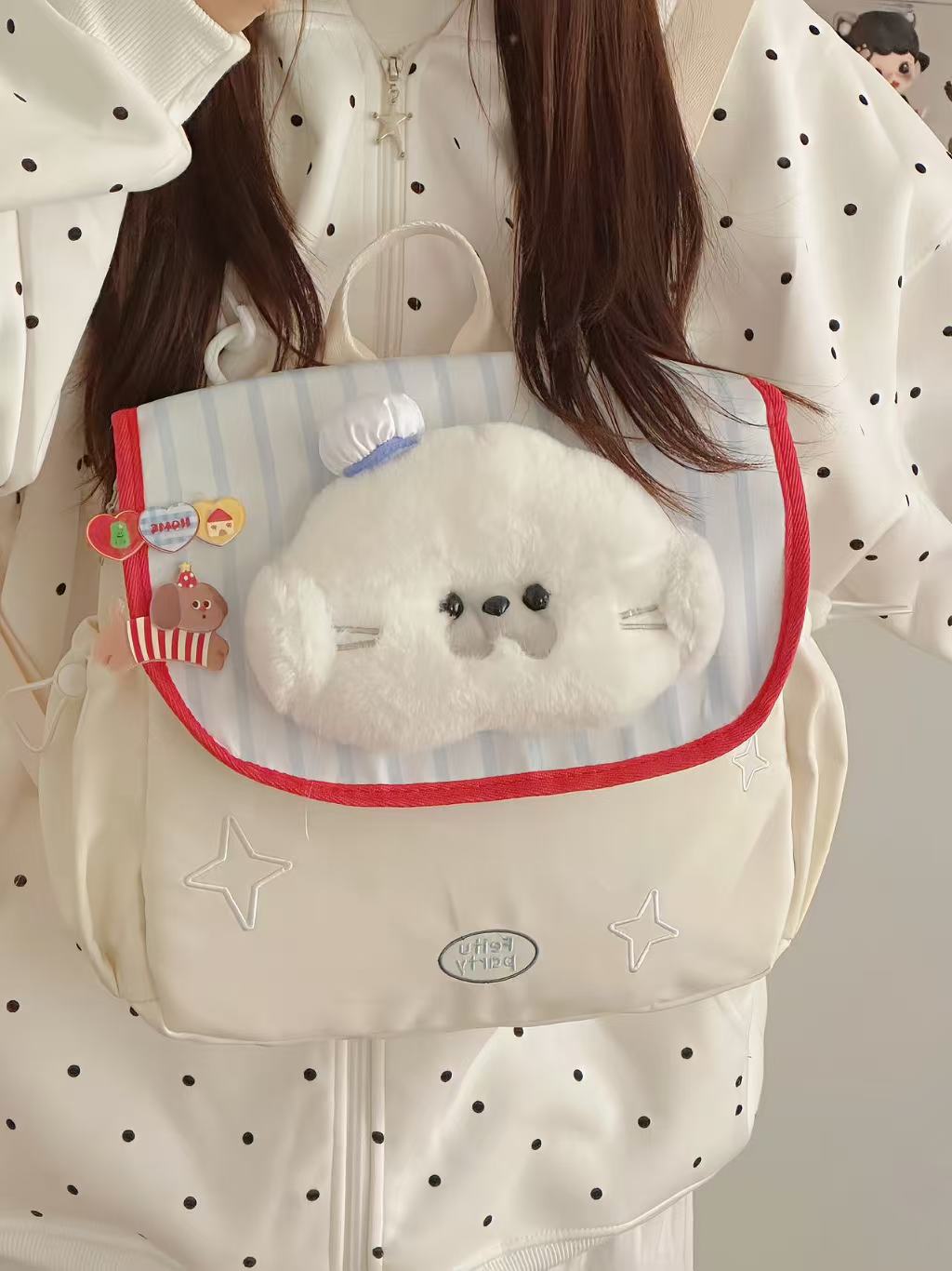 일본식 학생 학교 가방 귀여운 수달 인형 헤드 대용량 배낭 경량 캐주얼 통근 배낭스토어 가기