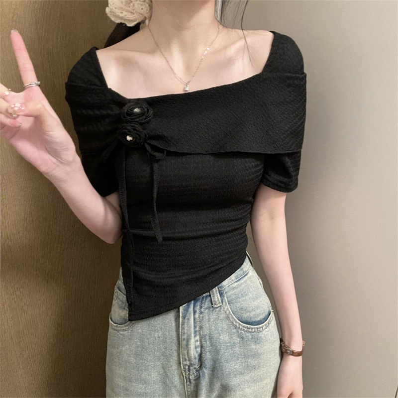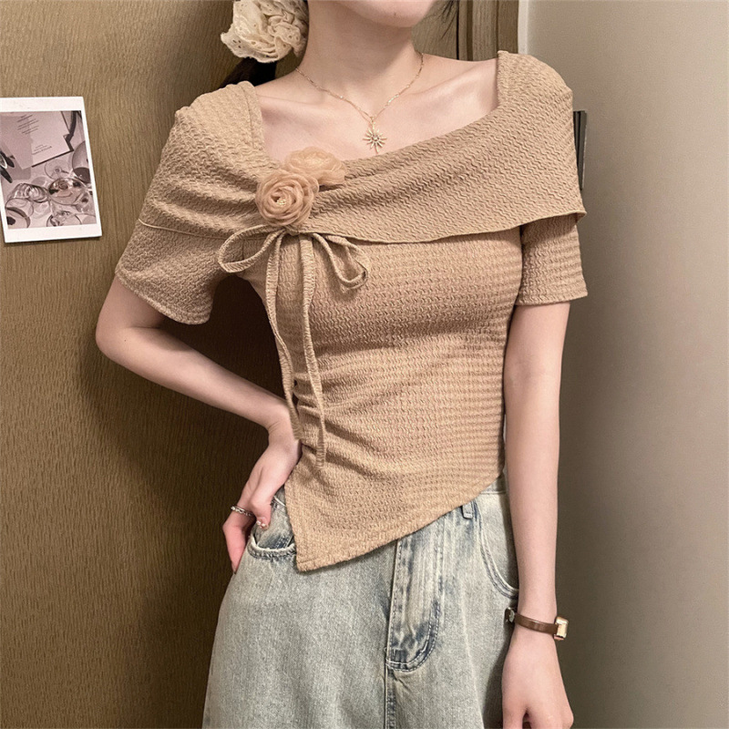 새로운 중국 불규칙한 반팔 티셔츠 여성 여름 달콤한 스파이스 소녀 디자인 틈새 시크 톱 2025 새로운스토어 가기
