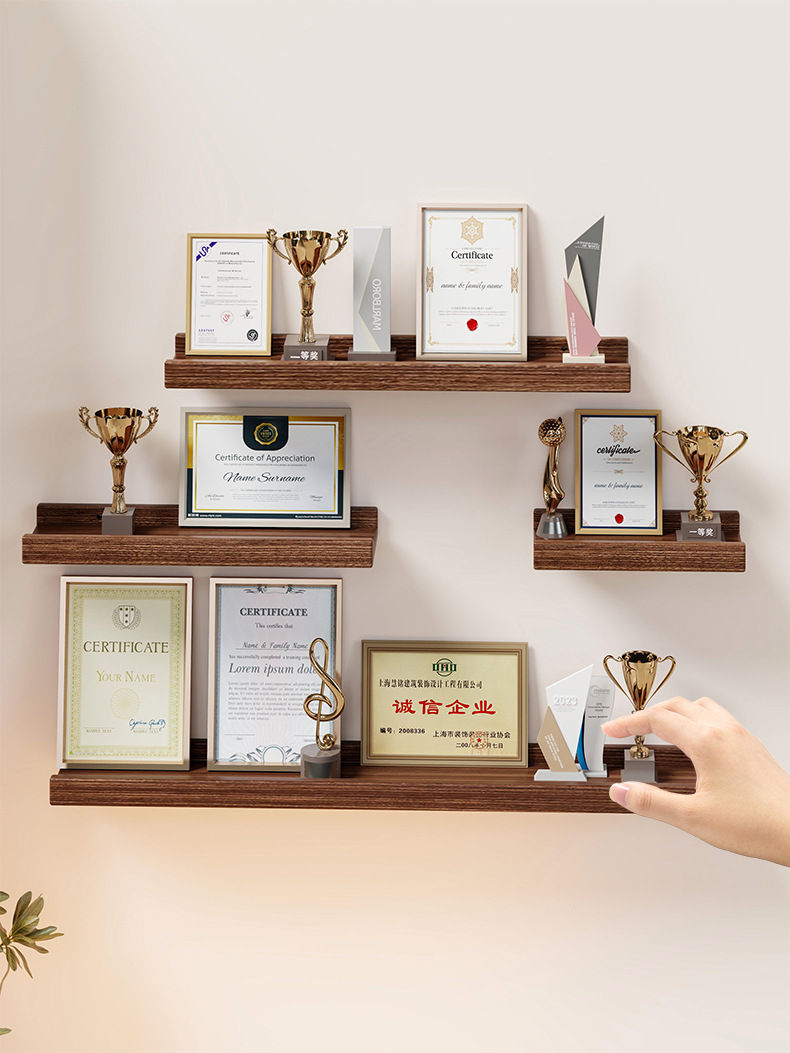 명예 벽 디스플레이 랙 벽걸이 스토리지 랙 한 단어 파티션 학교 메달 인증서 사진 프레임 트로피 스토리지 랙