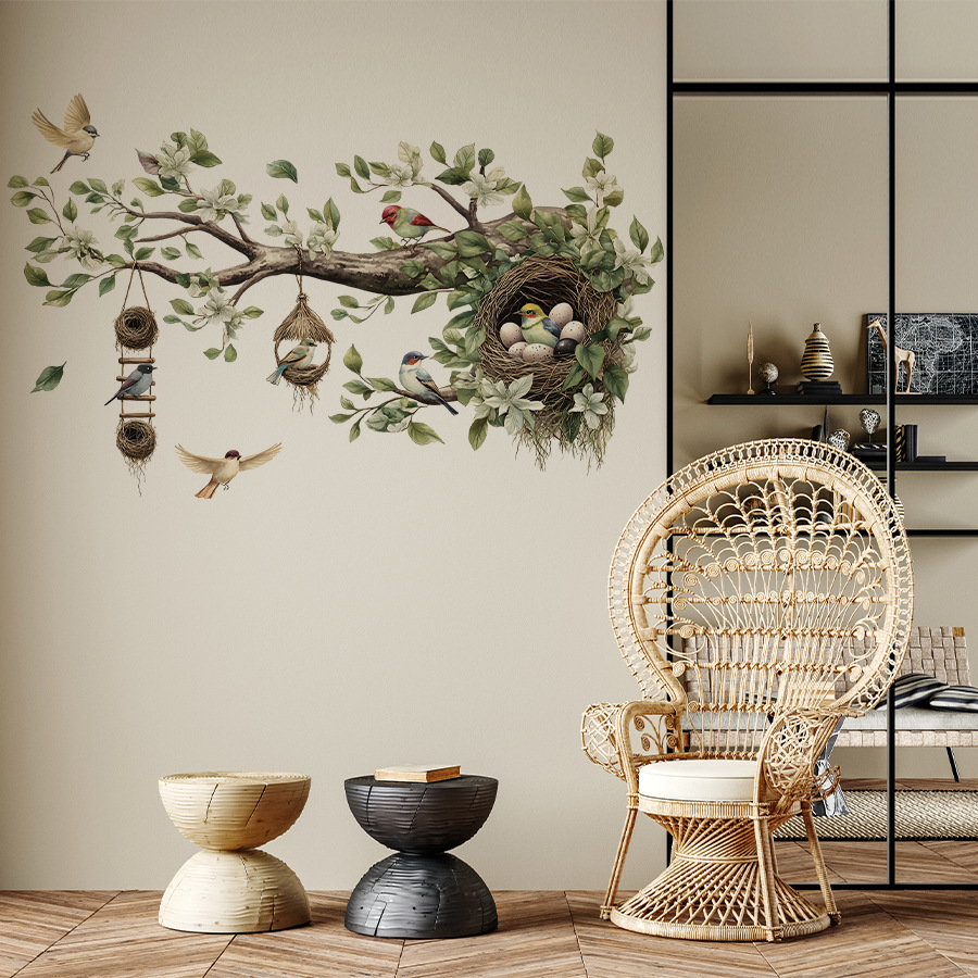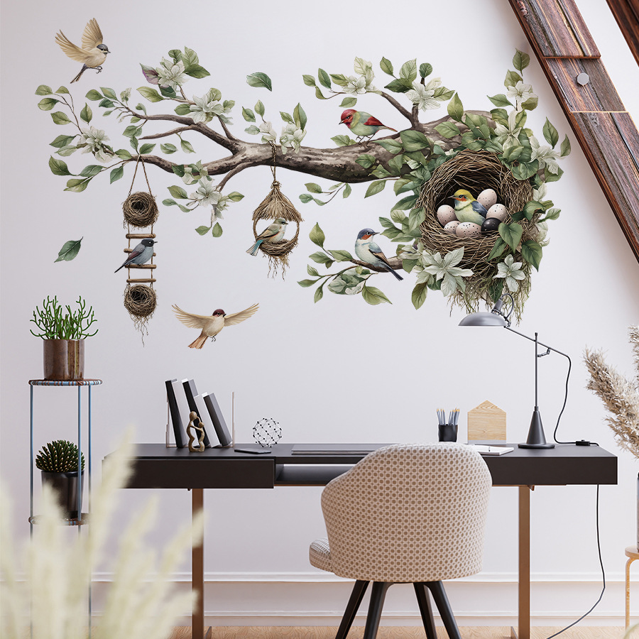 HS3592H 원래 봄 지점 새 둥지 새 셀프 접착 벽 스티커 침실 연구 홈 뷰티 장식 스티커
