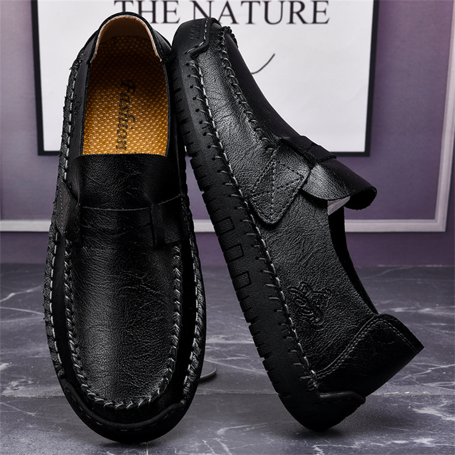 벨크로 완두콩 신발 남성 플러스 사이즈 트렌디 신발 소프트 솔 게으른 남성 캐주얼 가죽 신발 슬립 온 남성 신발스토어 가기