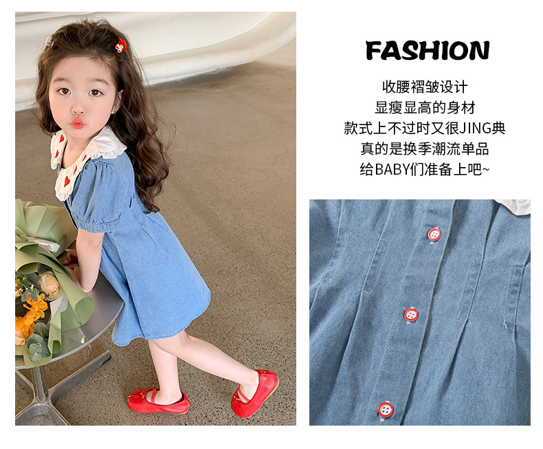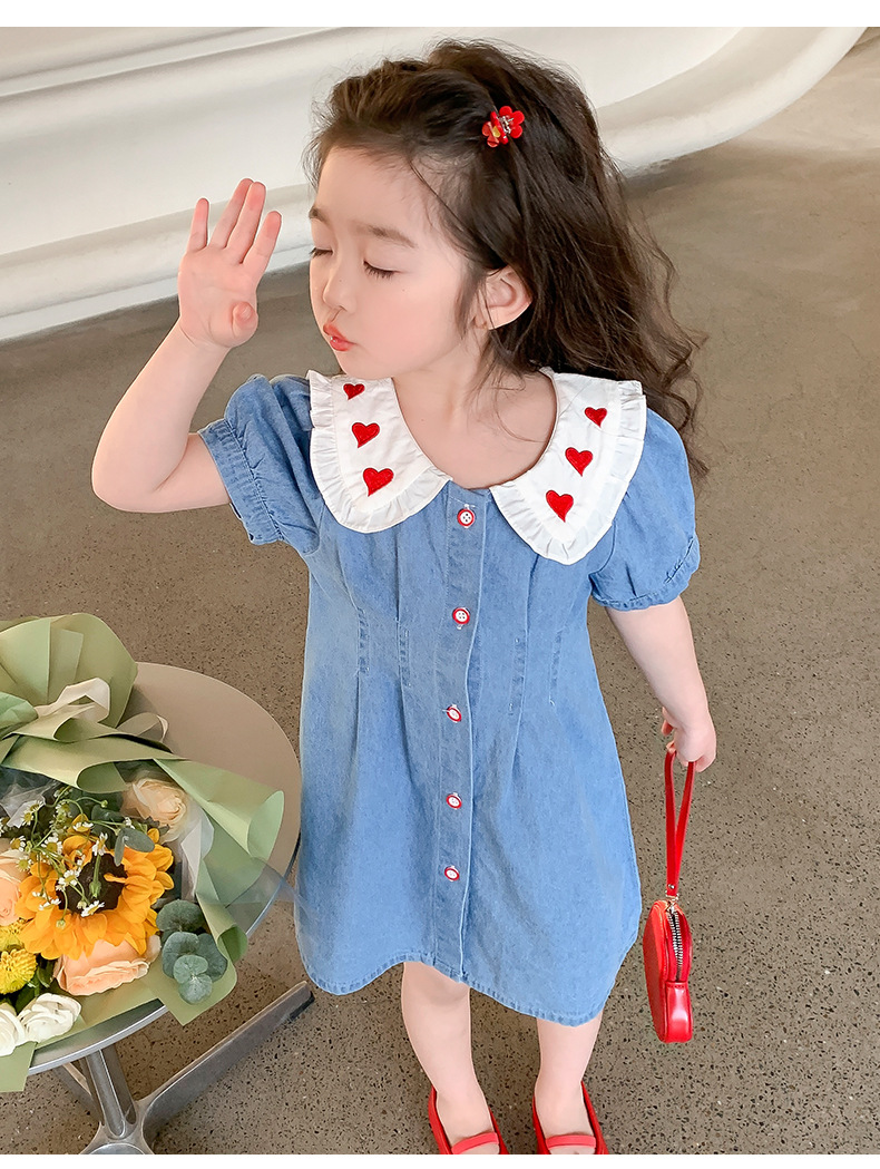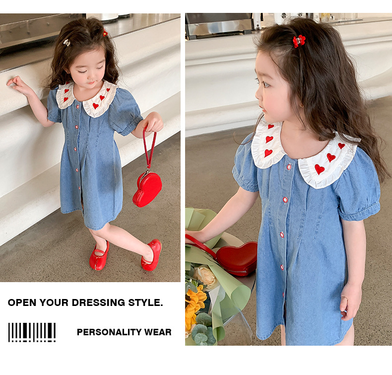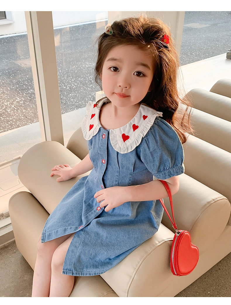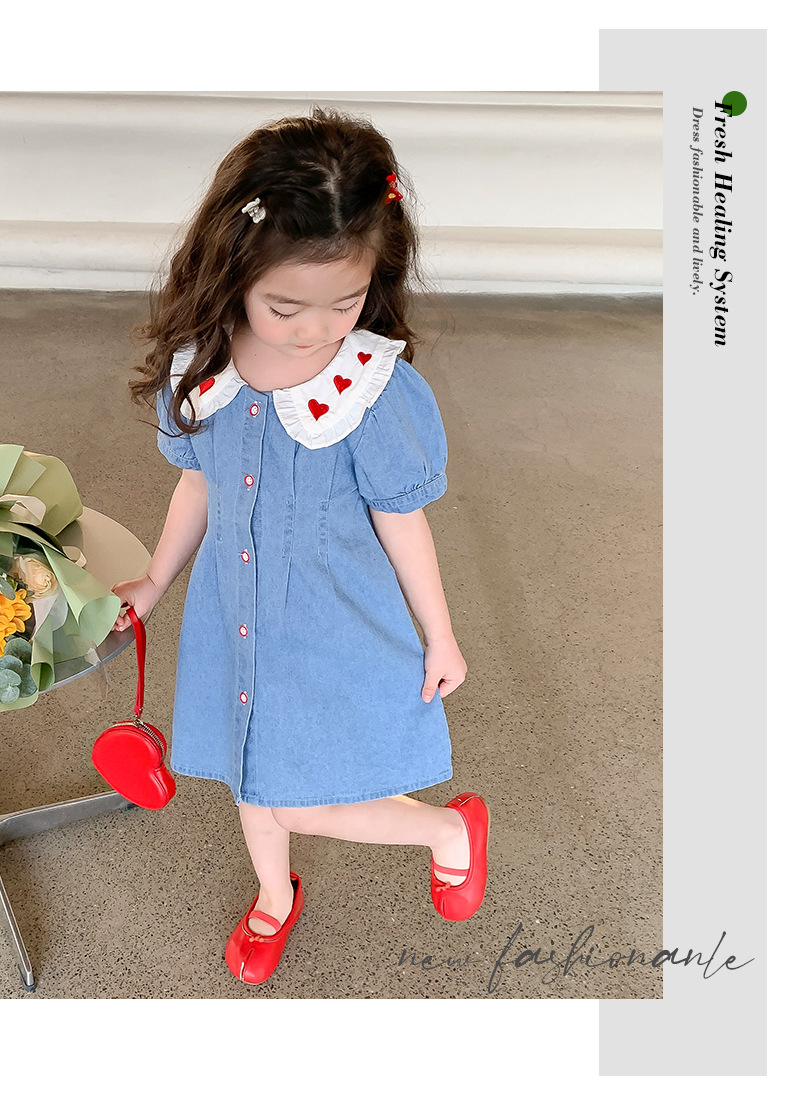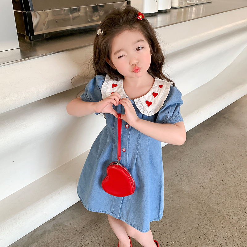 여자 원피스 여름 2025 새로운 스타일 한국 스타일 소녀의 여름 사랑 스커트 아기의 데님 스커트