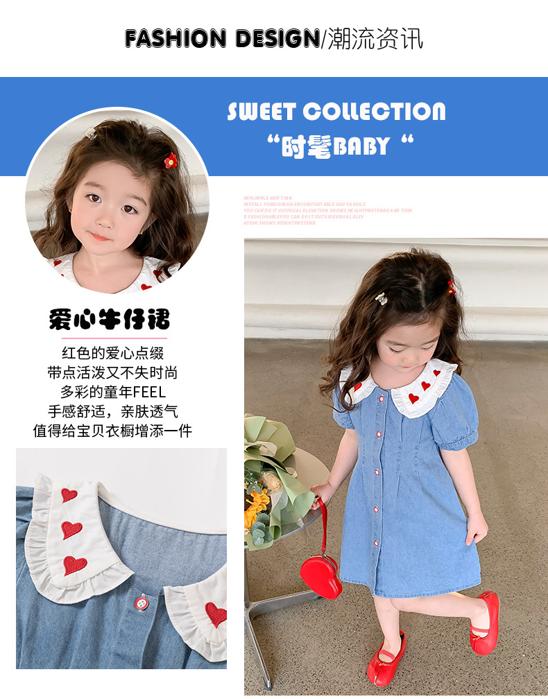 여자 원피스 여름 2025 새로운 스타일 한국 스타일 소녀의 여름 사랑 스커트 아기의 데님 스커트스토어 가기