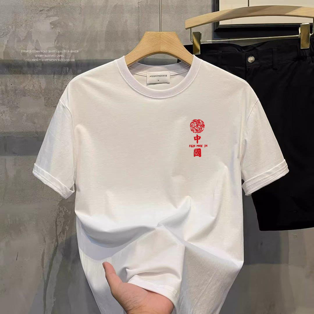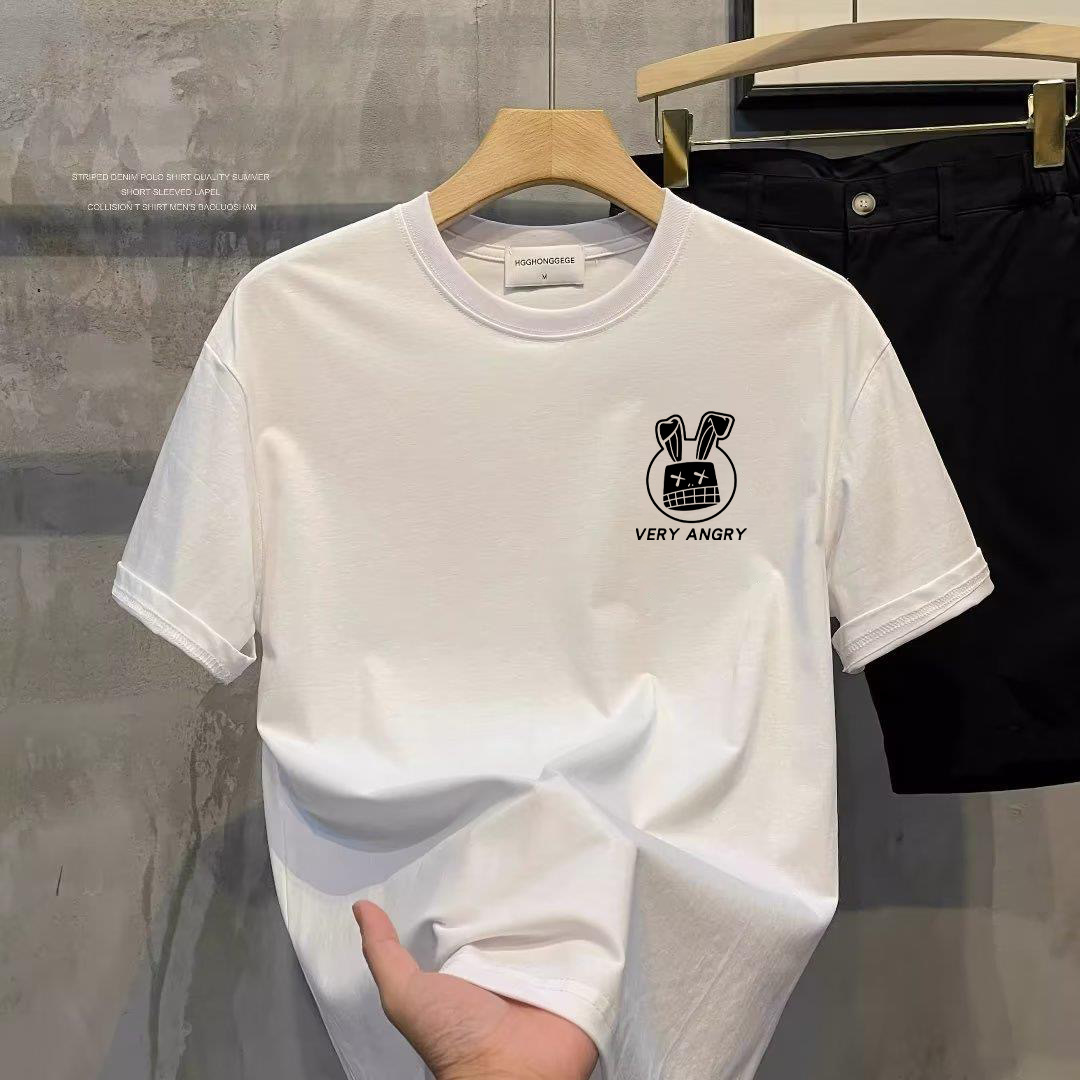 여름 슈퍼 핫 트렌디 반팔 티셔츠 남자 간단한 캐주얼 탑 2025 새로운 느슨한 십대 반팔 셔츠스토어 가기