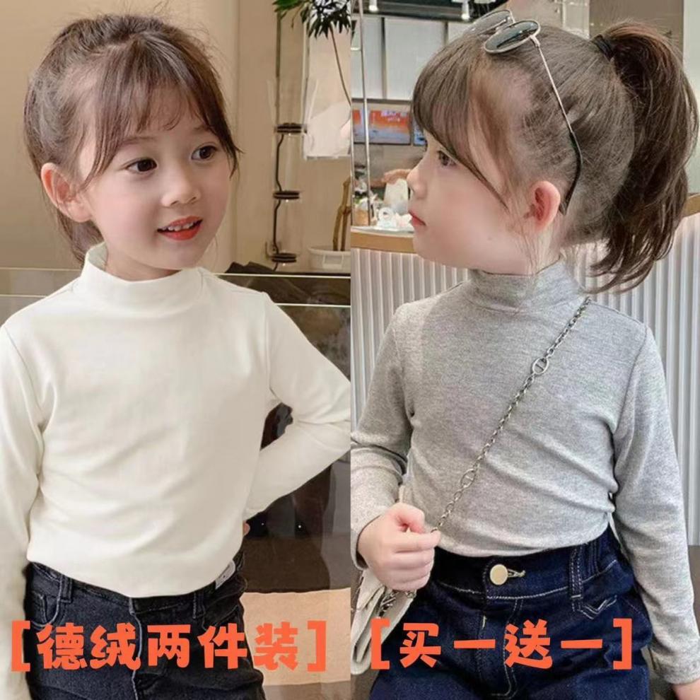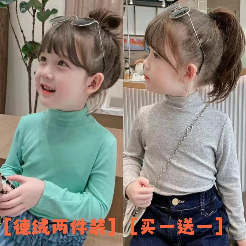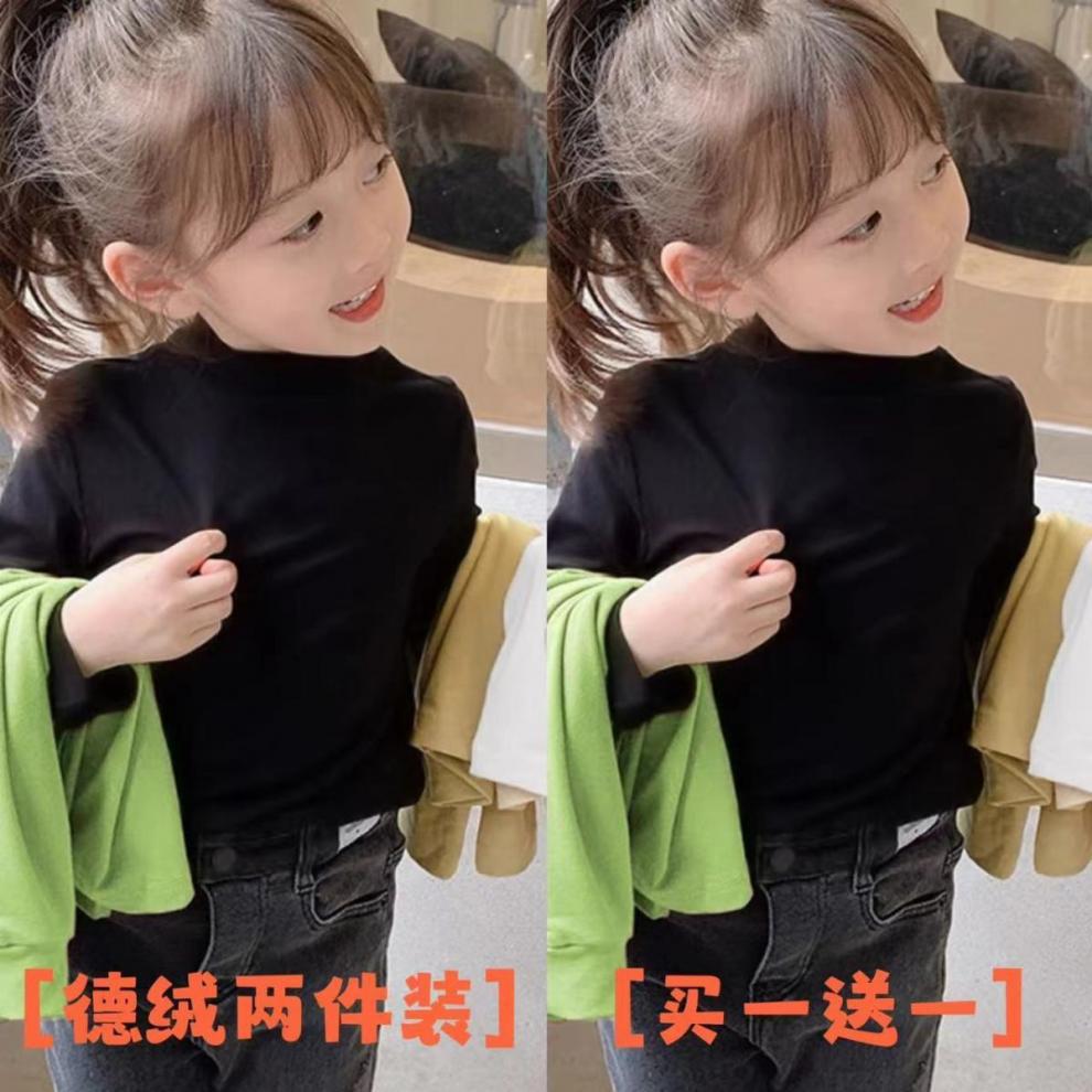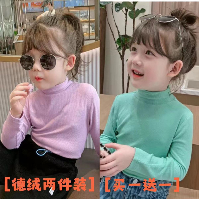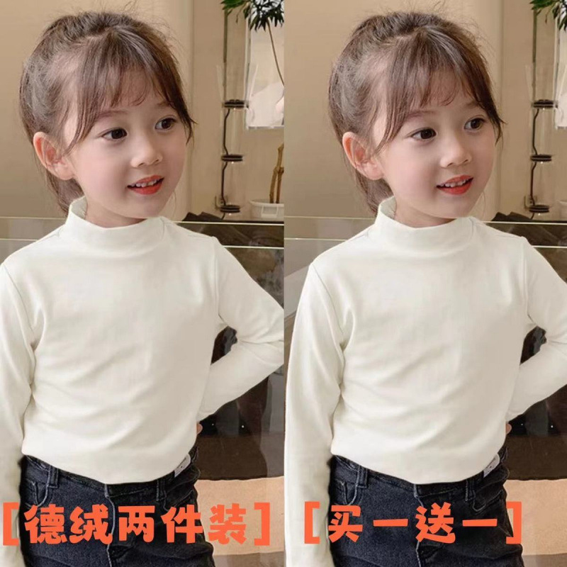 서양식 소녀 탑 하프 하이 칼라 롱 슬리브 티셔츠 겨울 벨벳 아동복 단색 소녀베이스 셔츠
