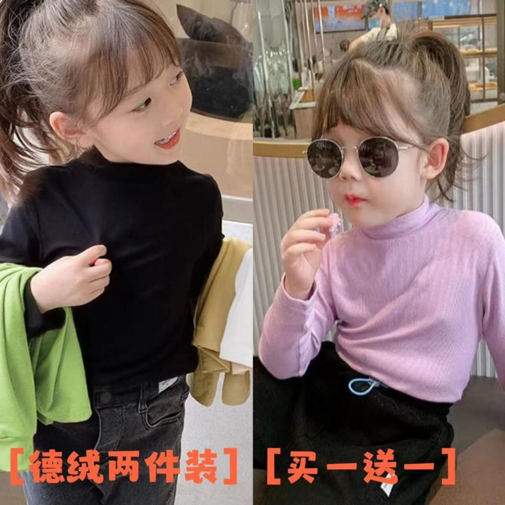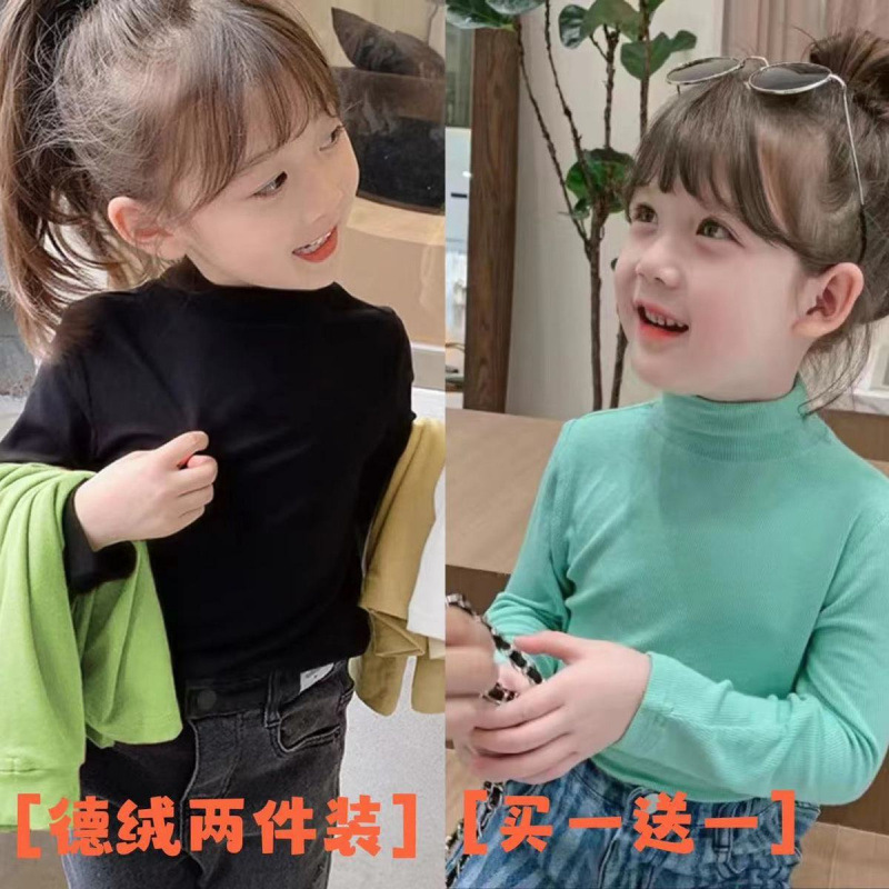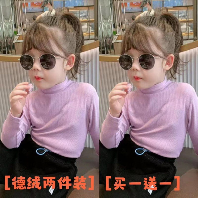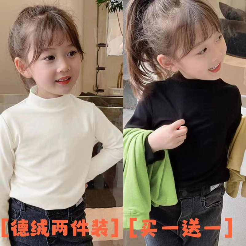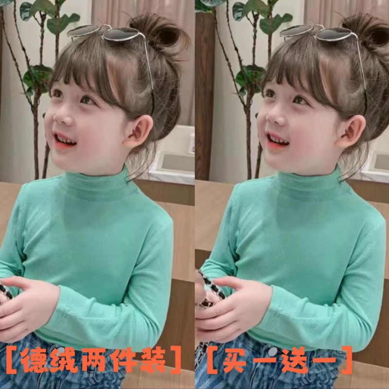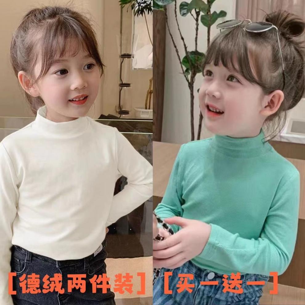 서양식 소녀 탑 하프 하이 칼라 롱 슬리브 티셔츠 겨울 벨벳 아동복 단색 소녀베이스 셔츠