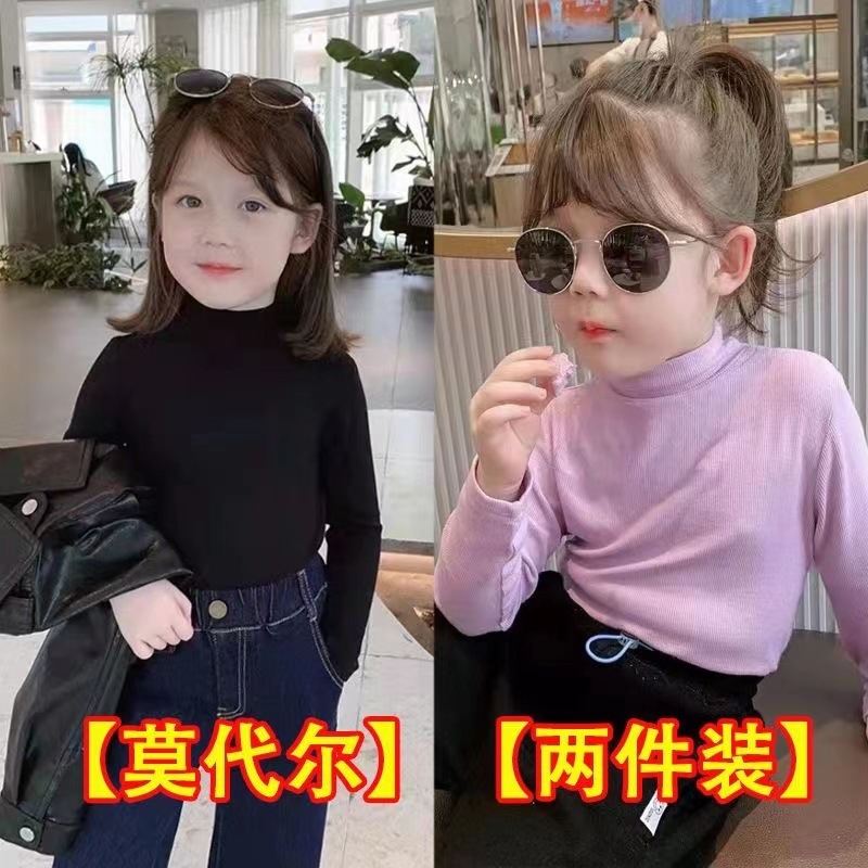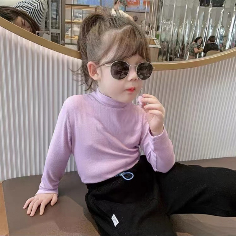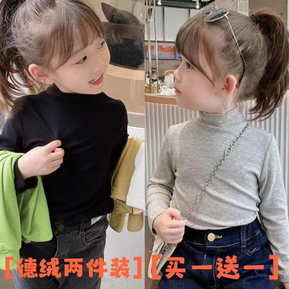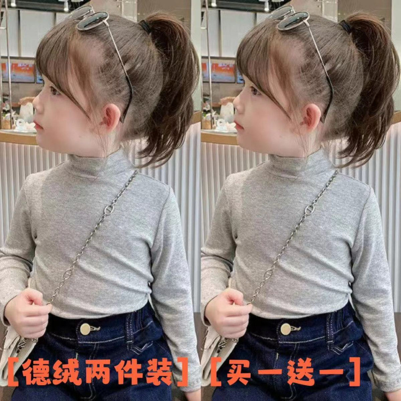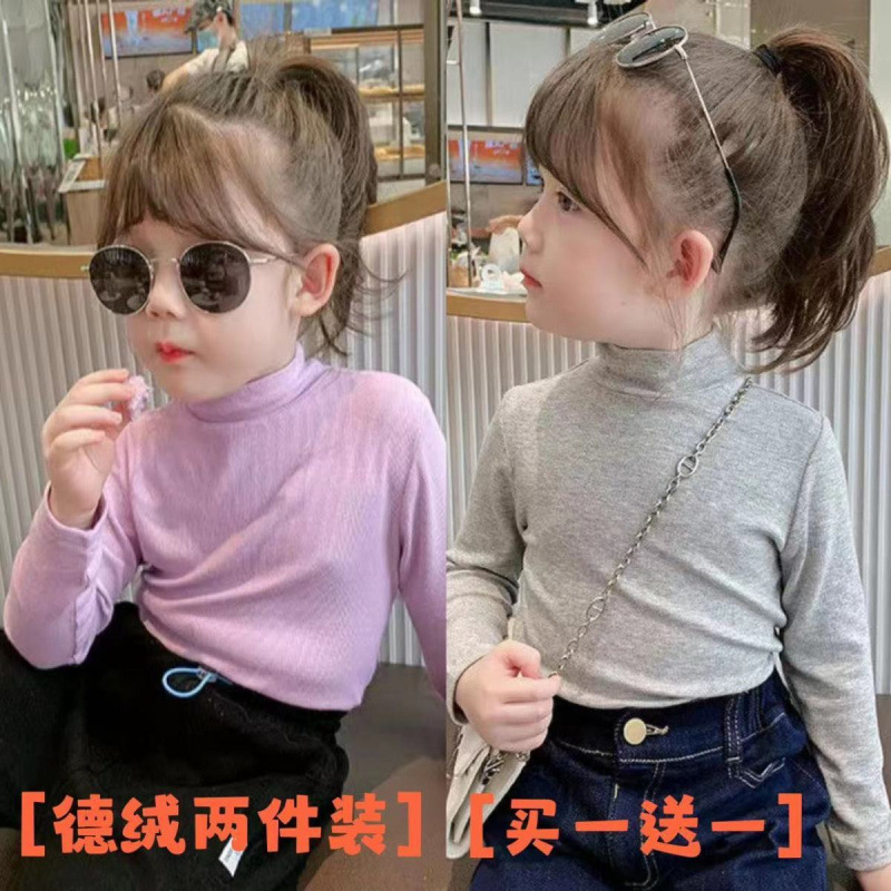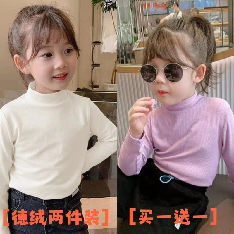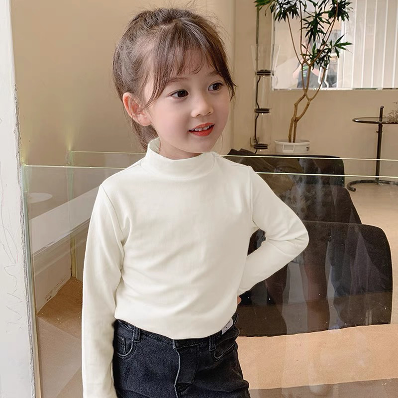 서양식 소녀 탑 하프 하이 칼라 롱 슬리브 티셔츠 겨울 벨벳 아동복 단색 소녀베이스 셔츠스토어 가기