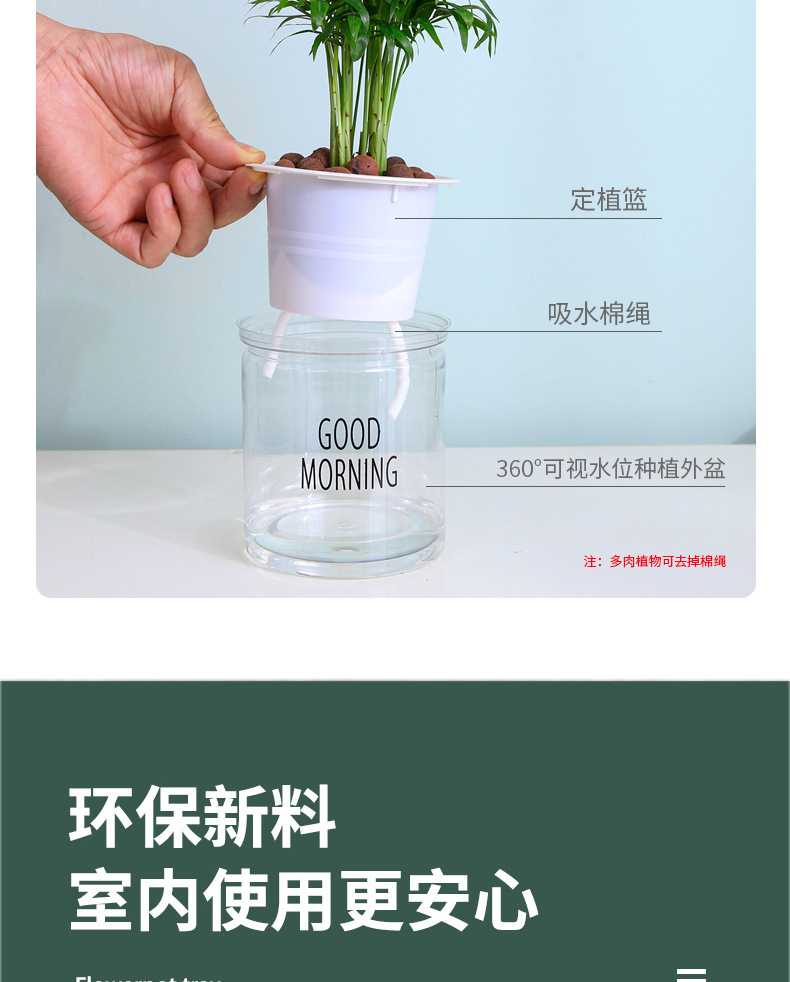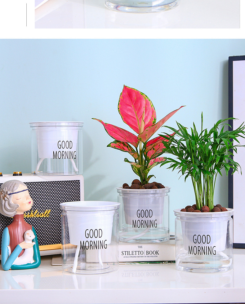 좋은 아침 분지 투명 플라스틱 화분 자체 흡수성 화분 수경 냄비 녹색 식물 다육 냄비 PET 타격 병 공장 도매스토어 가기
