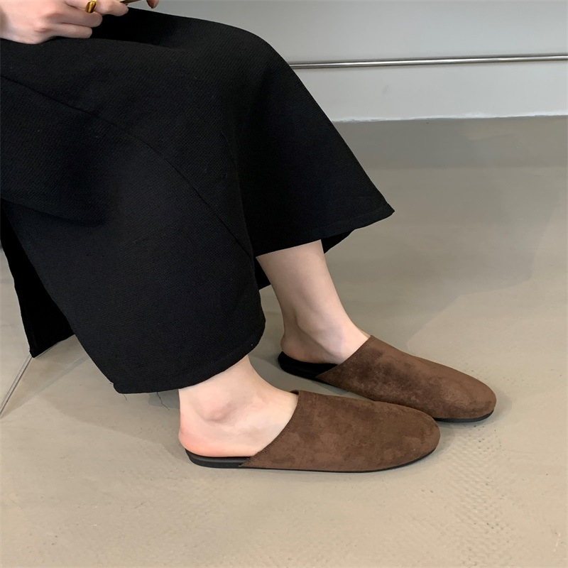 여성용 슬립 온 발가락 샌들 및 슬리퍼 2025 게으른 버켄 신발 캐주얼 레트로 플랫 뮬러 하프 슬리퍼