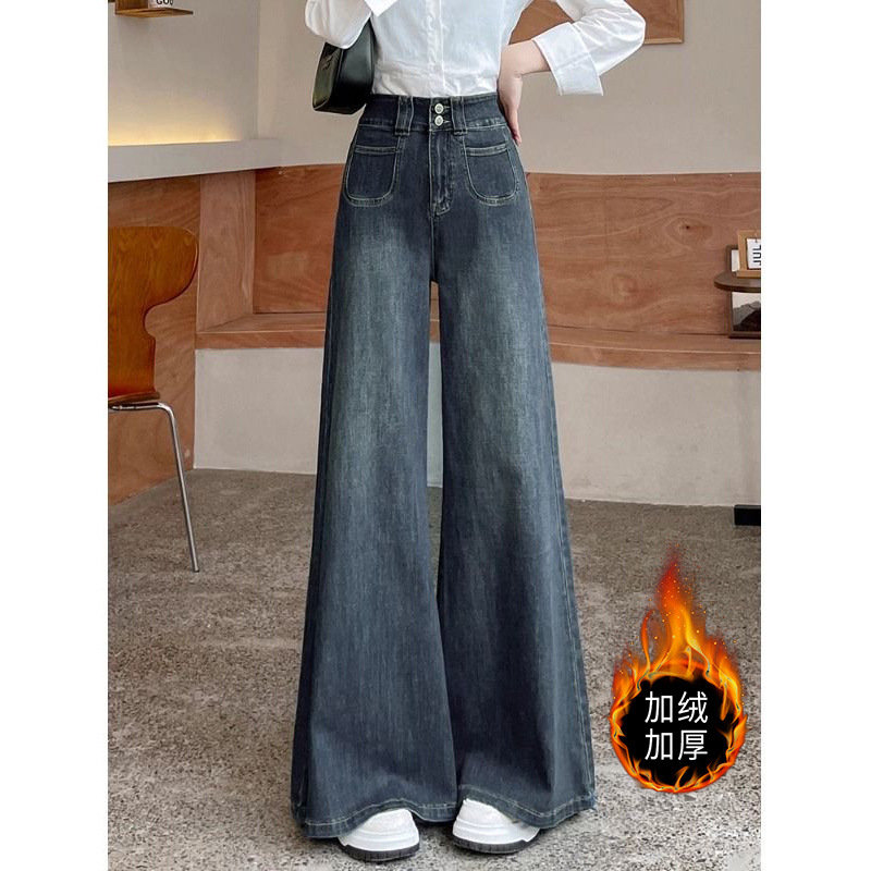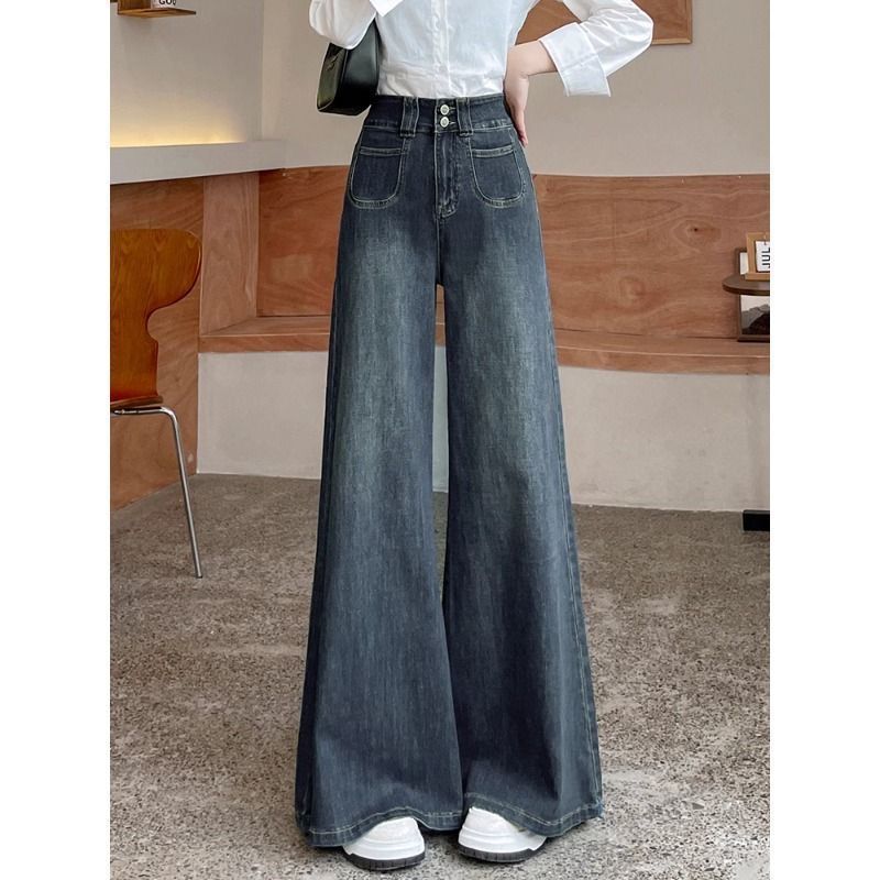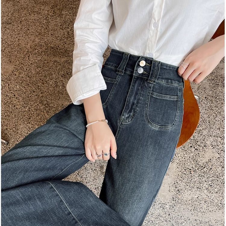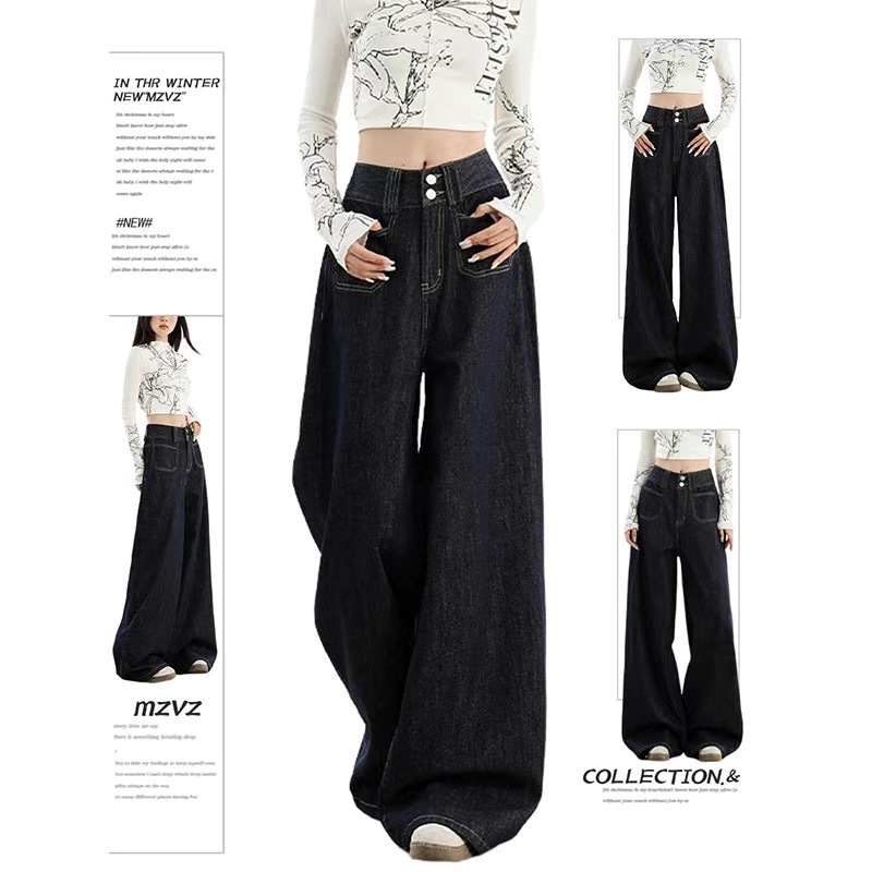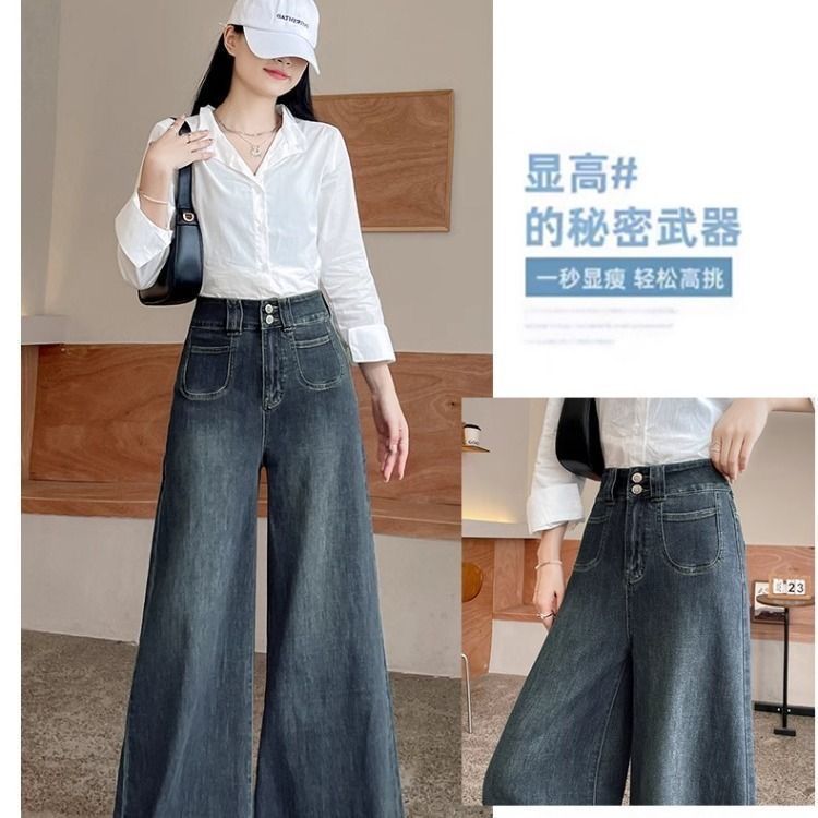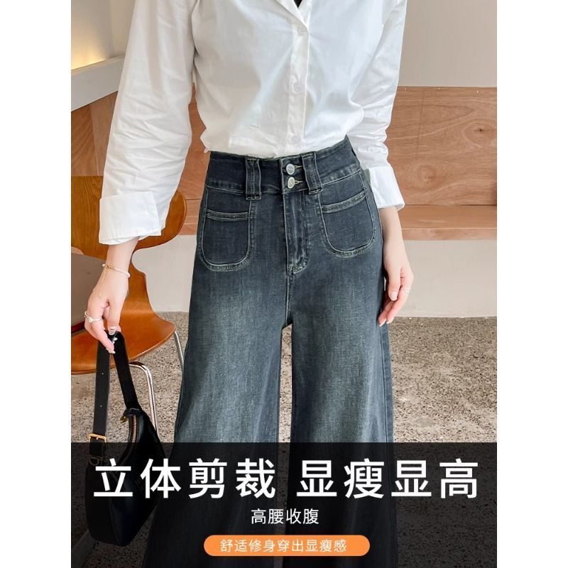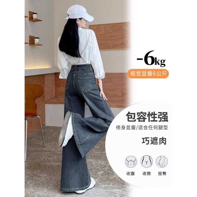 높은 허리 넓은 다리 청바지 여성의 봄과 가을 2025 새로운 슬림 플러스 사이즈 느슨한 스트레이트 바지스토어 가기