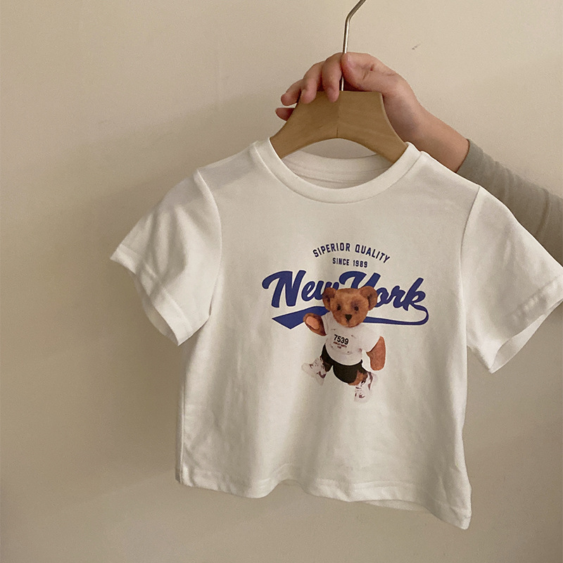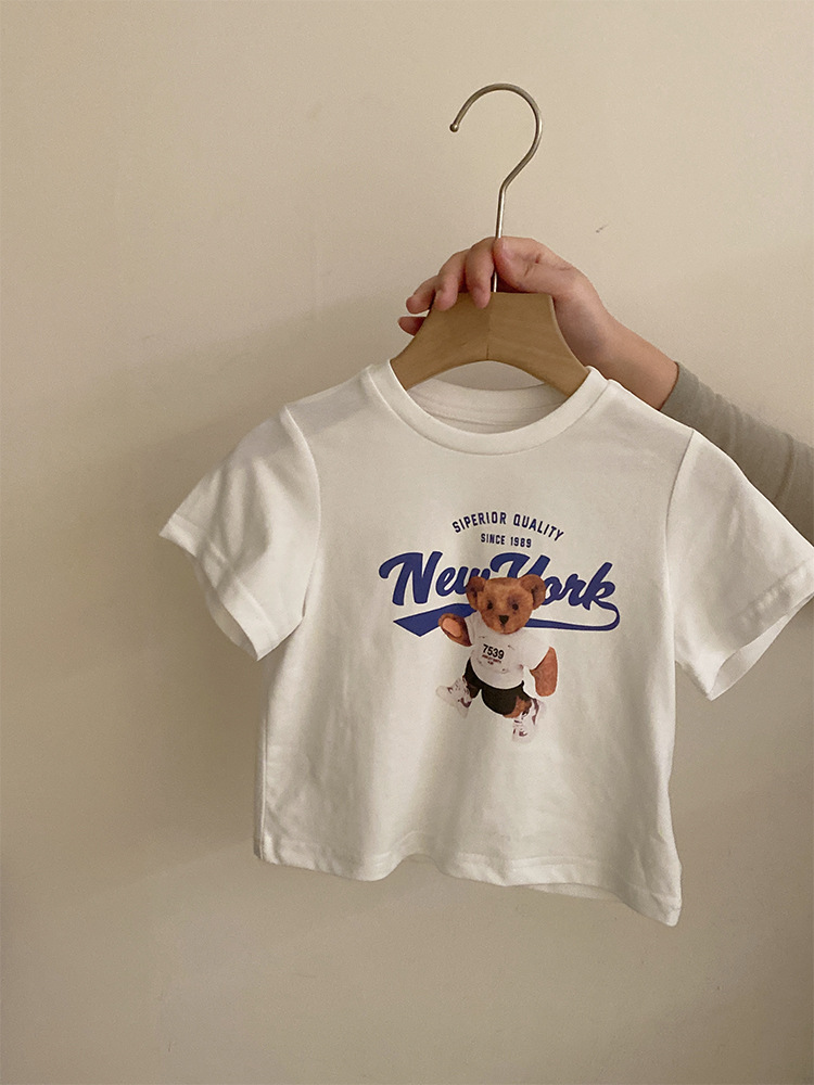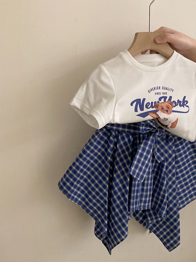 여자 한국식 2025 여름 새 곰 무늬 반팔 탑, 격자 무늬 활로 올매치 불규칙한 치마스토어 가기