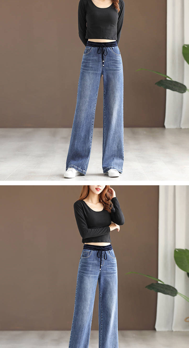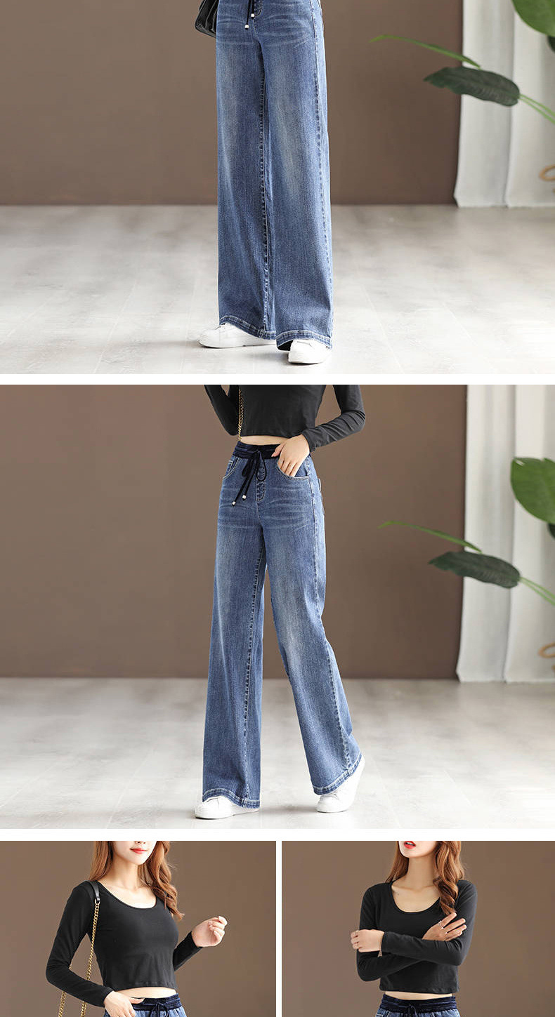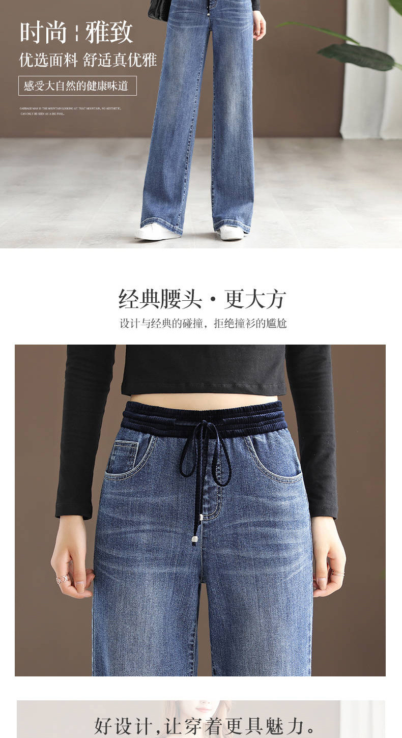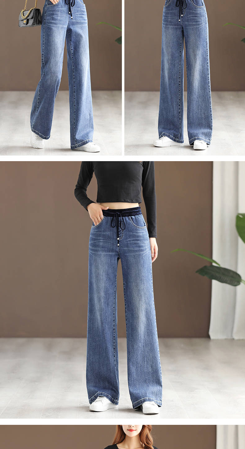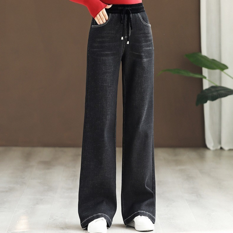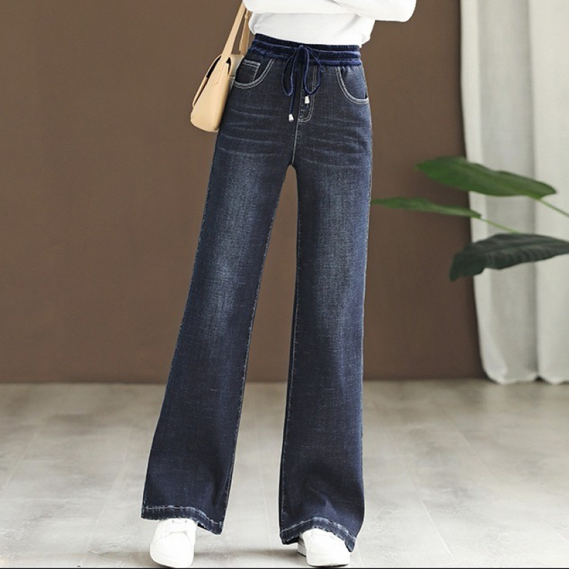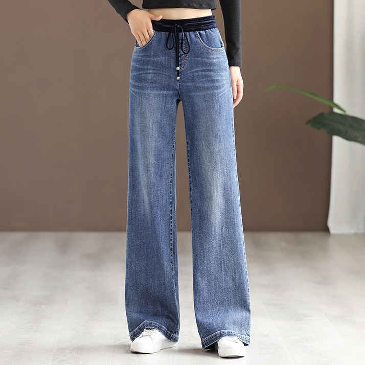 탄성 허리 청바지 여성 높은 허리 2025 봄과 가을 새로운 스트레치 슬리밍 넓은 다리 느슨한 스트레이트 바지 바지 바지스토어 가기