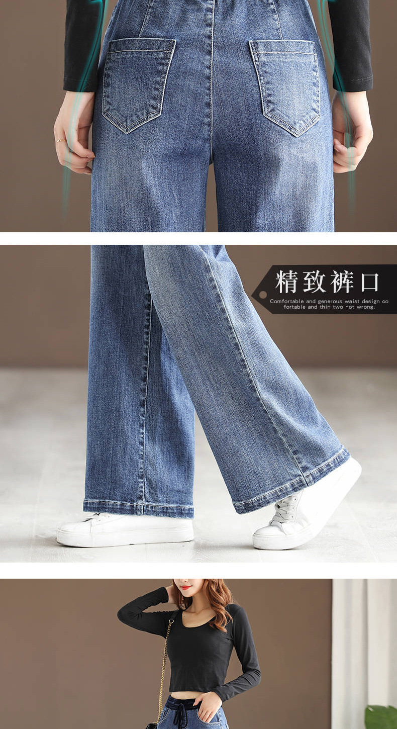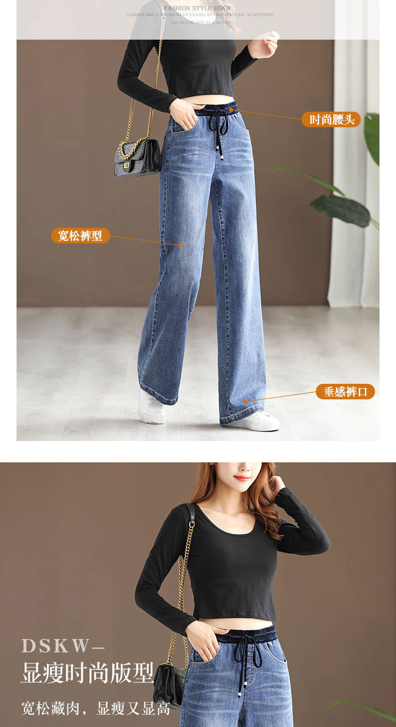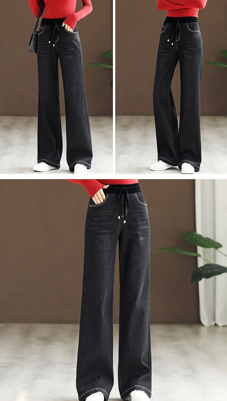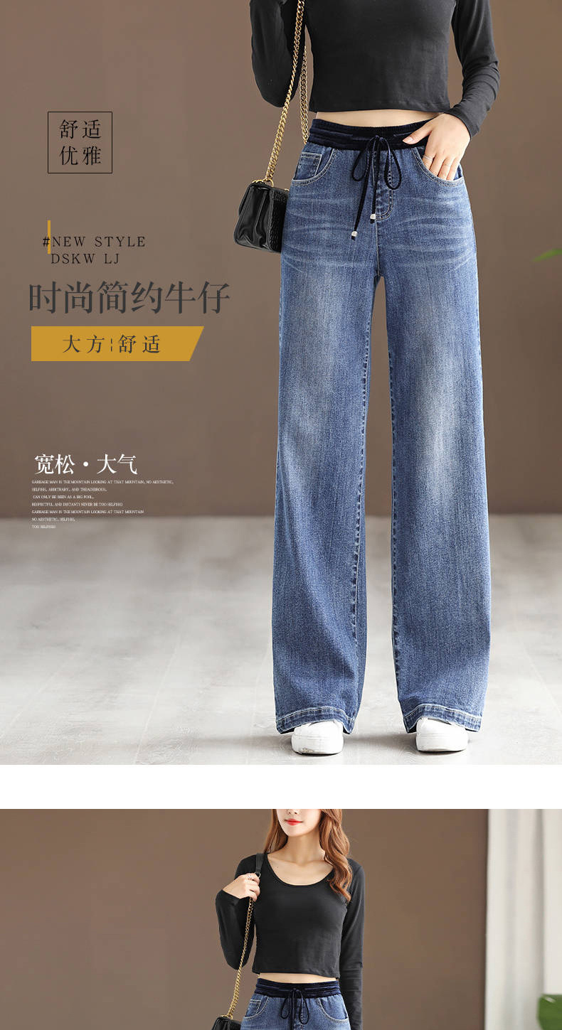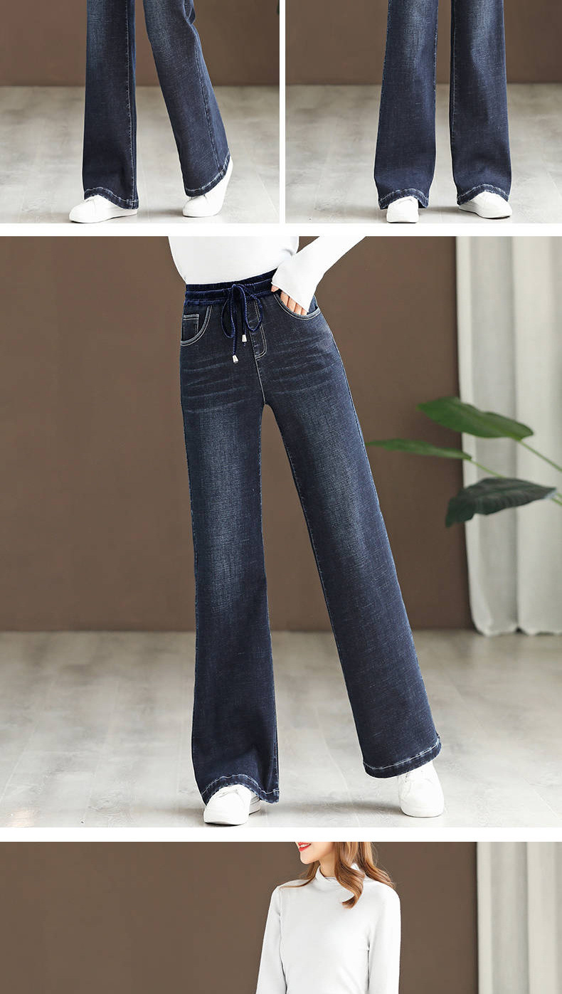 탄성 허리 청바지 여성 높은 허리 2025 봄과 가을 새로운 스트레치 슬리밍 넓은 다리 느슨한 스트레이트 바지 바지 바지스토어 가기