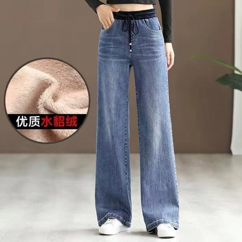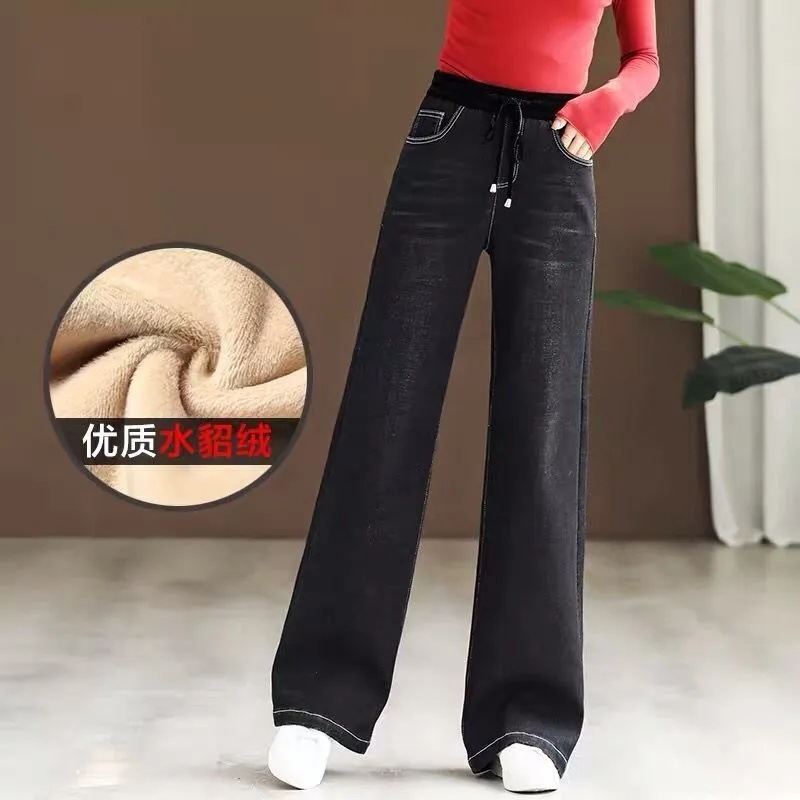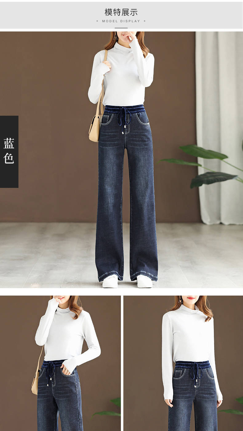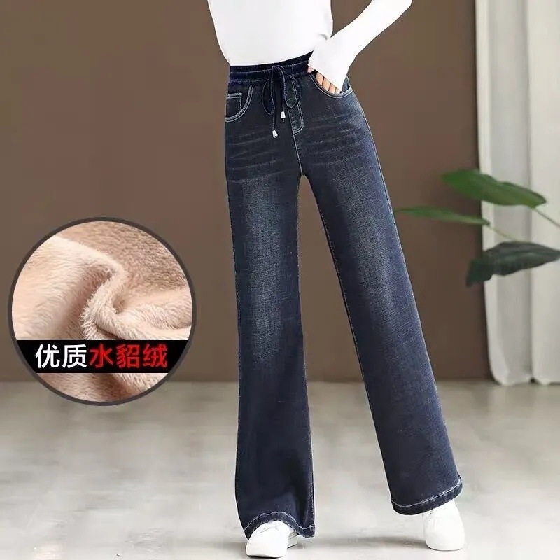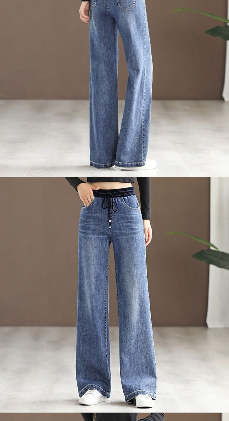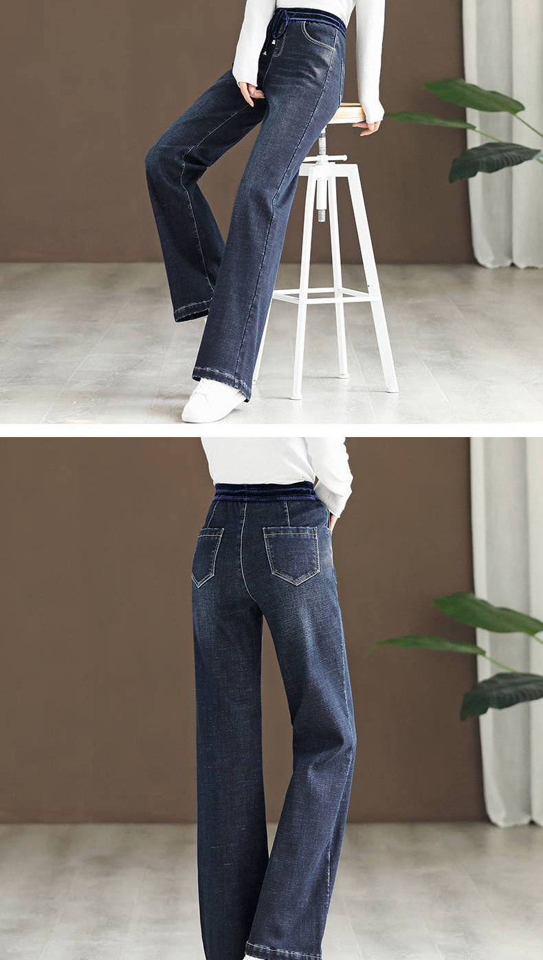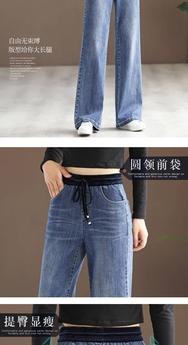 탄성 허리 청바지 여성 높은 허리 2025 봄과 가을 새로운 스트레치 슬리밍 넓은 다리 느슨한 스트레이트 바지 바지 바지스토어 가기