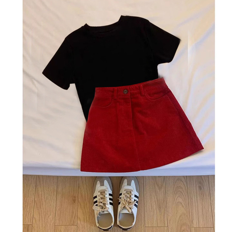 여름 세트 여자 2025 신지방 한국 스타일 올매치 슬리밍 반팔 탑 레드 스커트 투피스 세트스토어 가기