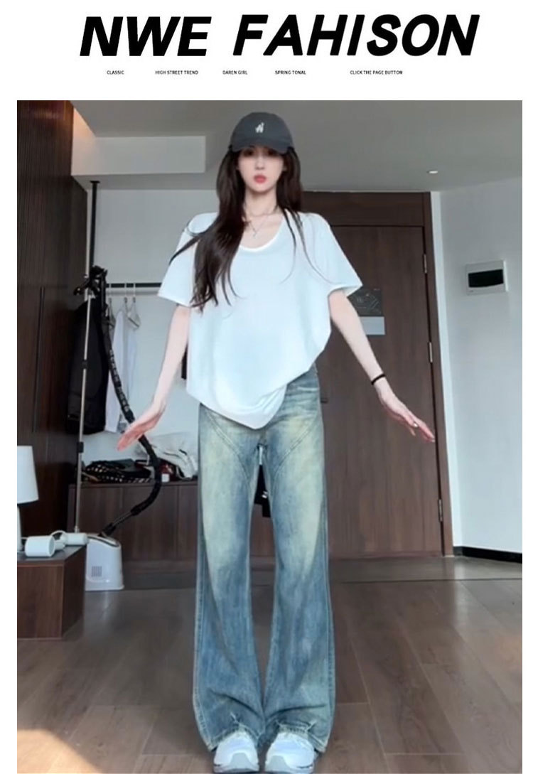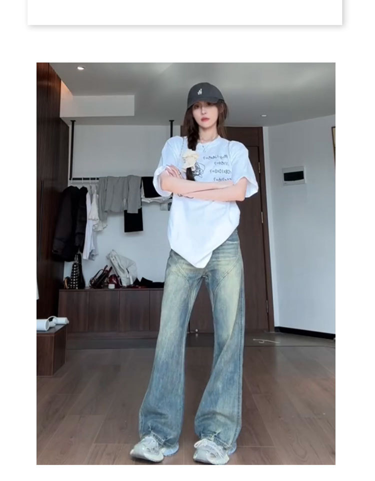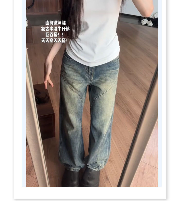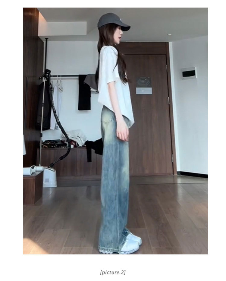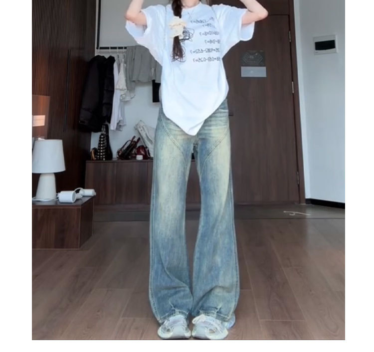 아메리칸 스타일 레트로 스트레이트 레그 청바지 여성의 2025 년 새로운 여름 높은 허리 슬리밍 느슨한 틈새 넓은 다리 바지스토어 가기