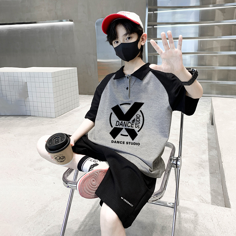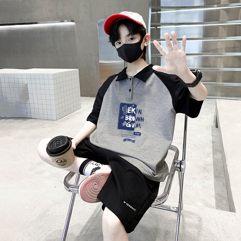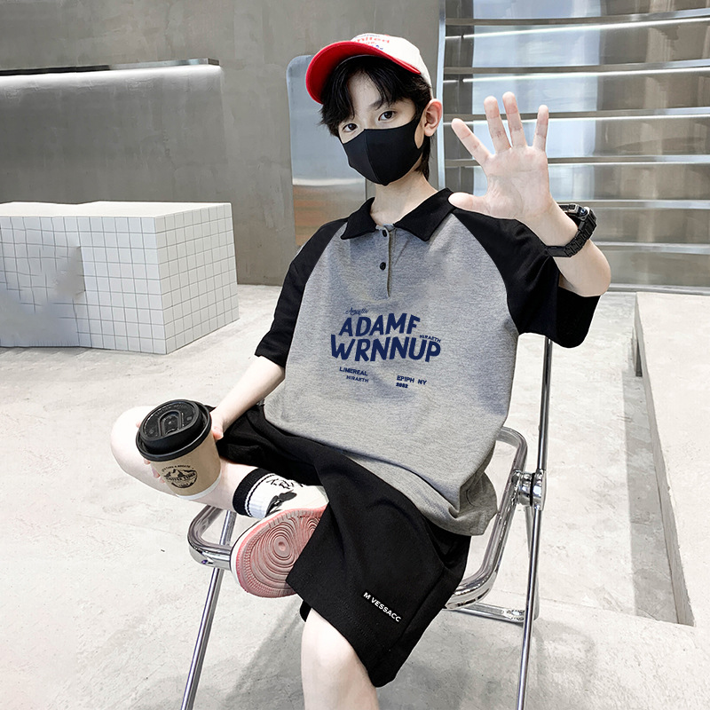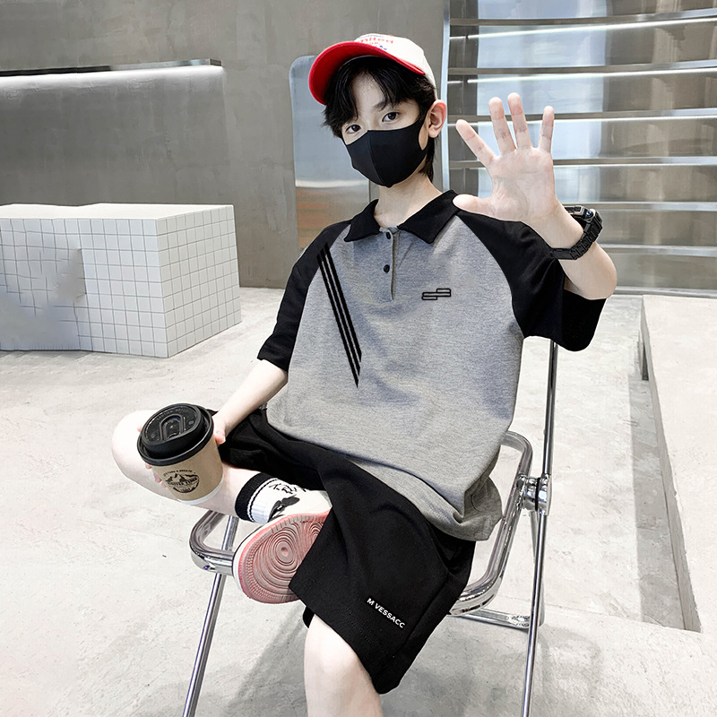 2025 뉴 보이즈 여름 세트 어린이 8-15 세 스플라이스 반팔 폴로 셔츠 투피스 세트