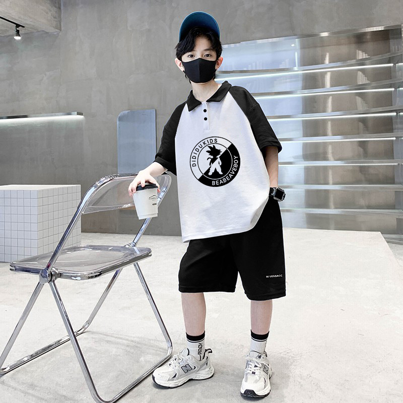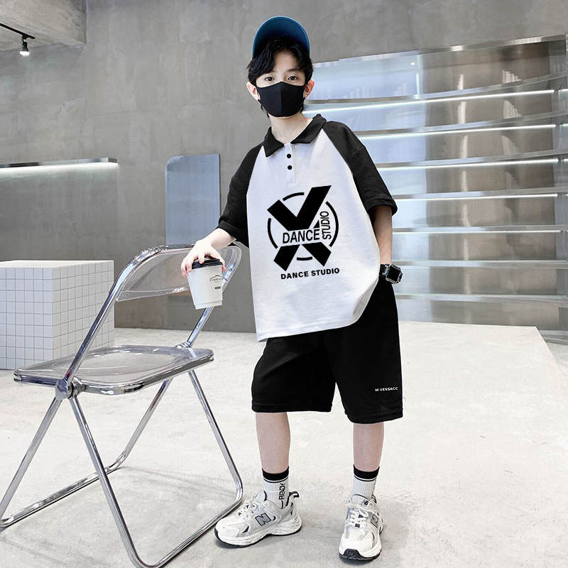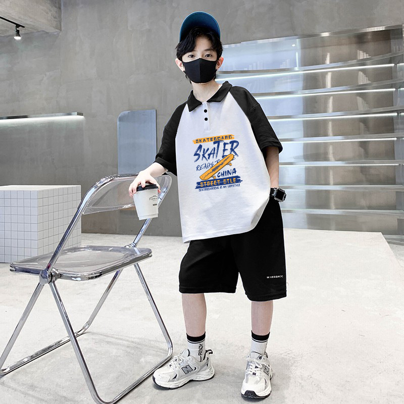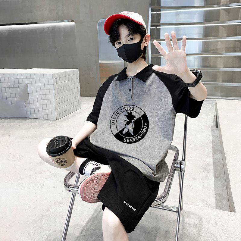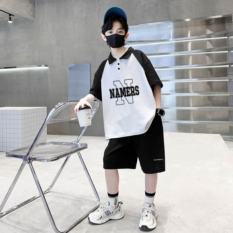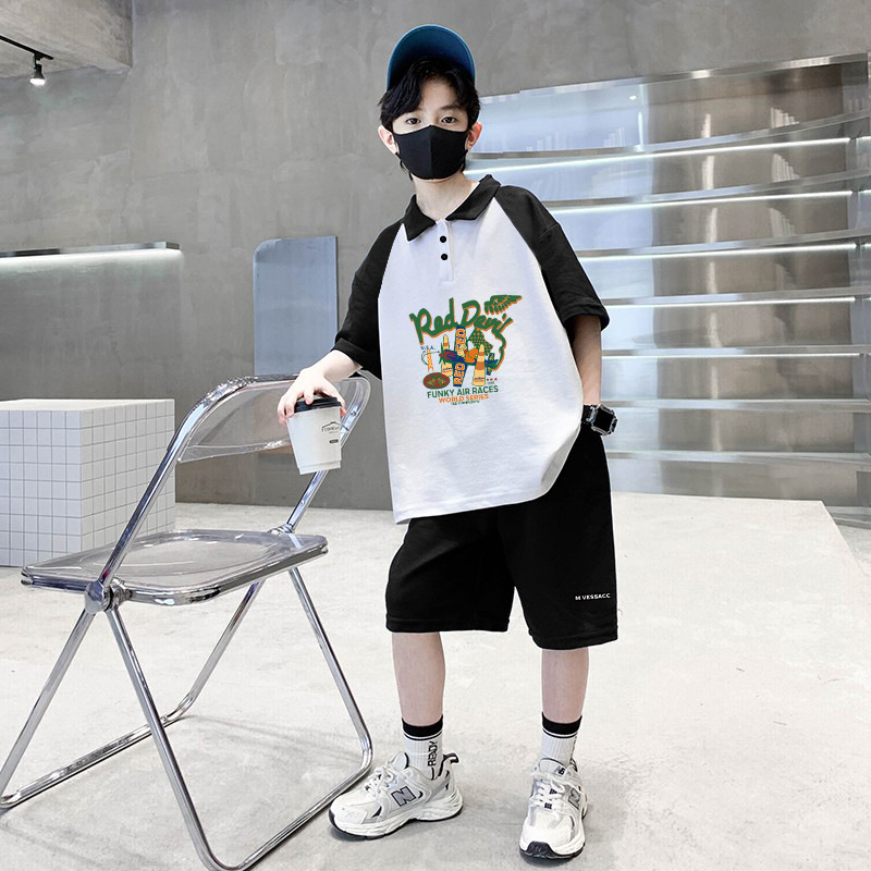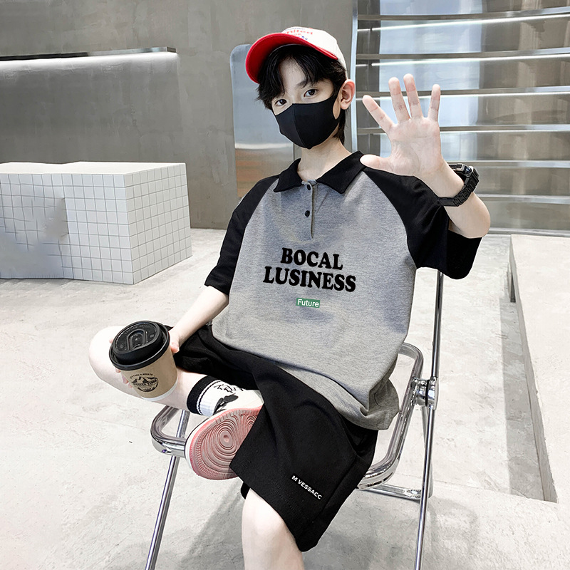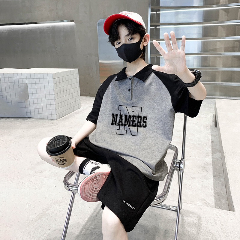 2025 뉴 보이즈 여름 세트 어린이 8-15 세 스플라이스 반팔 폴로 셔츠 투피스 세트스토어 가기