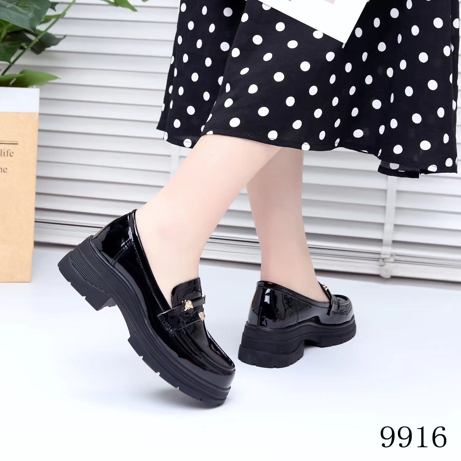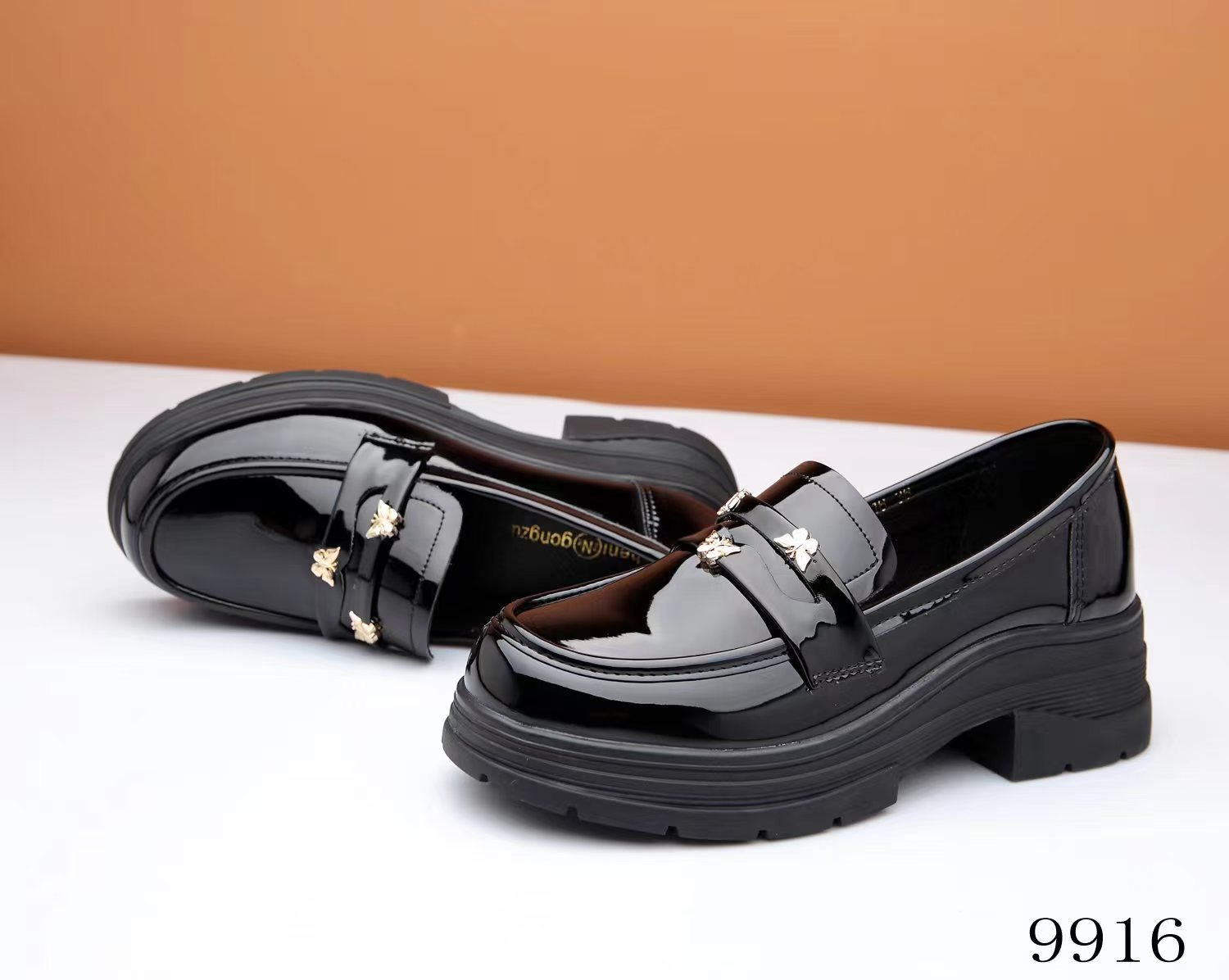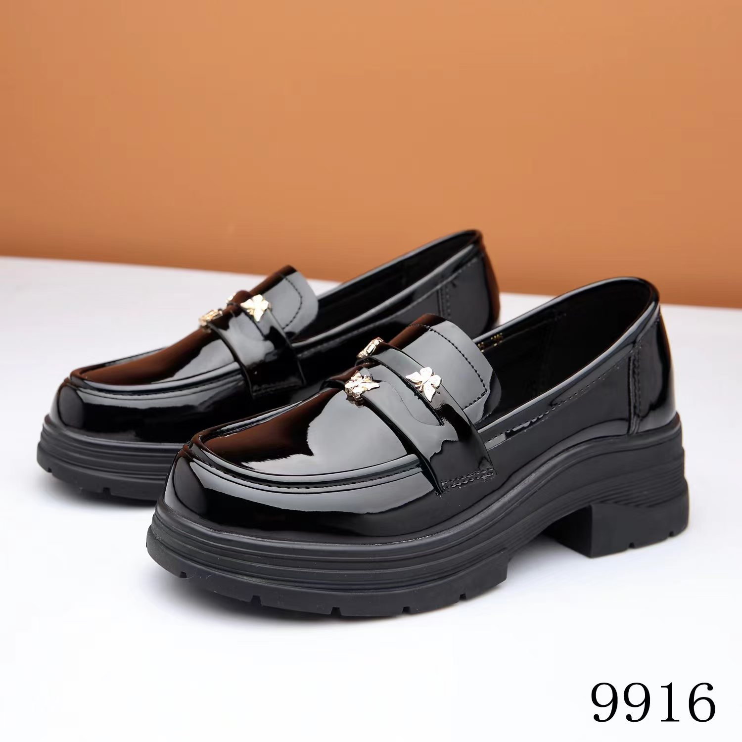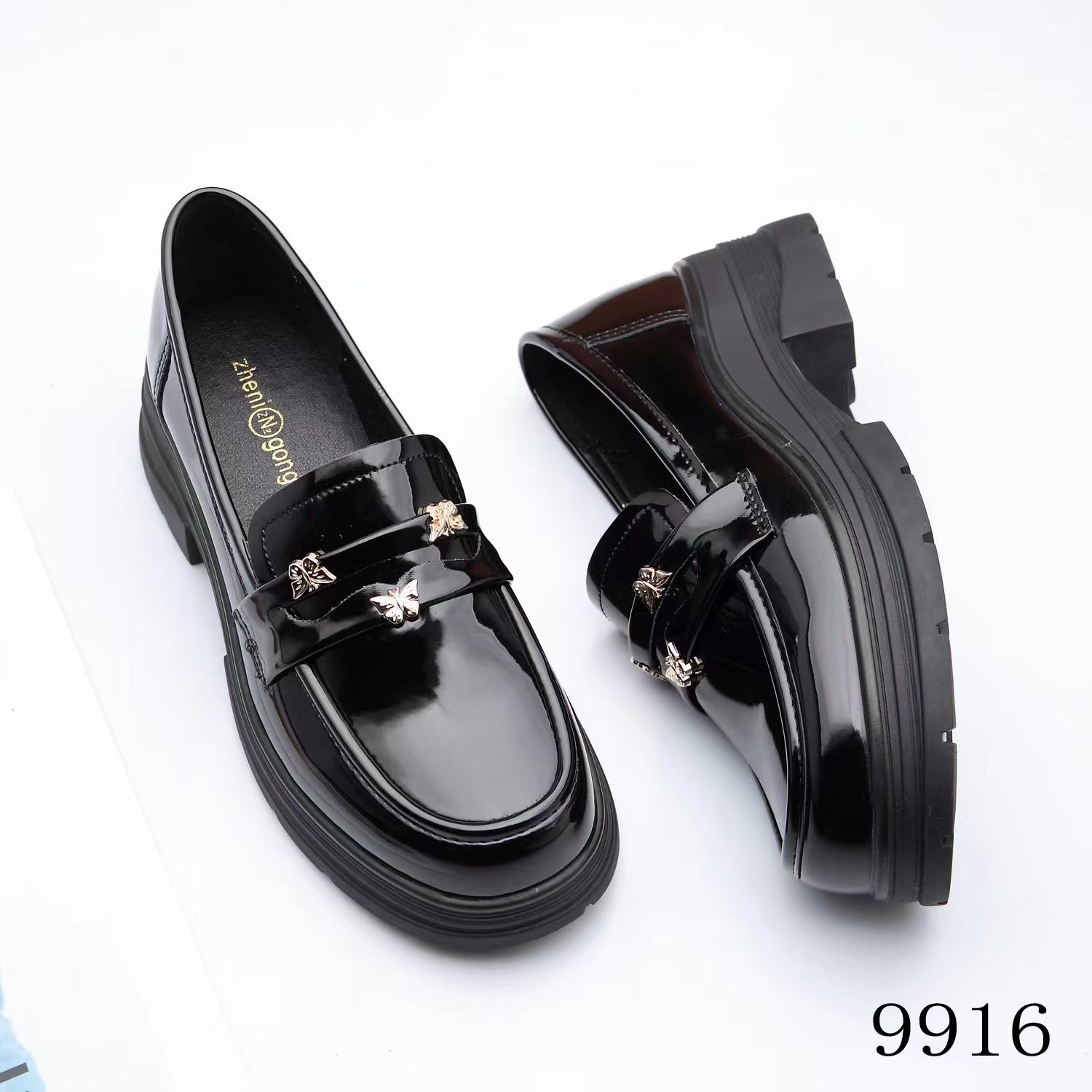 두꺼운 밑창 로퍼 여성의 2024 새로운 동백 금화 영국 빈티지 단층 신발 검은 작은 가죽 신발 9916
