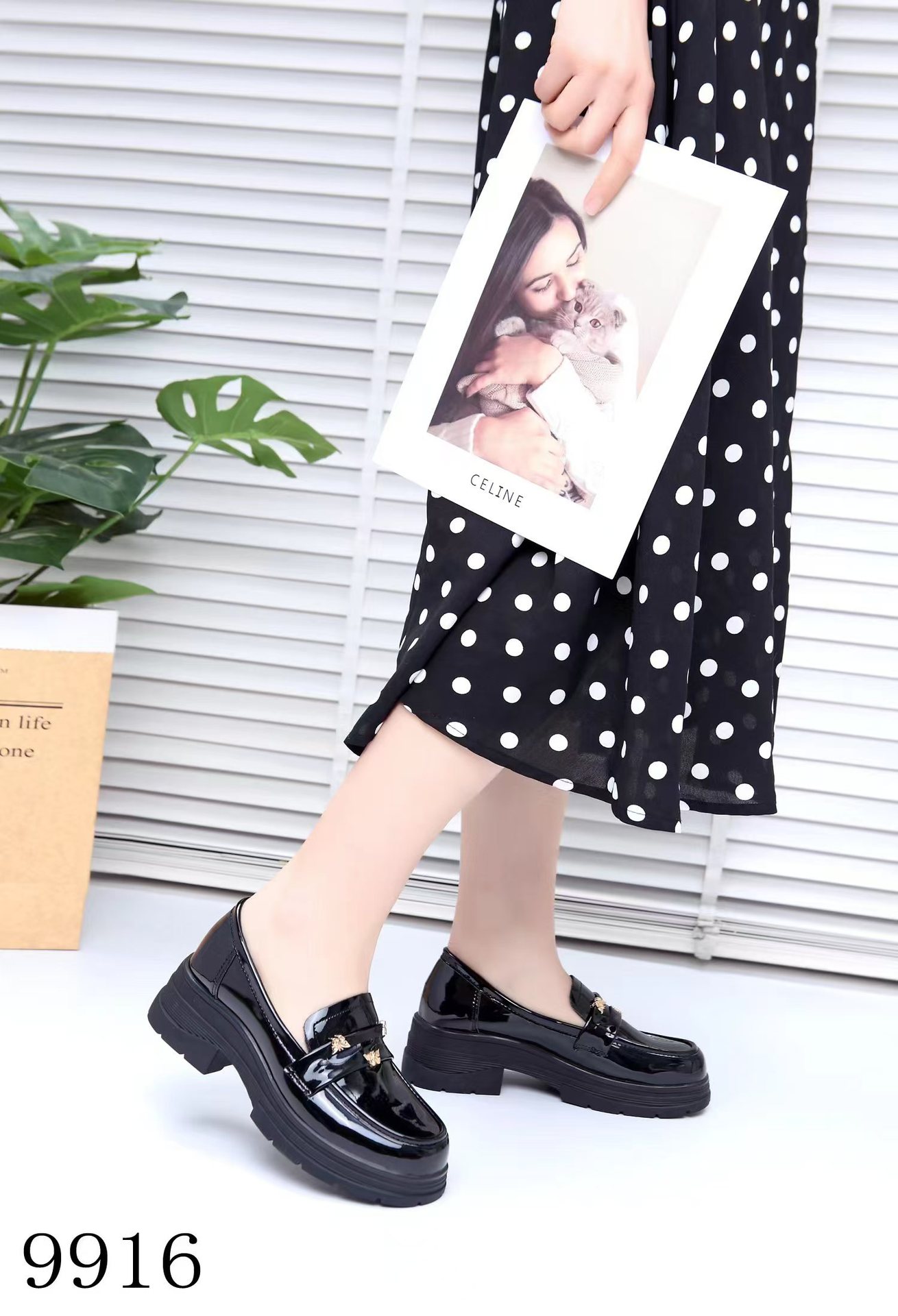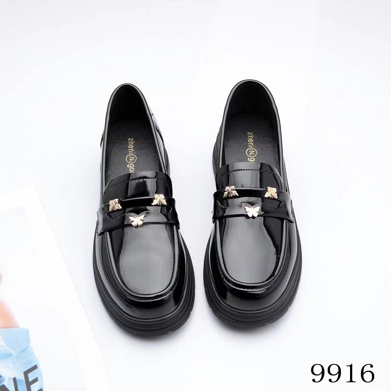 두꺼운 밑창 로퍼 여성의 2024 새로운 동백 금화 영국 빈티지 단층 신발 검은 작은 가죽 신발 9916스토어 가기