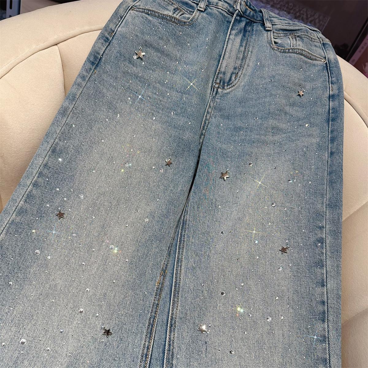 올해 인기있는 바지 여성 2025 새로운 가을 좁은 버전 슬림 스트레이트 와이드 다리 청바지 봄과 가을스토어 가기