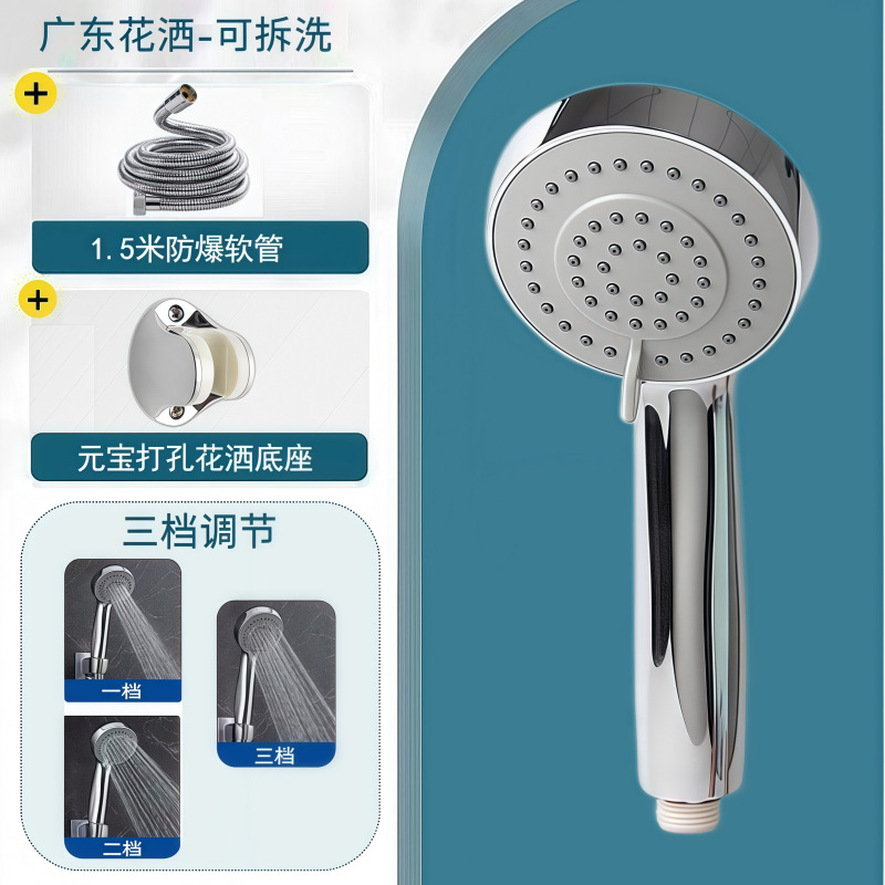 • ✷۶۶۶۶✷광동 샤워 세트(슈퍼차지 3단 기어 + 탈부착 및 세척 가능)(컬러 박스)( 1.5m 전기도금 암호화, 방폭 및 트립 방지 암호화 튜브 + 전기도금 시트)♥۶