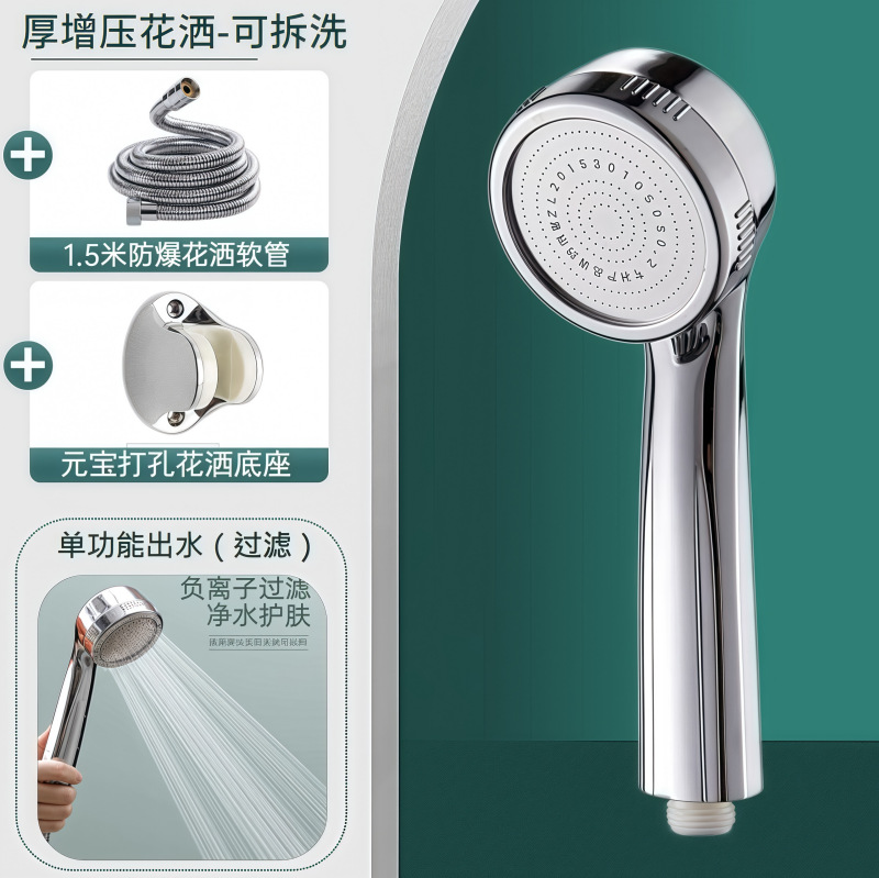 • .✷۶۶۶۶✷전기도금 두꺼운 부스터 샤워 세트(필터 + 탈부착 및 세척)(컬러 박스)( 1.5m 전기도금 암호화 방폭 및 트립 방지 암호화 튜브 + 전기도금 시트)