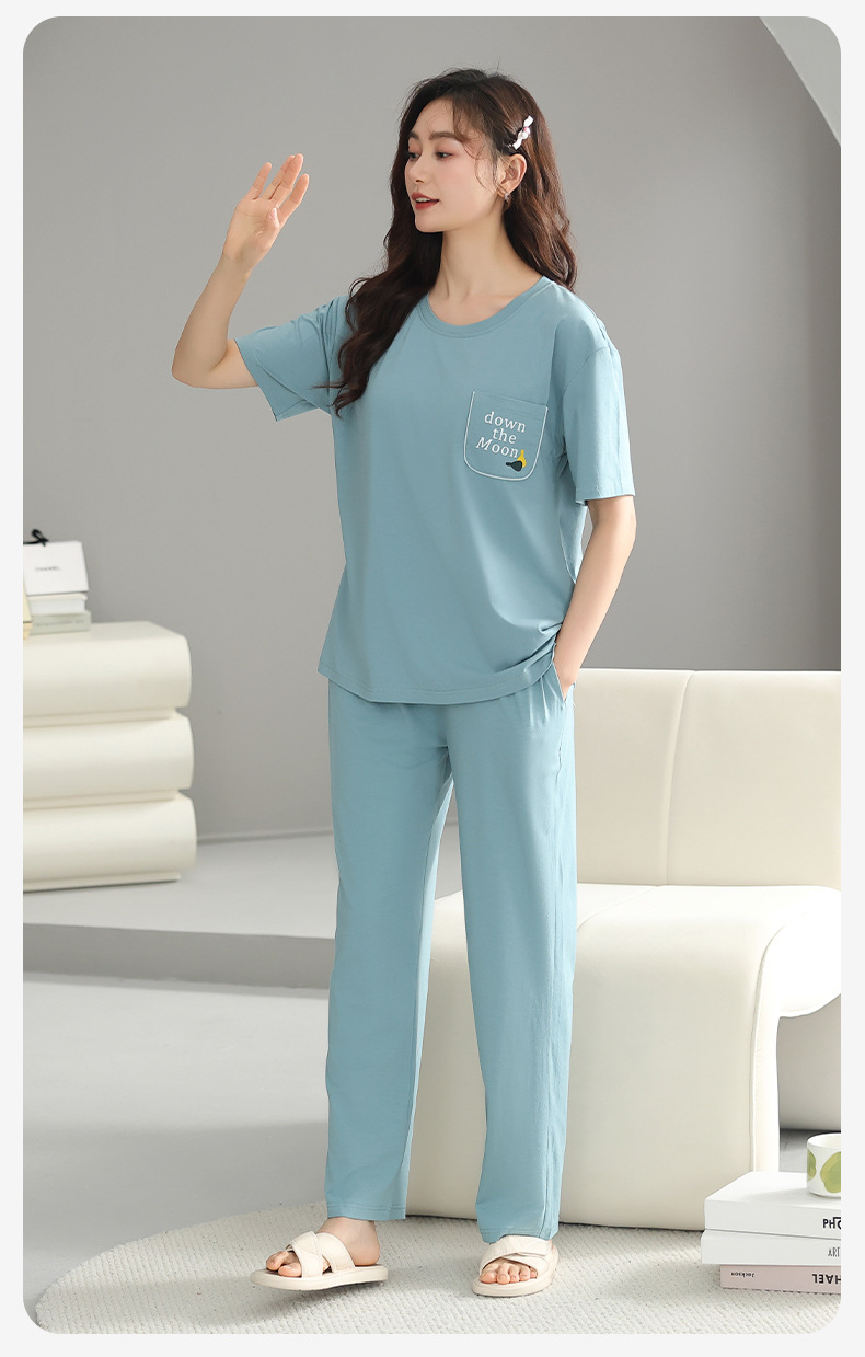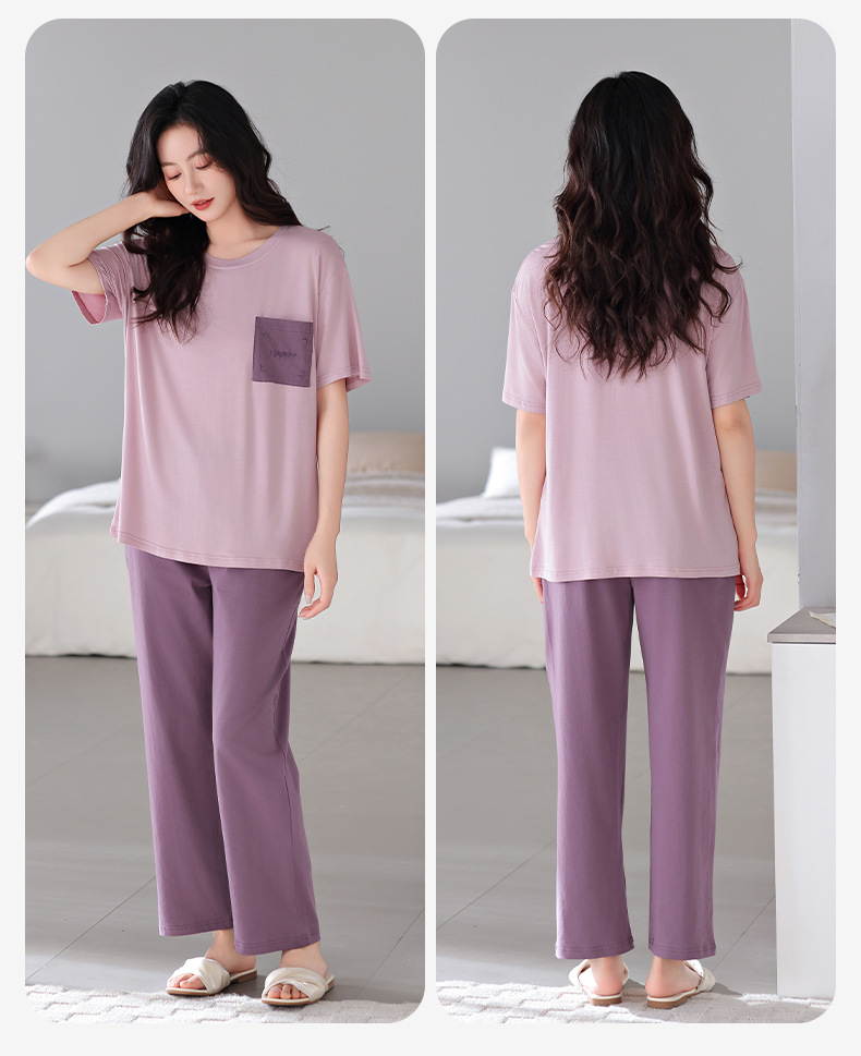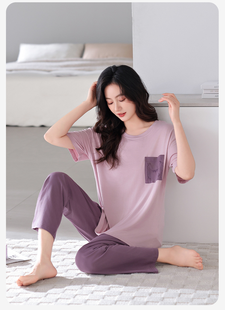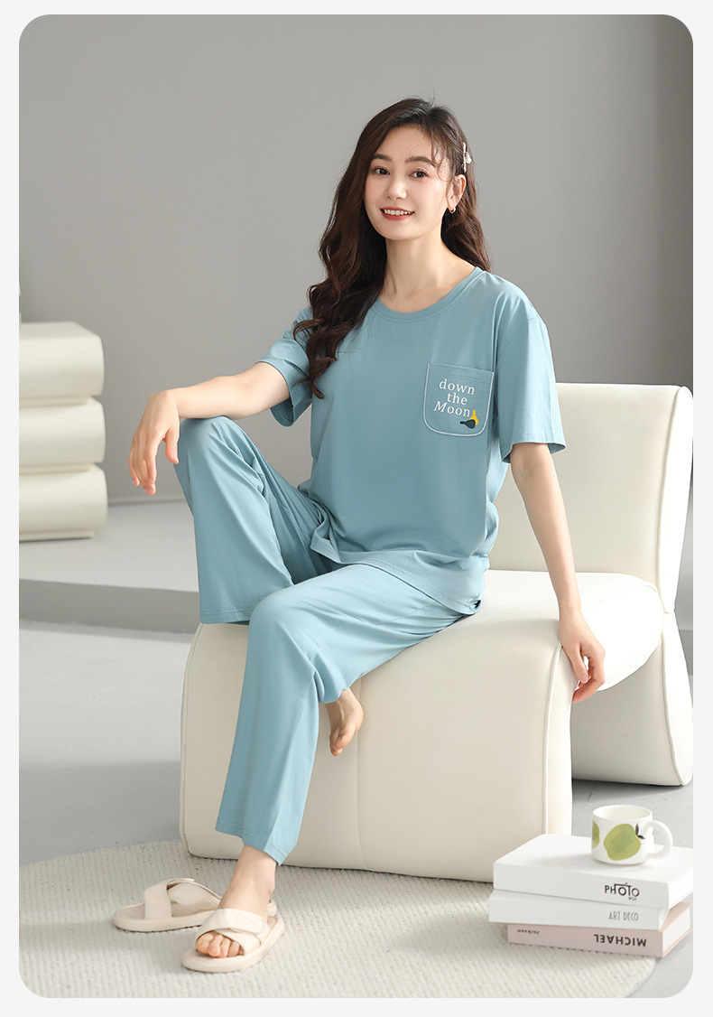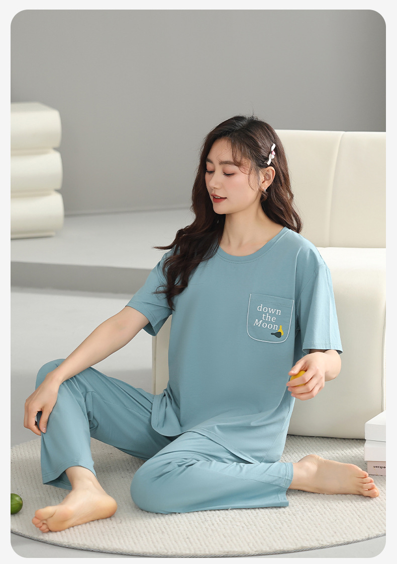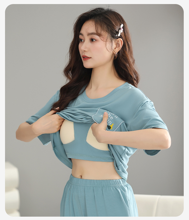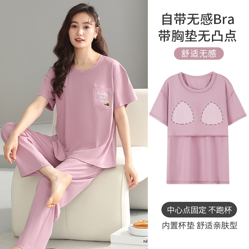 잠옷 여성의 여름 모달 가슴 패드와 반팔 바지 시원한 느낌의 캐주얼 얇은 플러스 사이즈 홈 세트 여름 옷스토어 가기