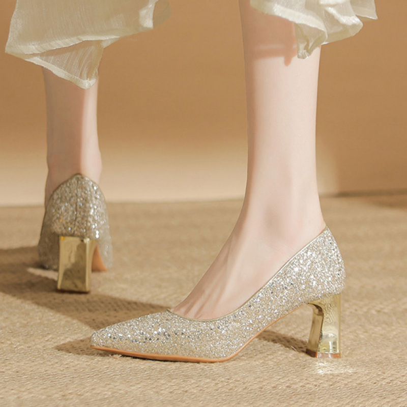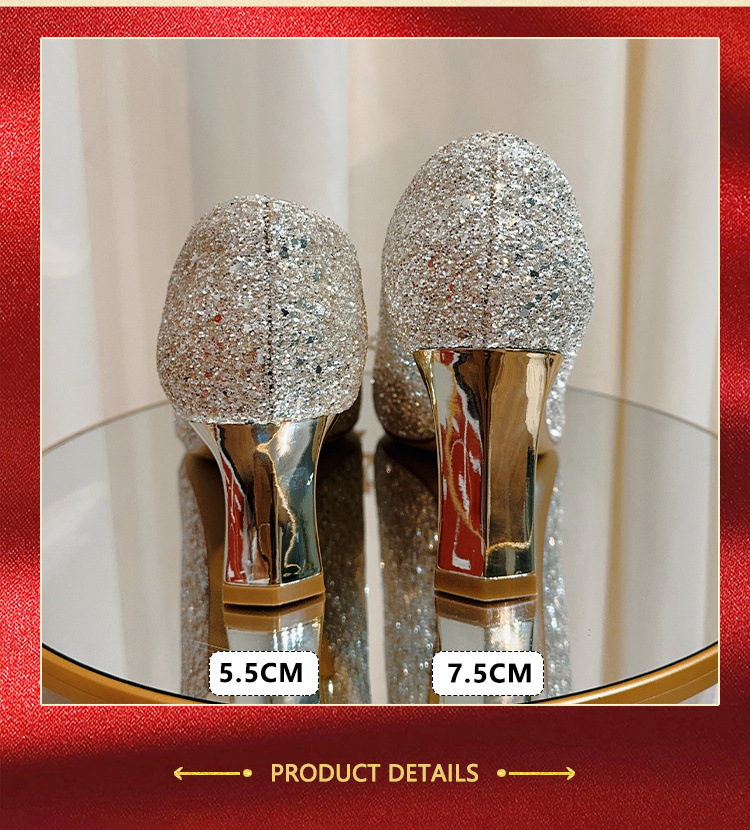 두꺼운 힐 웨딩 신발 신부 여성의 피곤하지 않은 발 쇼 웨딩 원피스 2 개 착용 크리스탈 신발 2025 새로운 도착 겨울 하이힐스토어 가기