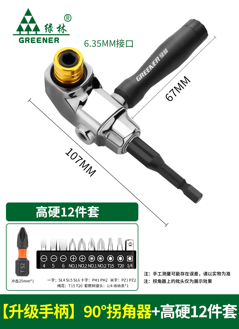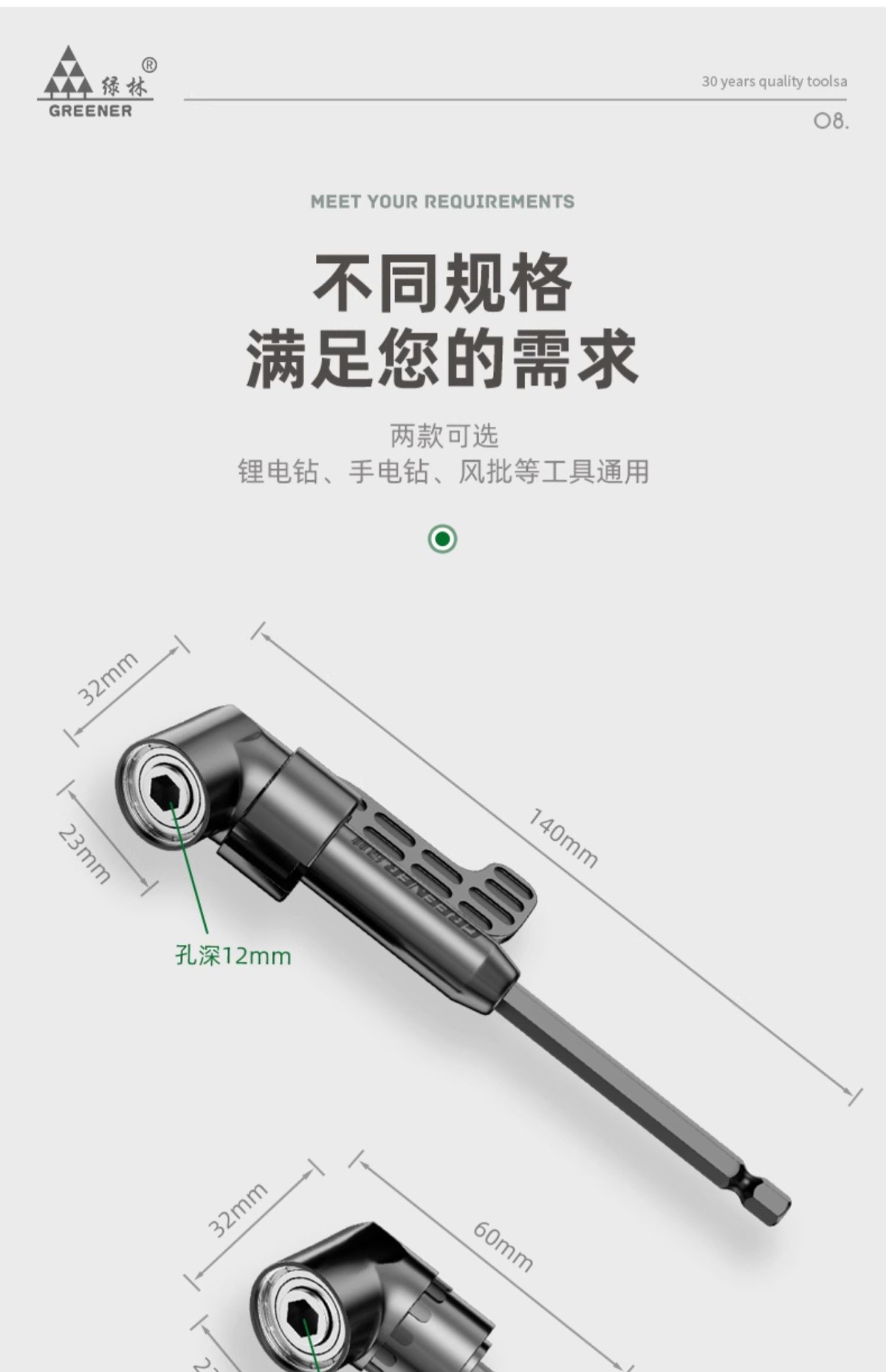 녹색 숲 배치 헤드 코너 장치 90 도 보편적 인 전기 스크류 드라이버 터닝 아티팩트 전기 배치 전기 드릴 직각 드라이버 헤드스토어 가기