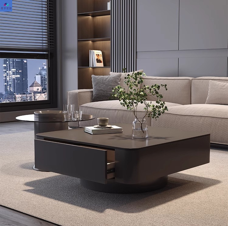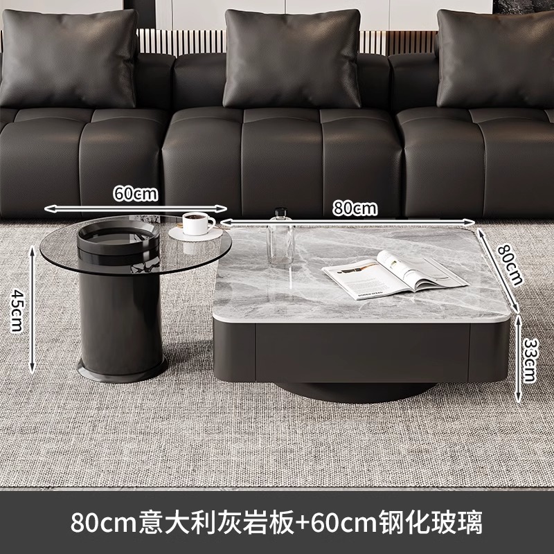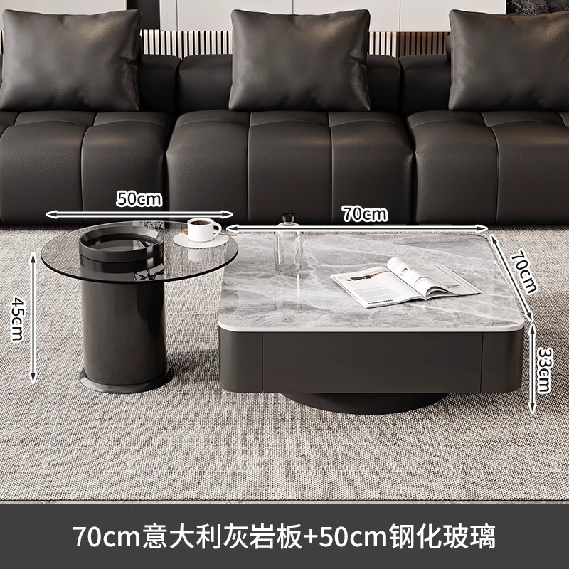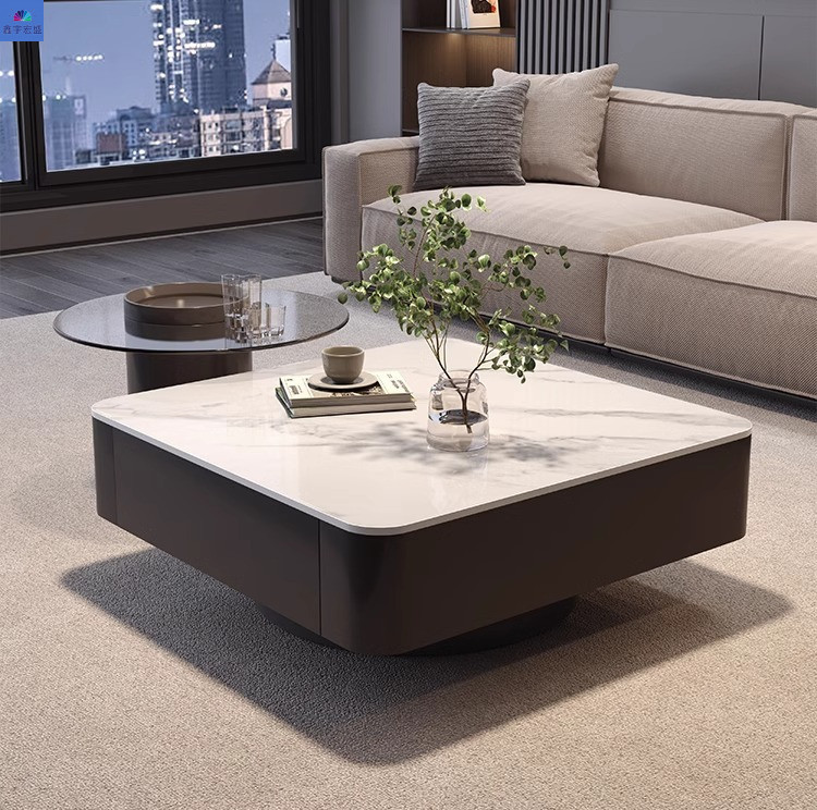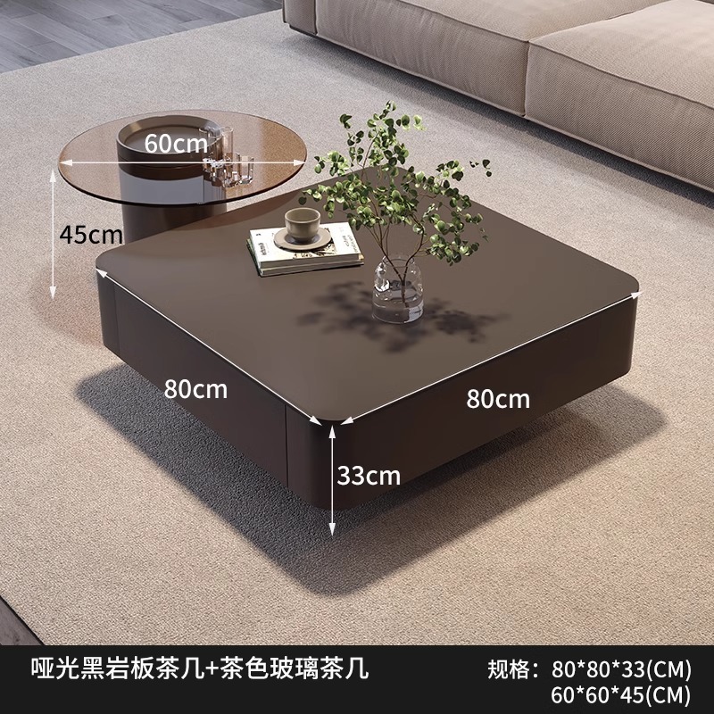 하이 엔드 라이트 럭셔리 이탈리아 스퀘어 록 플레이트 커피 테이블 작은 아파트 현대 간단한 거실 홈 블랙 티 테이블스토어 가기