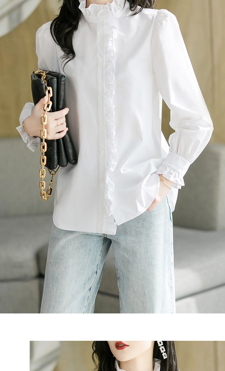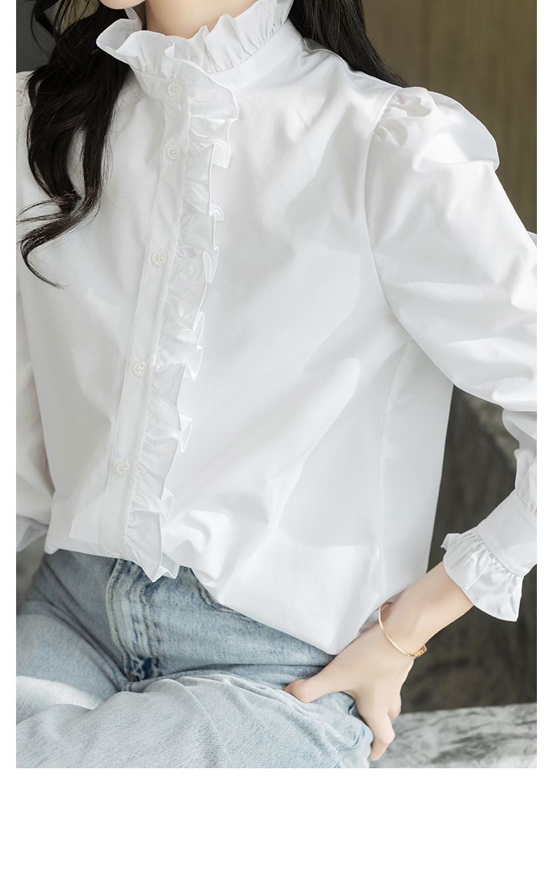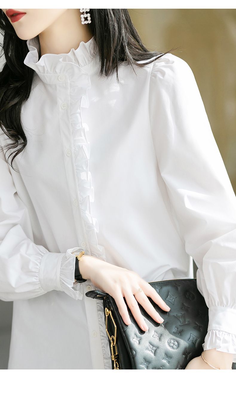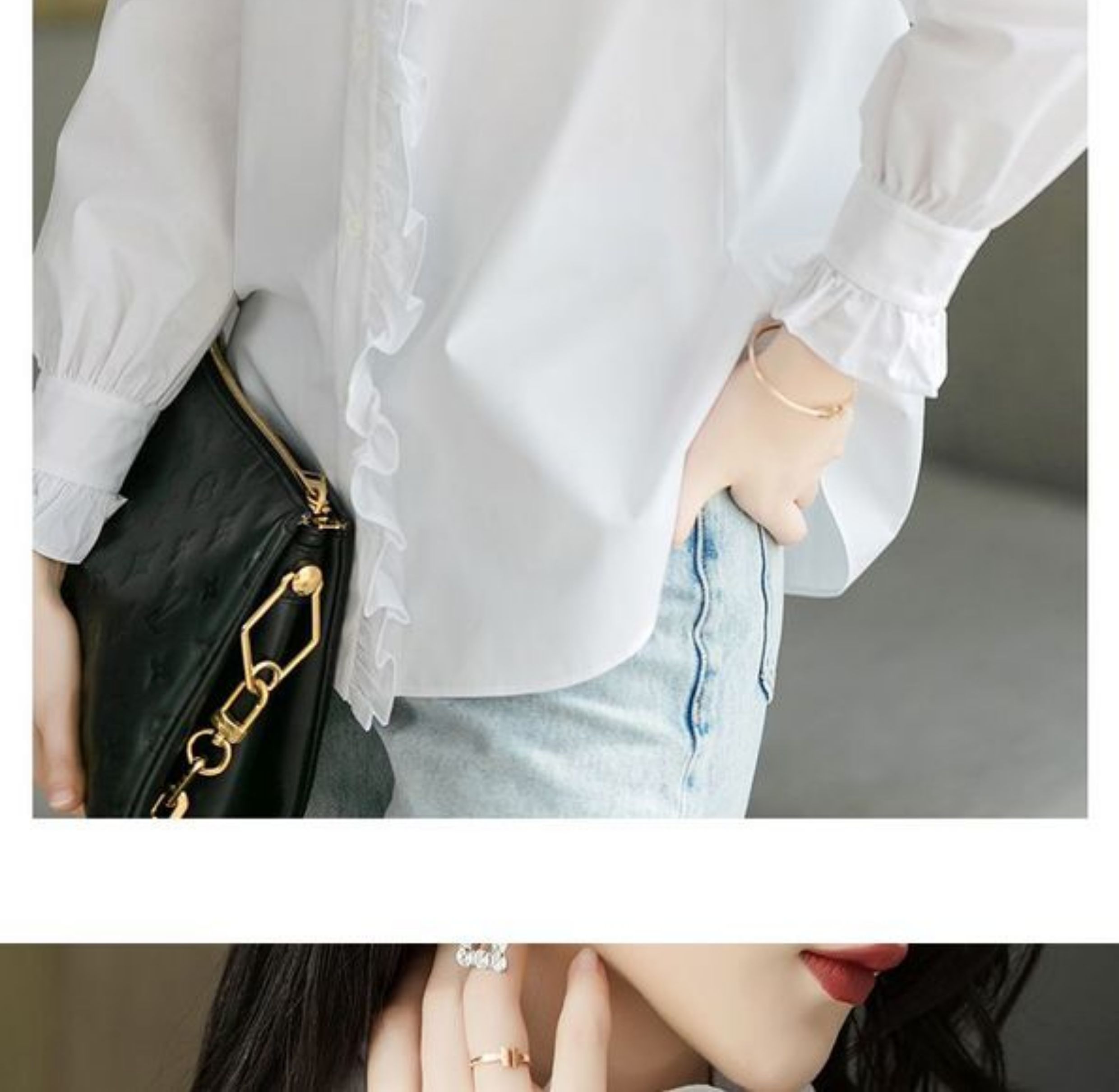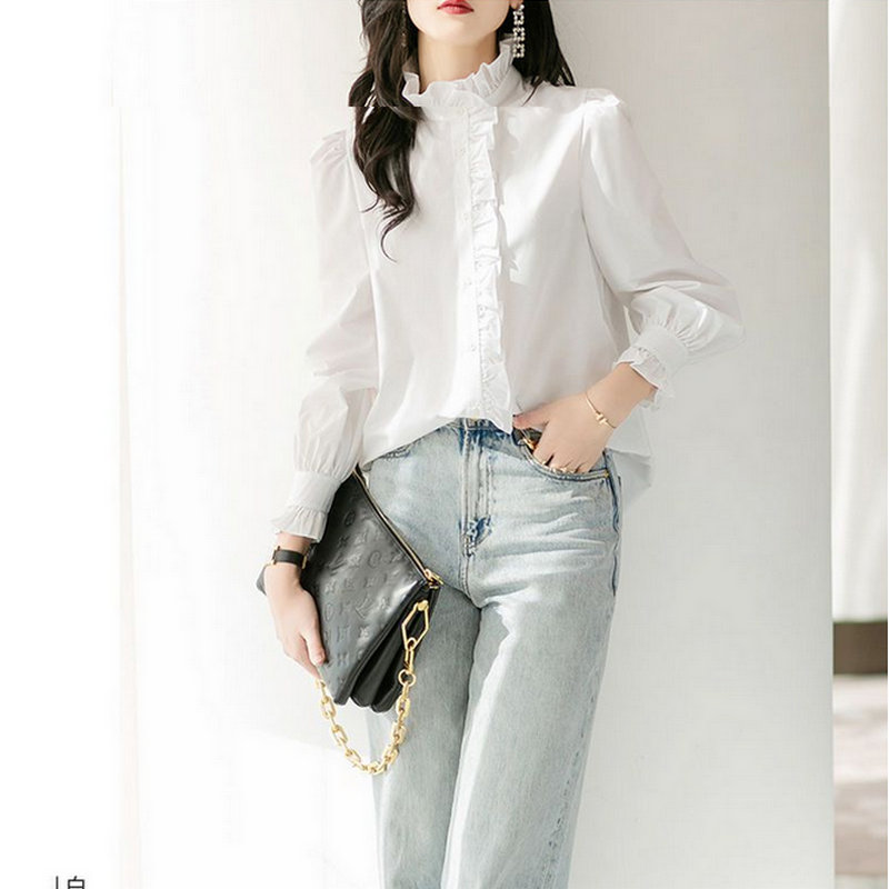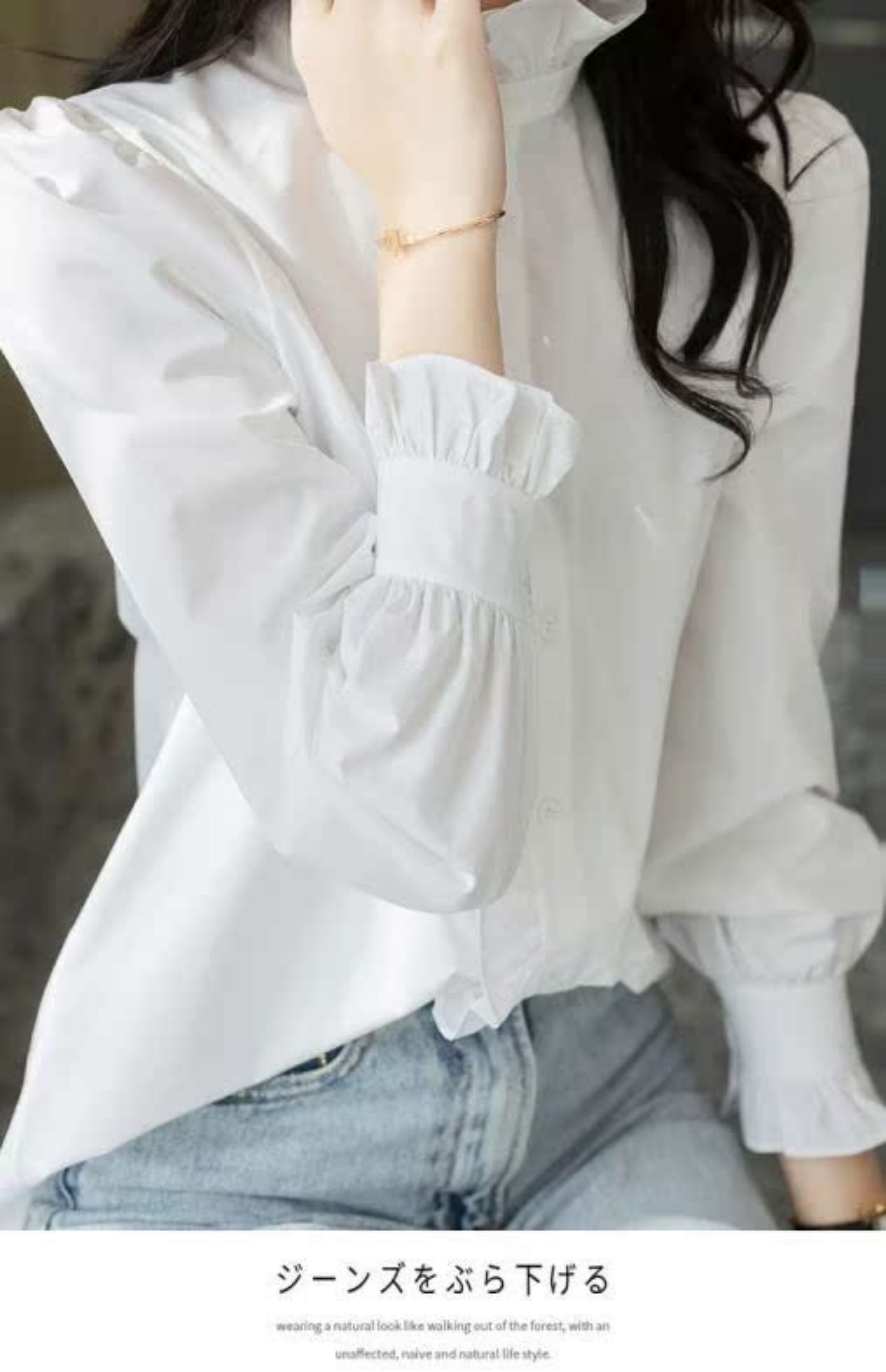2025 셔츠 여성의 봄 새로운 한국 스타일 칼라 코튼 아우터베이스 긴팔 탑 이어 테두리 셔츠