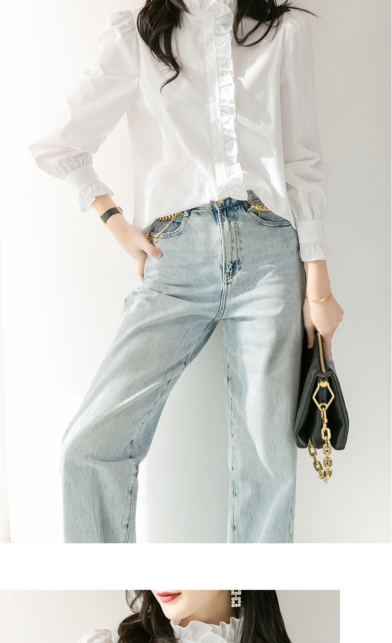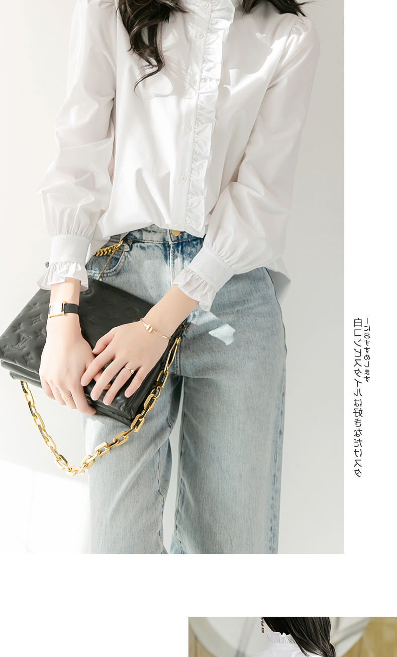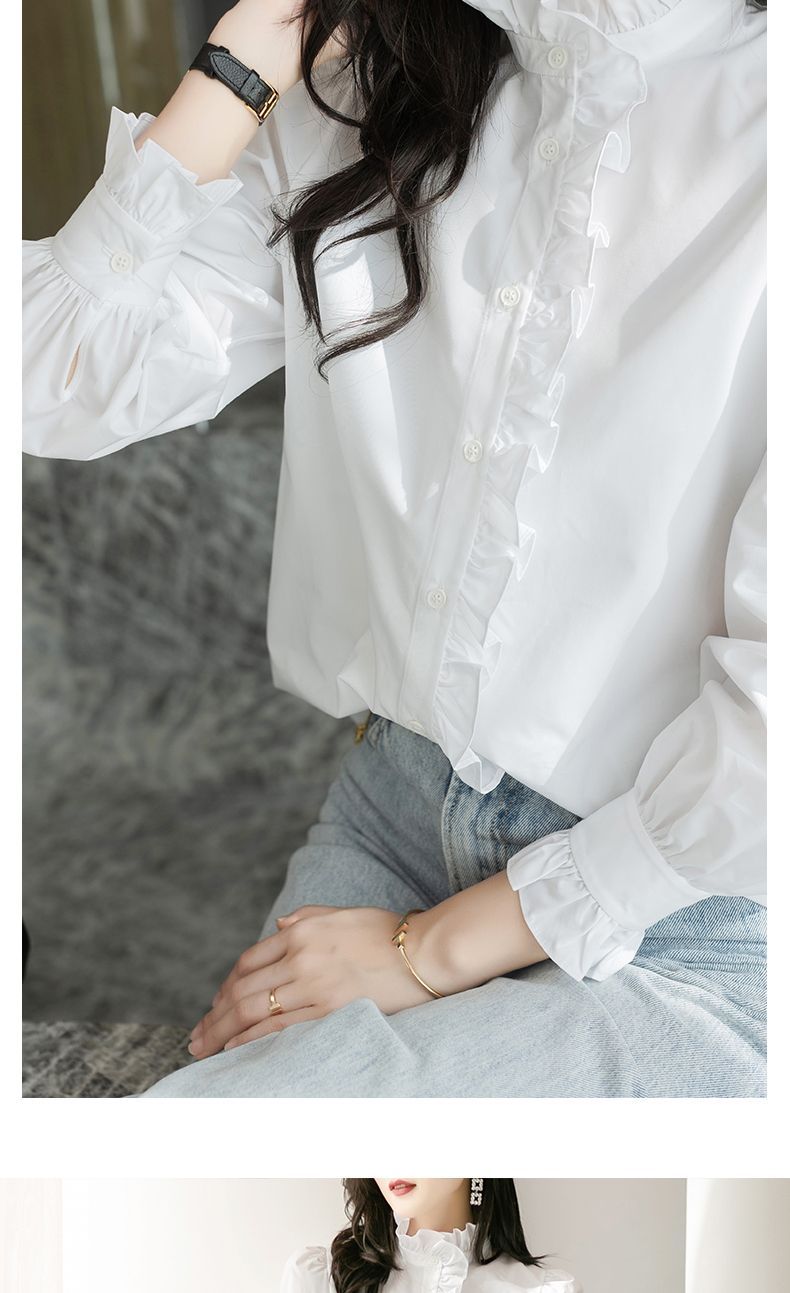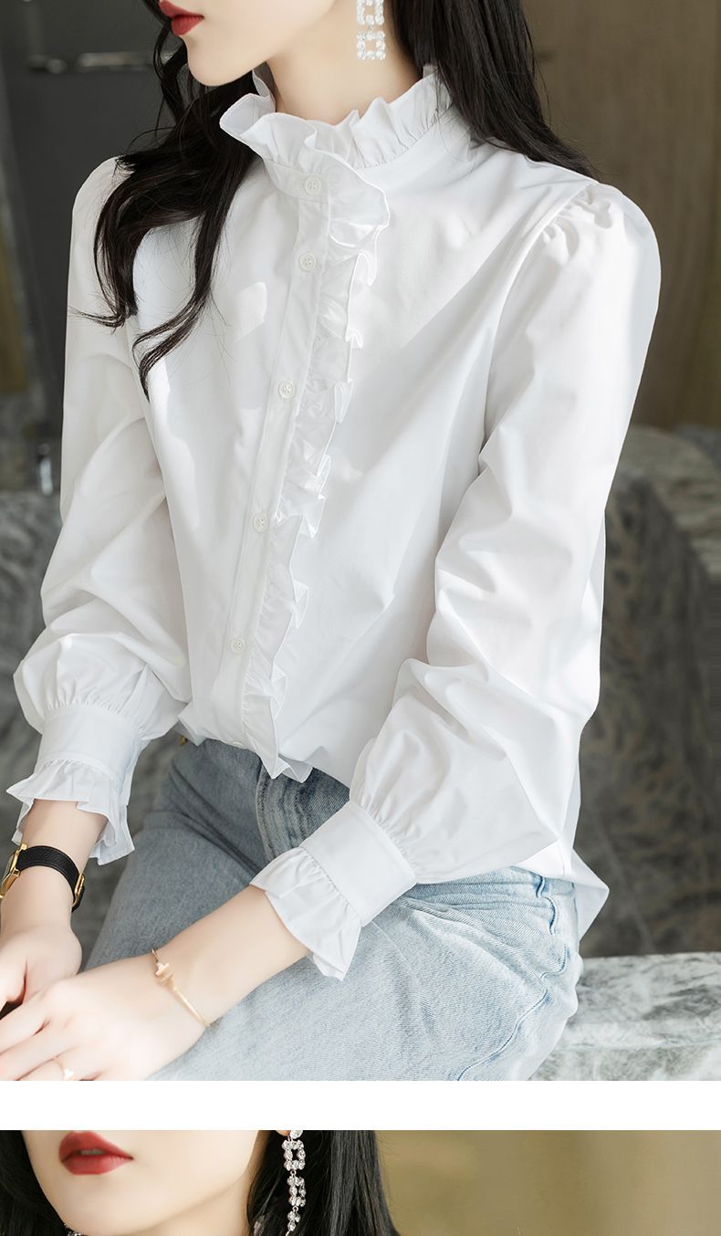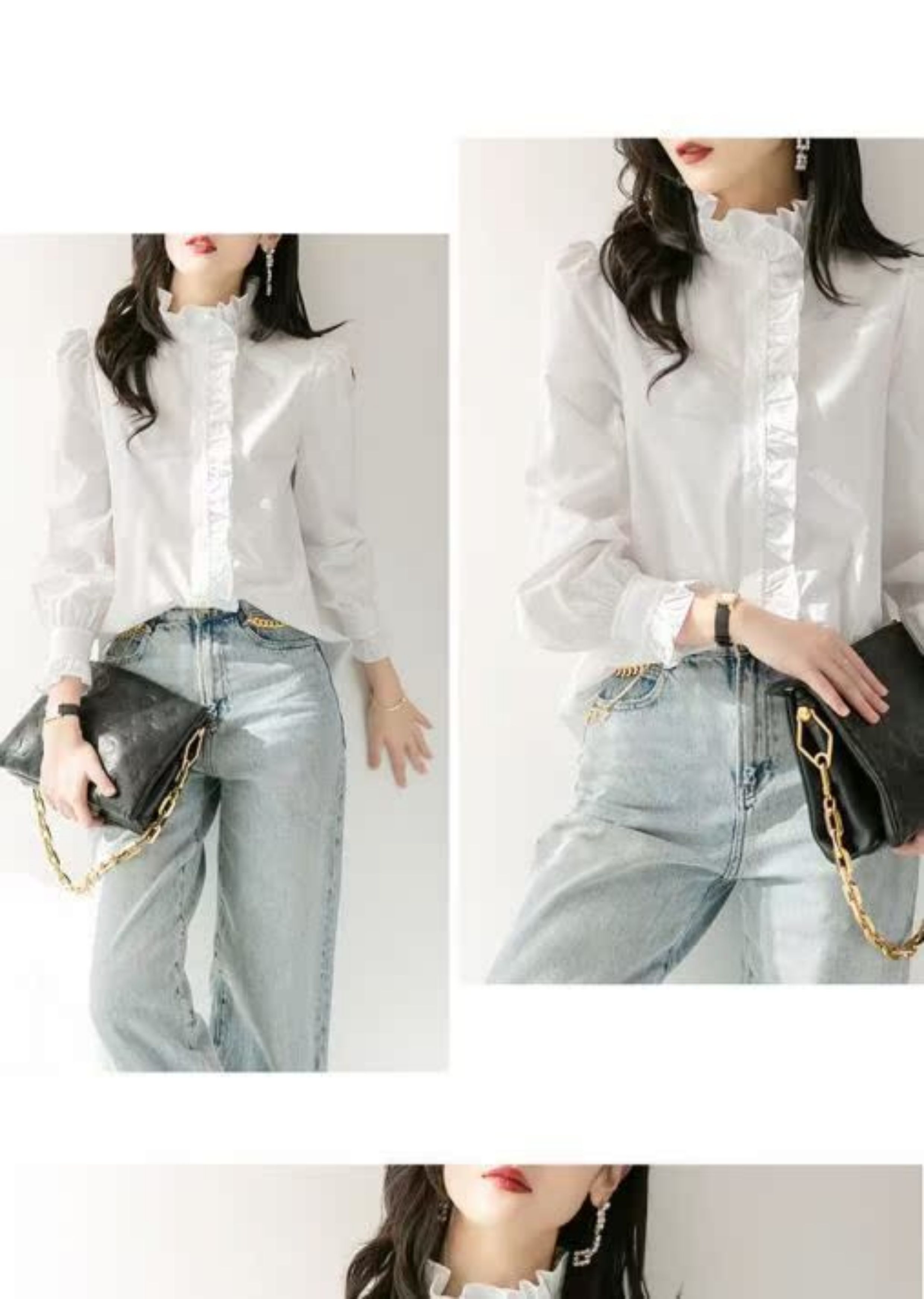 2025 셔츠 여성의 봄 새로운 한국 스타일 칼라 코튼 아우터베이스 긴팔 탑 이어 테두리 셔츠