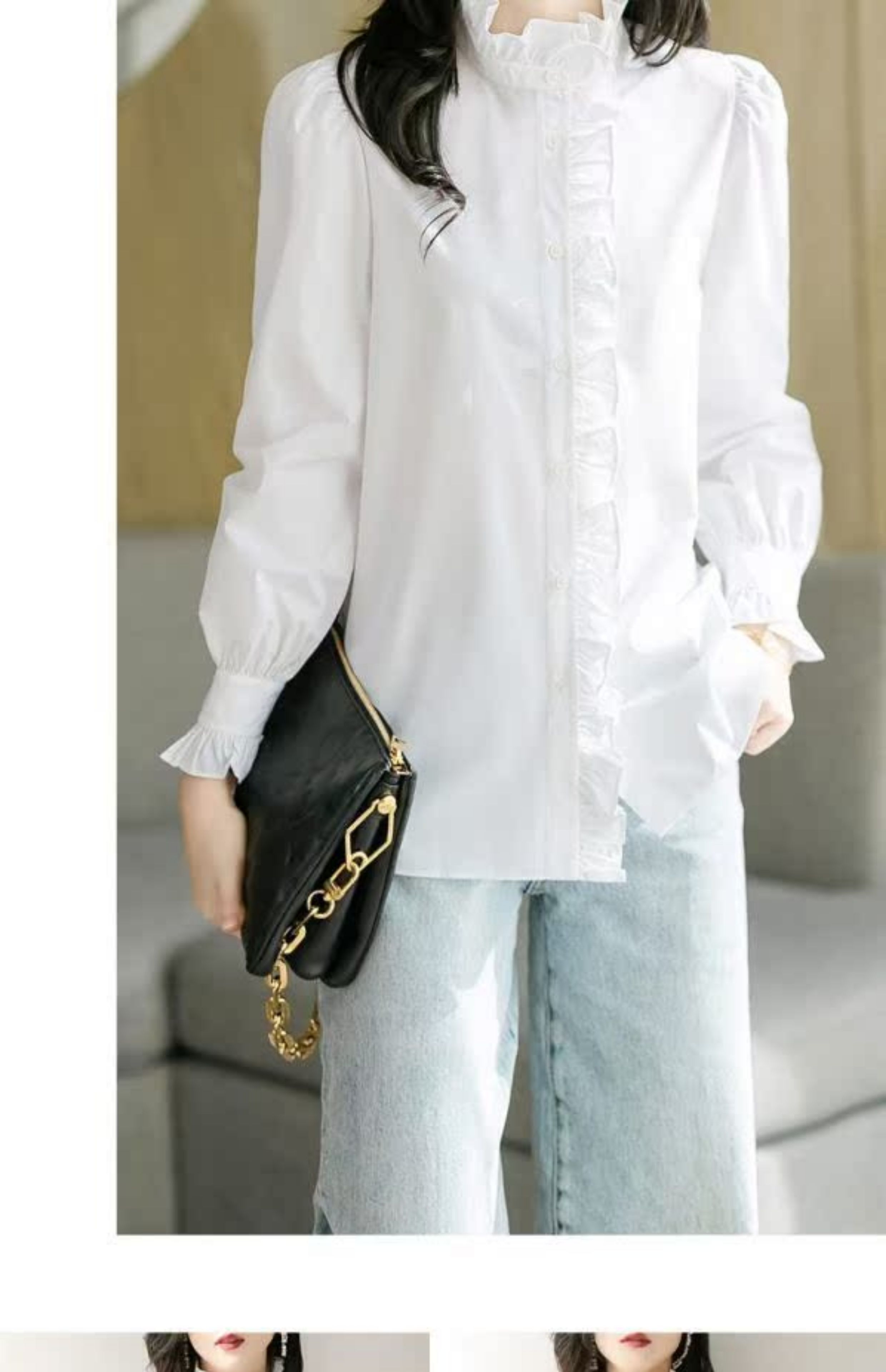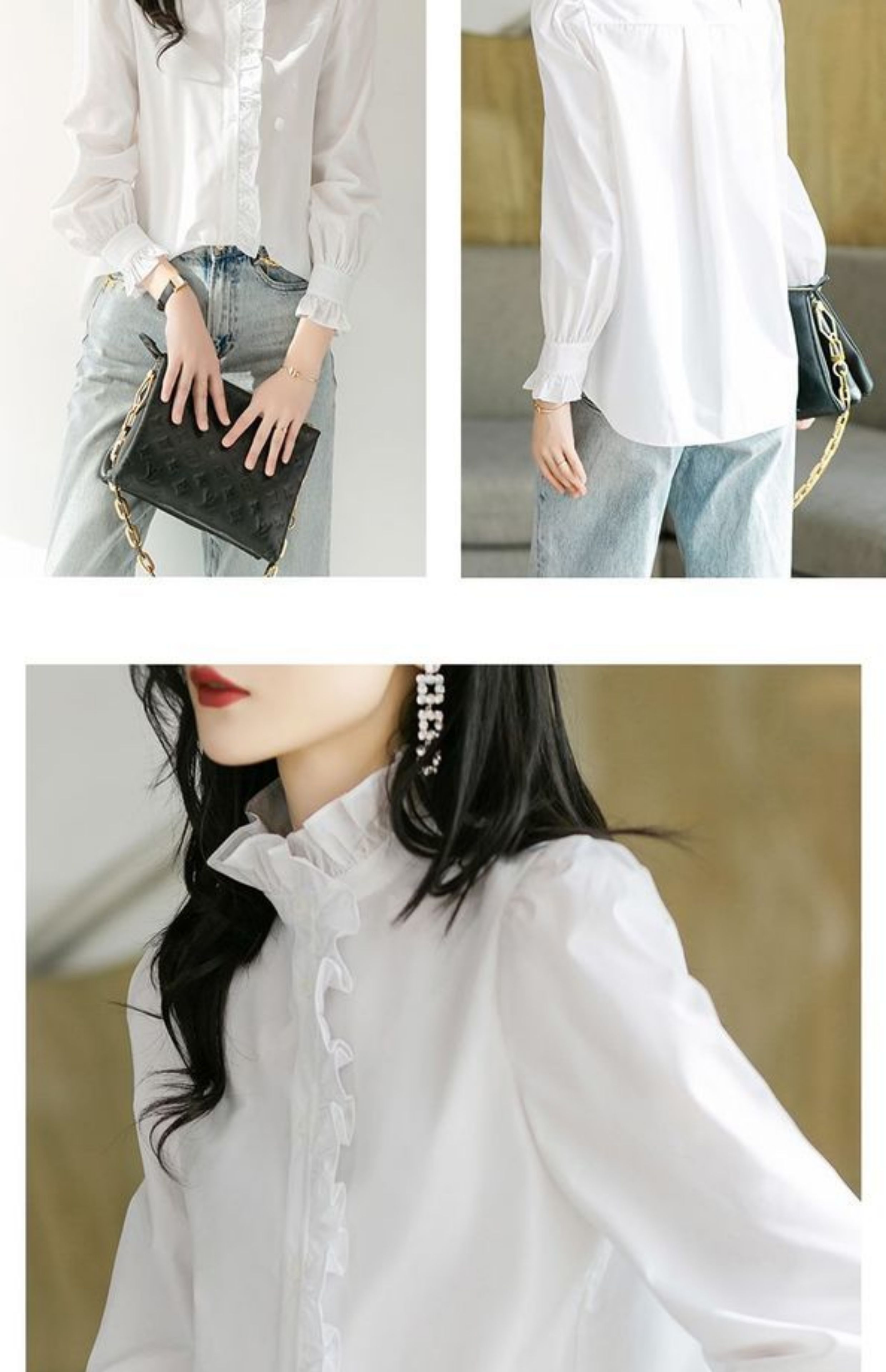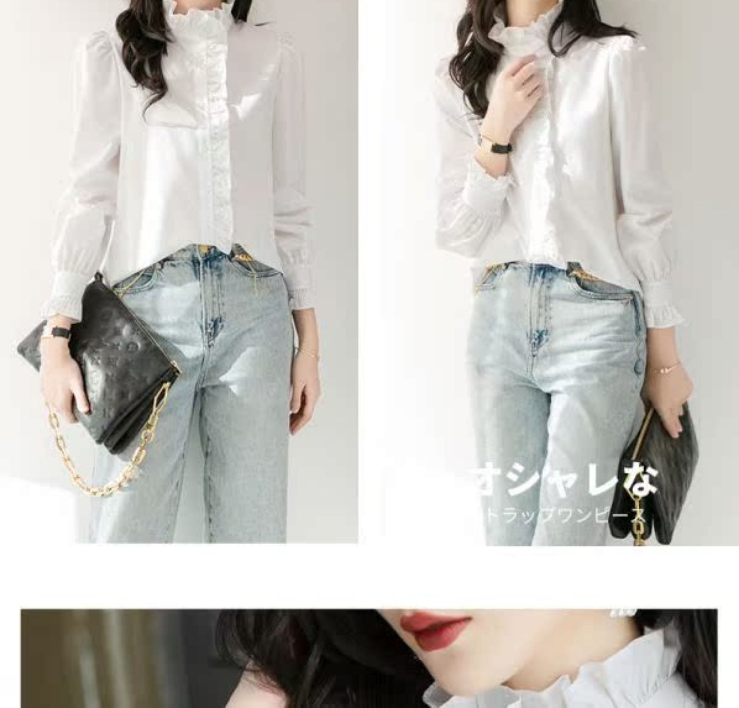 2025 셔츠 여성의 봄 새로운 한국 스타일 칼라 코튼 아우터베이스 긴팔 탑 이어 테두리 셔츠스토어 가기