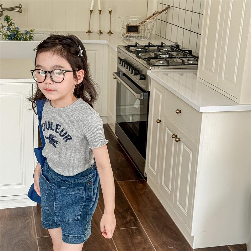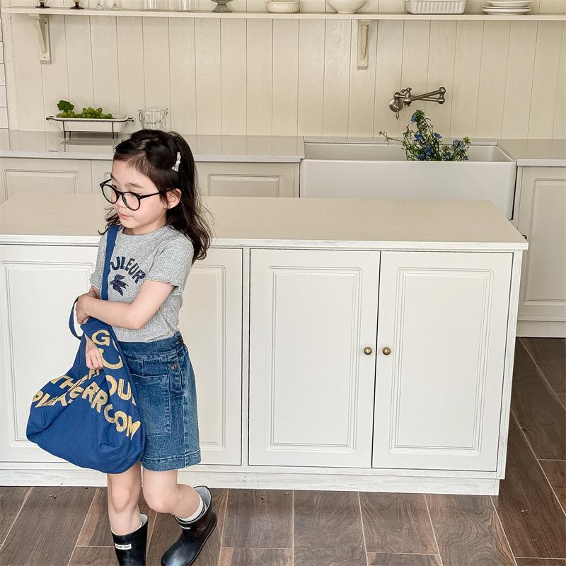 여자 여름 반팔 티셔츠 아기의 서양식 어린이 성격 유행 인터넷 유행 만화 편지 반팔스토어 가기