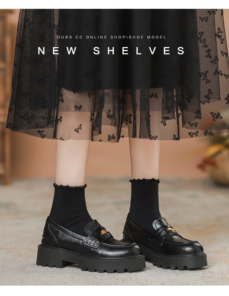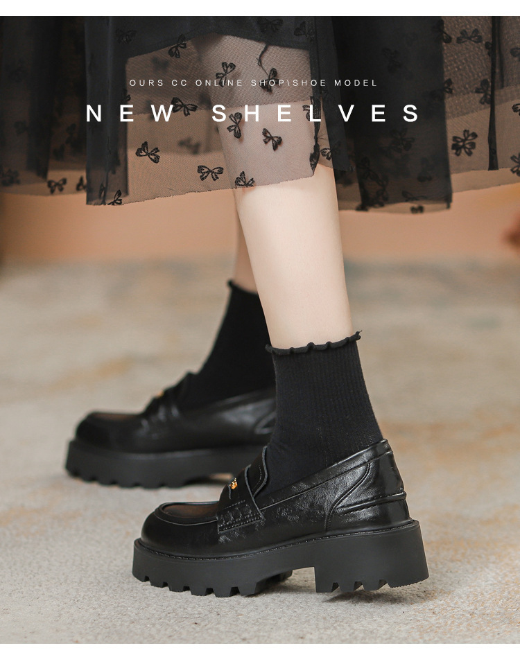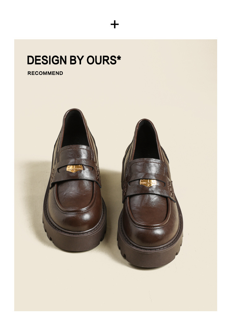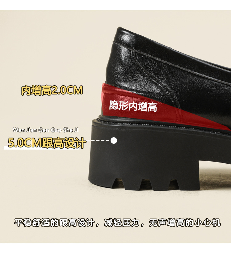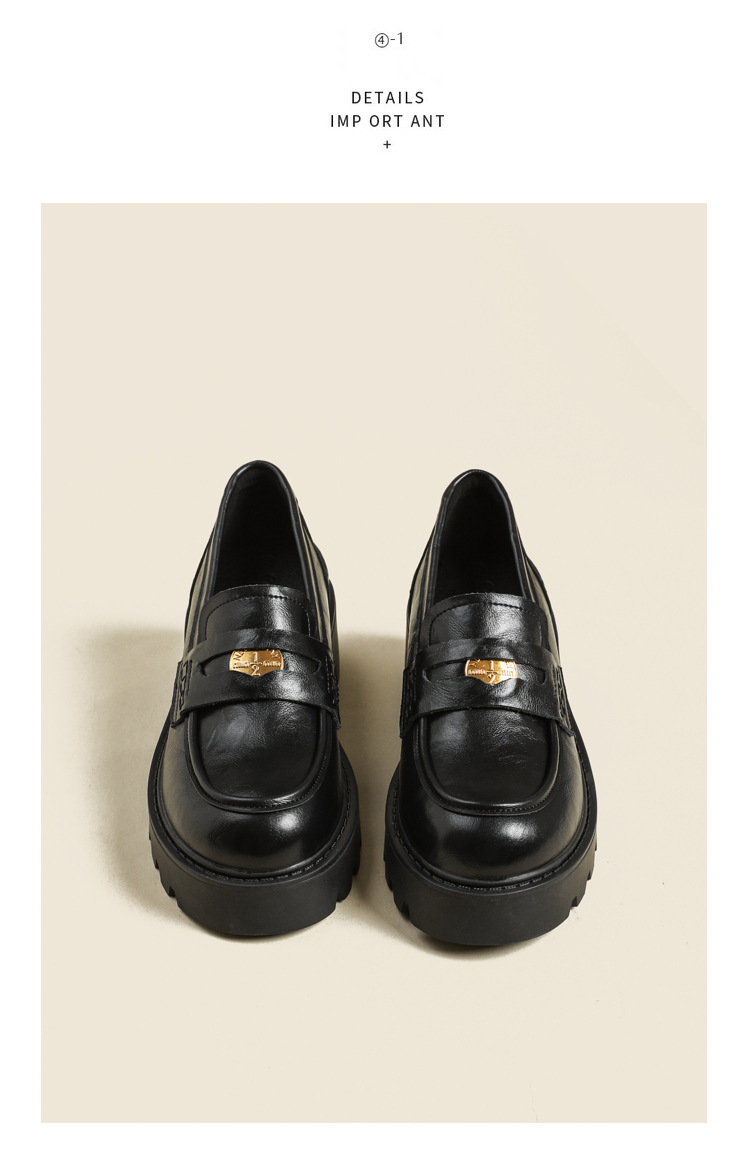 스몰 사이즈 신발 여성용 작은 금화 라운드 발가락 가죽 신발 여성용 두꺼운 밑창 싱글 레이어 신발 슬립 온 블랙 내부 높이 상승 로퍼 여성스토어 가기