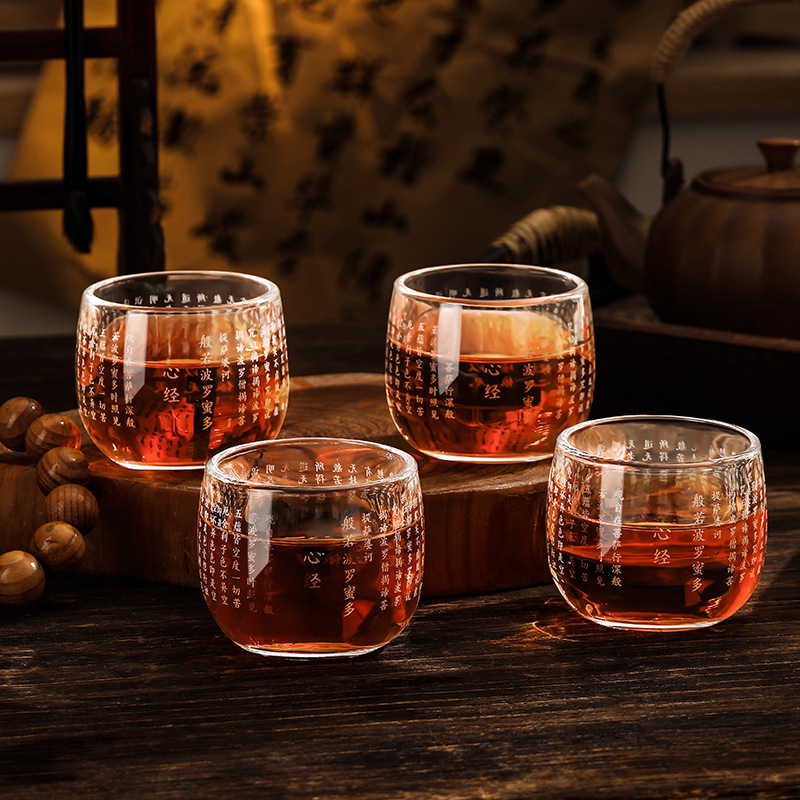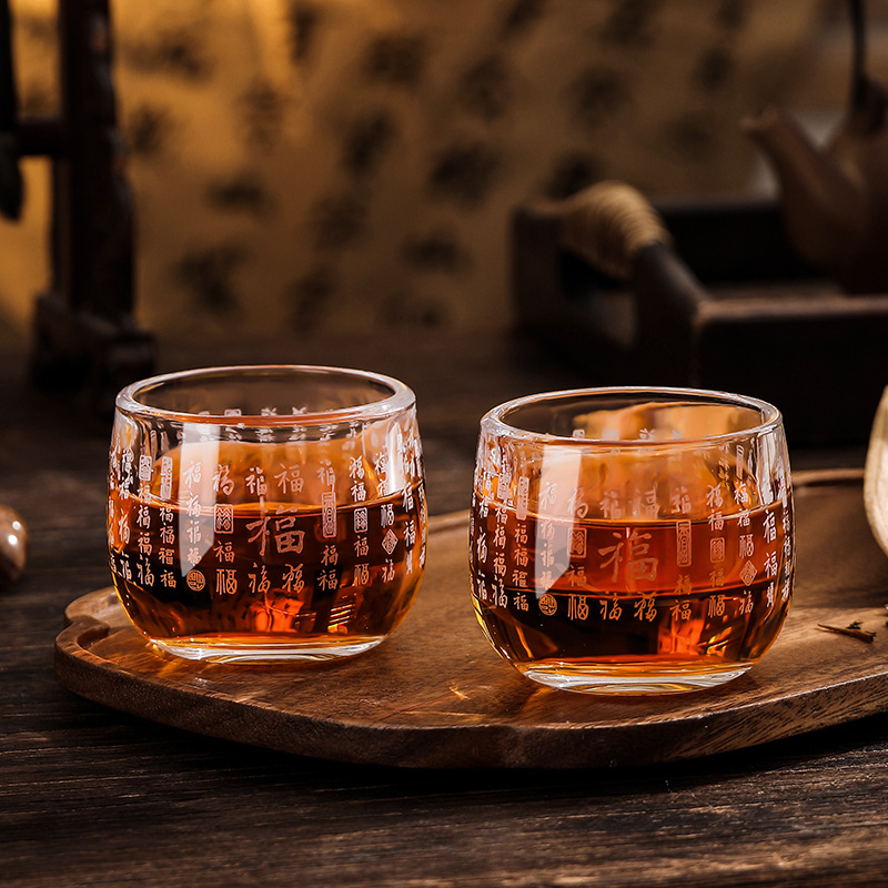 공장 직접 레이저 로고 투명 크리스탈 유리 와인 유리 가정용 차 세트 하트 sutra 바이푸 렌치 마스터 컵