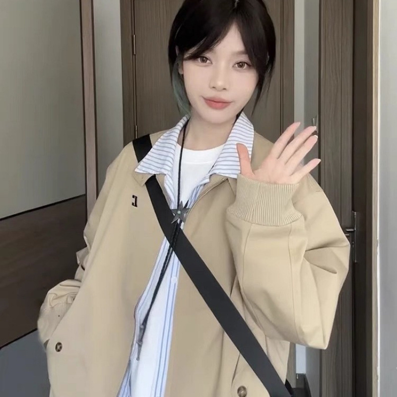 아메리칸 스타일 레트로 칼라 코트 여자 봄과 가을 2025 새로운 한국인 느슨한 올매치 커플의 작업 자켓
