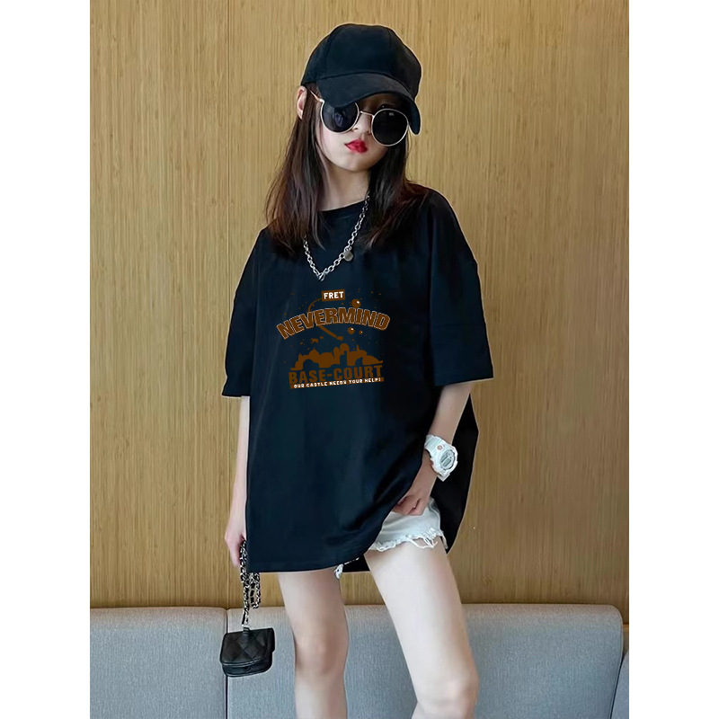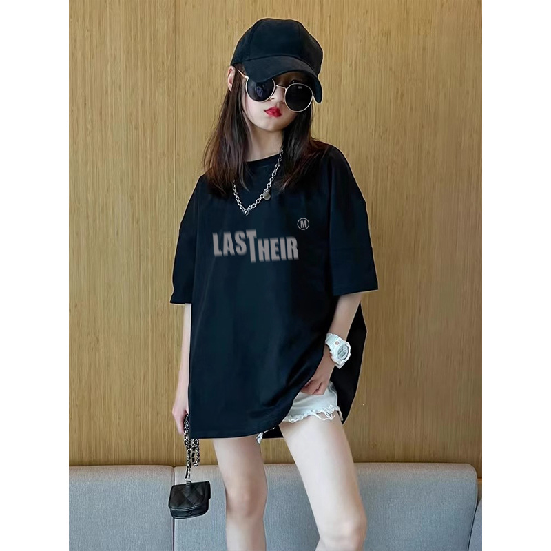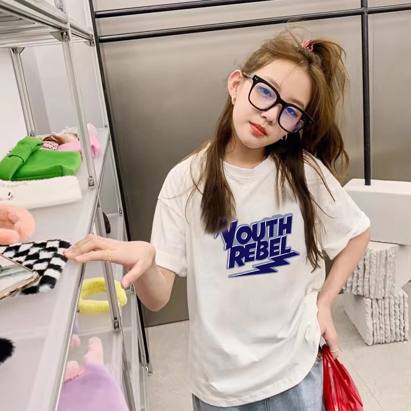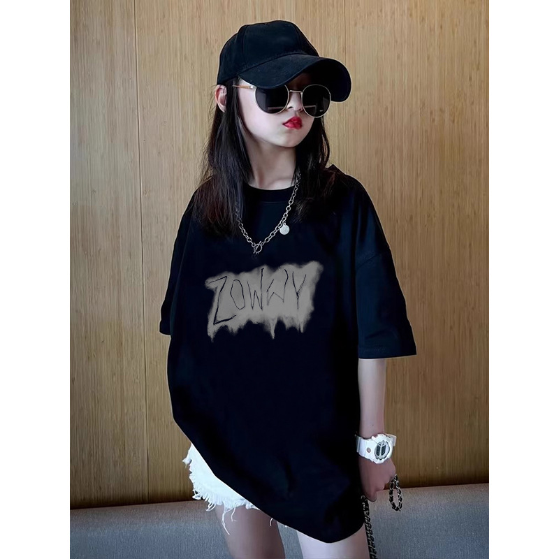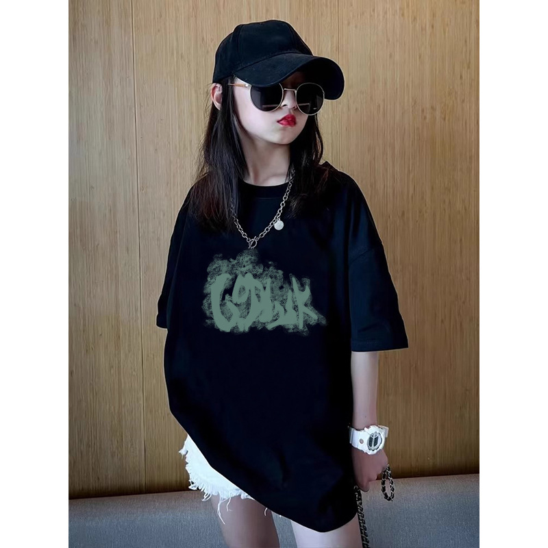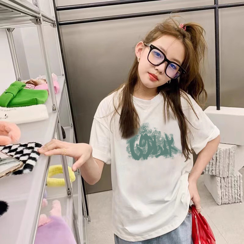 여름 어린이 서양식 편지 인쇄 반팔 순면 캐주얼 티셔츠 한국식 소녀 중형 및 대형 어린이 패션 탑스토어 가기