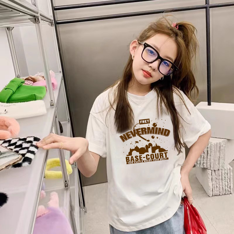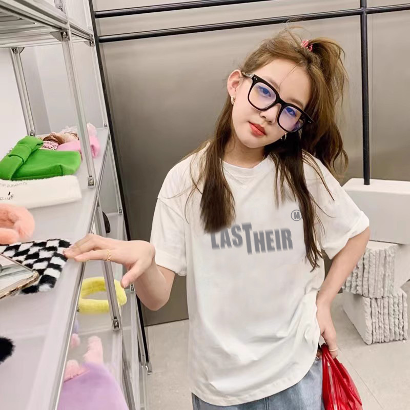 여름 어린이 서양식 편지 인쇄 반팔 순면 캐주얼 티셔츠 한국식 소녀 중형 및 대형 어린이 패션 탑