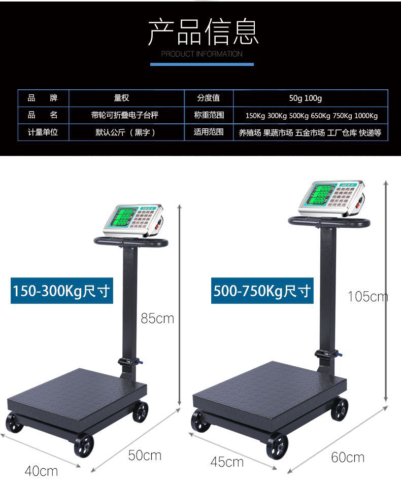바퀴와 접기 500kg 전자 플랫폼 가늠자 300kg 화물 무게 전자 규모 100kg 상업적인 다른 사람스토어 가기